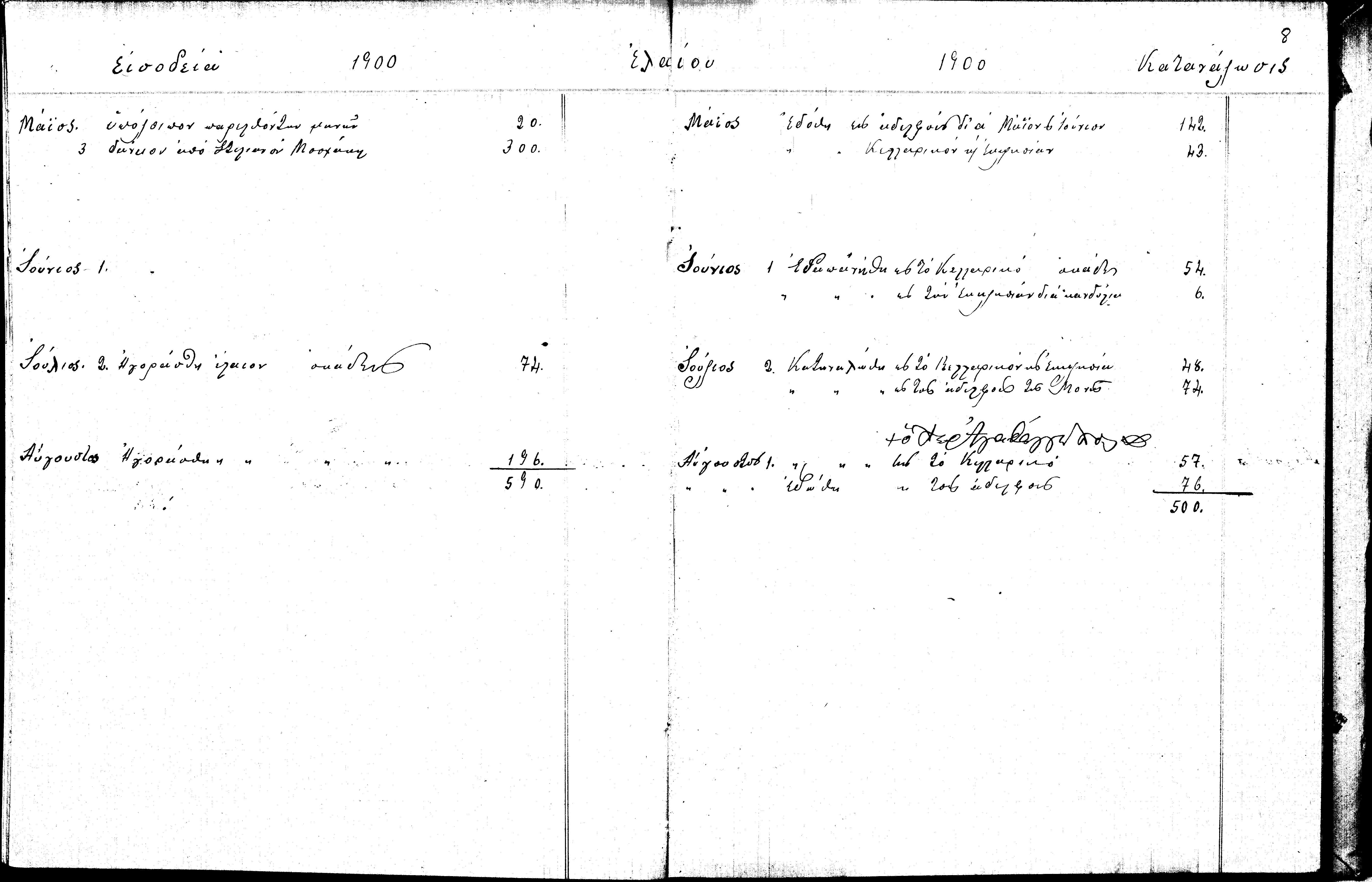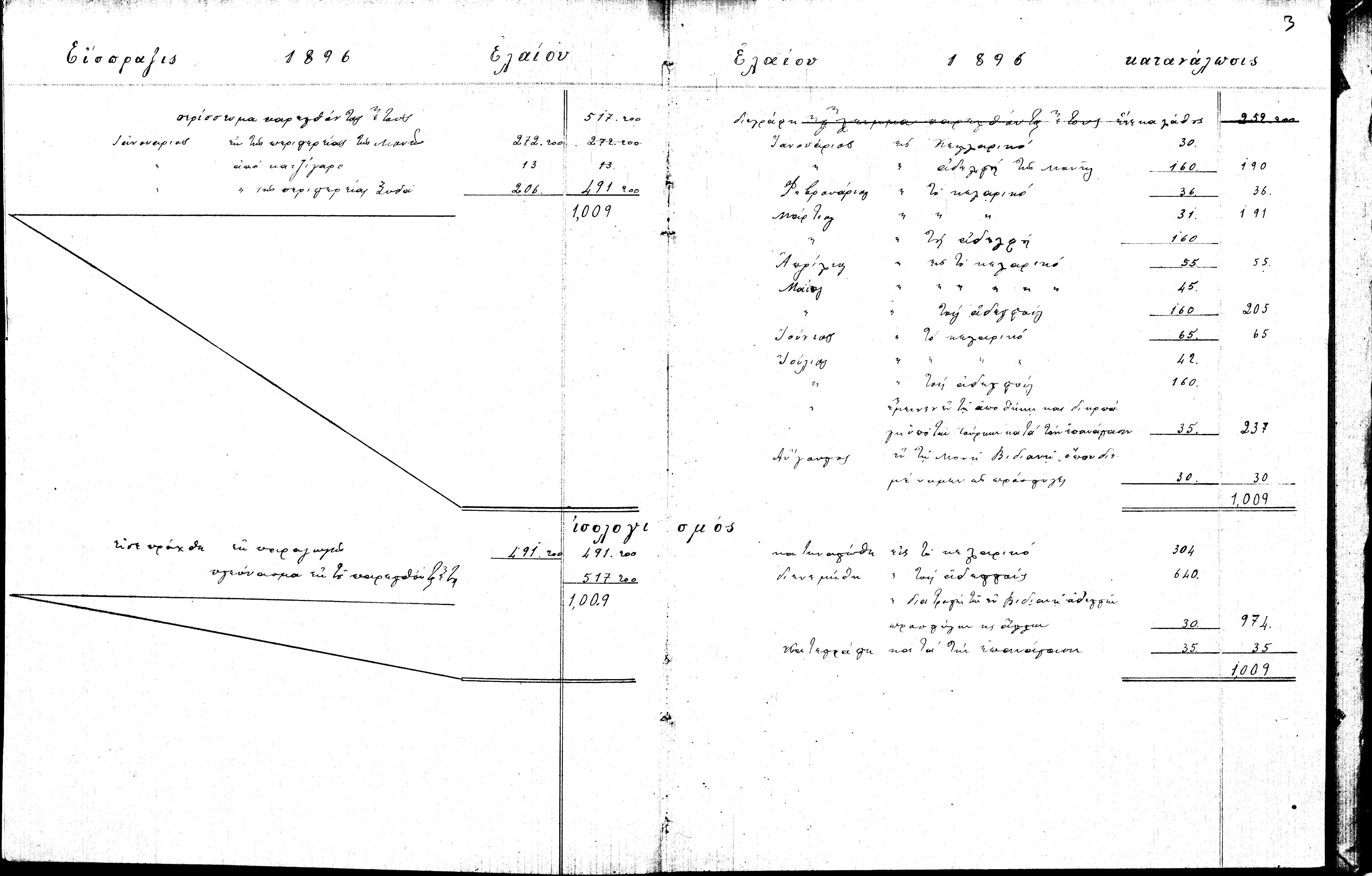 Απόσπασμα Βιβλίου Καταγραφής εισροών και εκκροών ελαίου. χωρίς τίτλο. Πιθανότατα αναφέρεται στην παραγωγή και διακίνηση ελαίου ανά μονή ή μόνο για μία Μονή, και δη της Μονής Βιδιανής, Λασιθίου. Με διακριτές ενότητες, για την Παραγωγή και την Κατανάλωση. Η καταγραφή αφορα στα έτη 1896, 1897, 1898 και 1900. Σημαντικές είναι οι καταγραφές για τις παροχές ελαιολάδου προς κάλυψη αναγκών που δημιούργησε η Επανάσταση και τις διαρπαγές από Τούρκους.