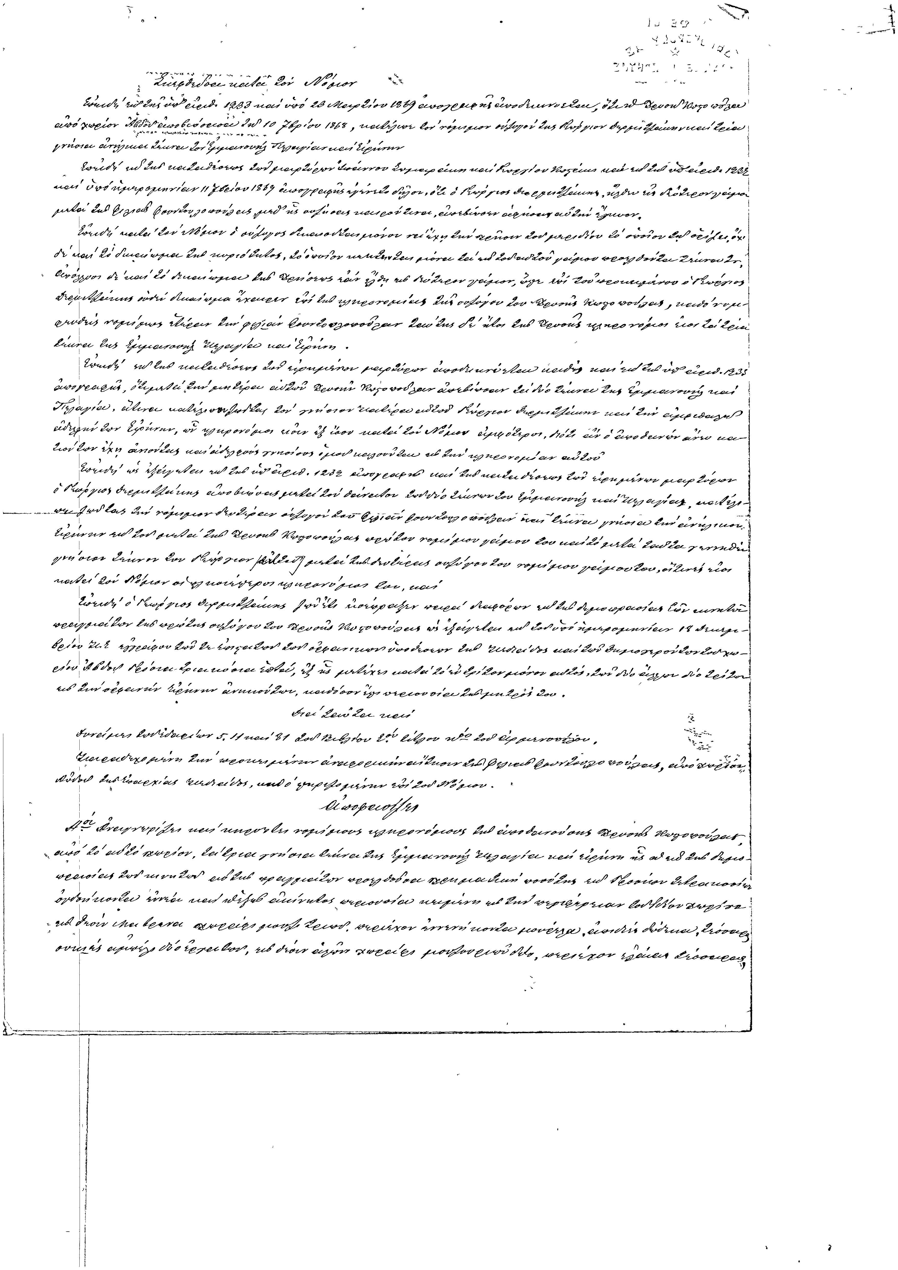 Απόφαση της Δημογεροντίας Ηρακλείου προς την Διεύθυνση της Ορφανικής Τραπέζης, για την αναγνώριση των κληρονόμων και την διανομή της περιουσίας του αποθανόντος Γεωργίου Δερμιτζάκη. Συναποτελείται από τα α.α. 5 και α.α. 6.