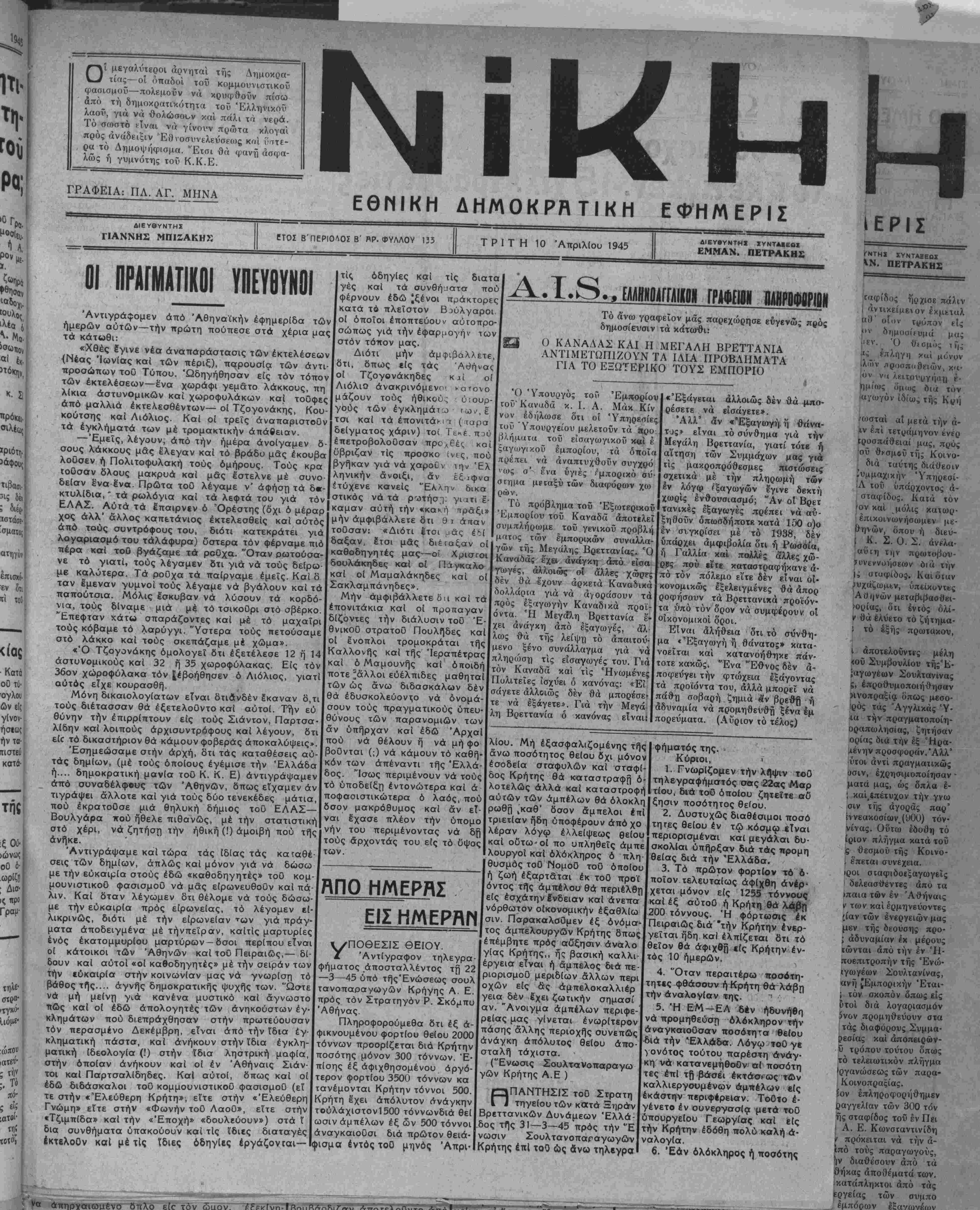 νός ύπουργός Τύπου καί ό πλοίαρχος Γ. Λαμπρινό·