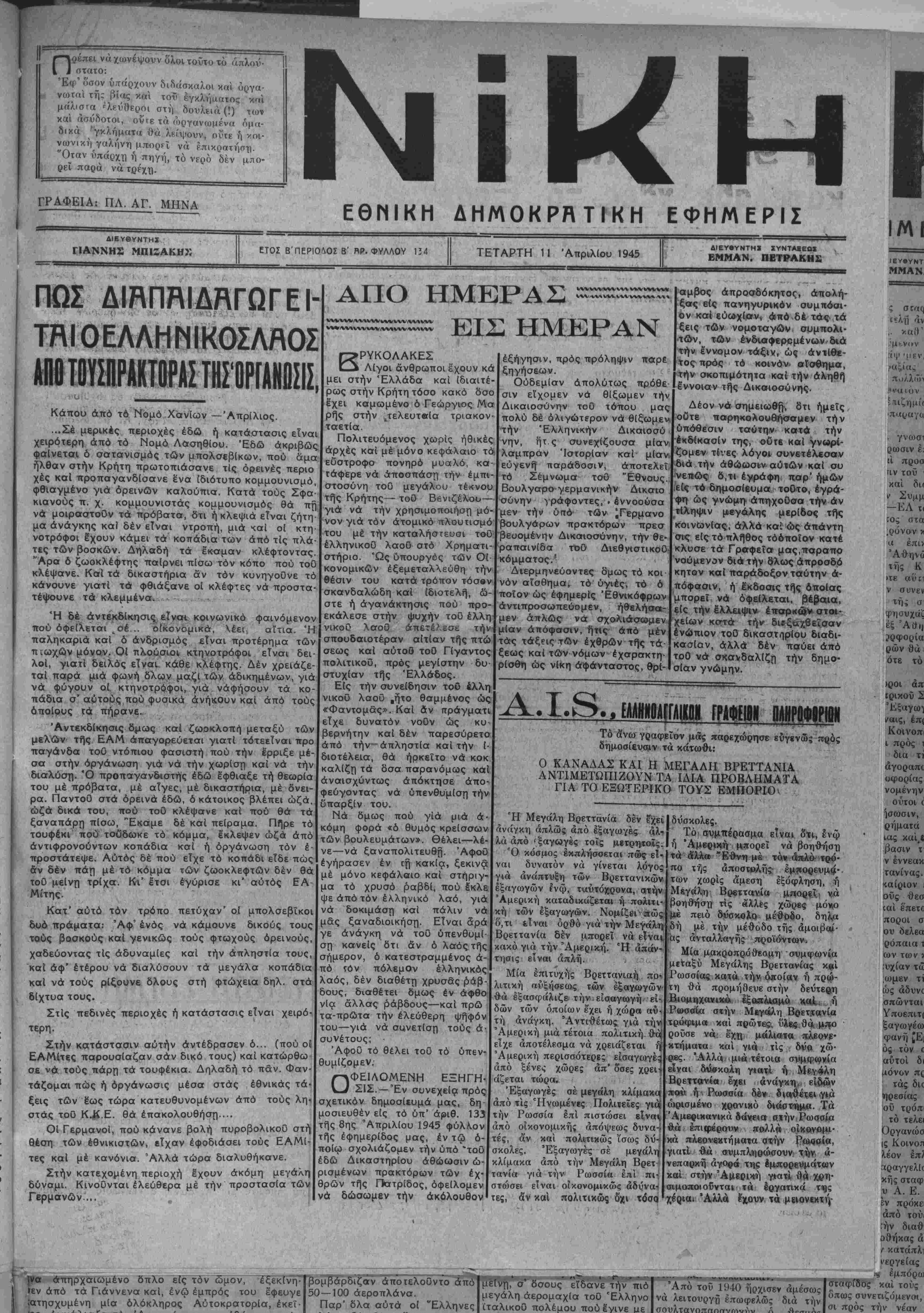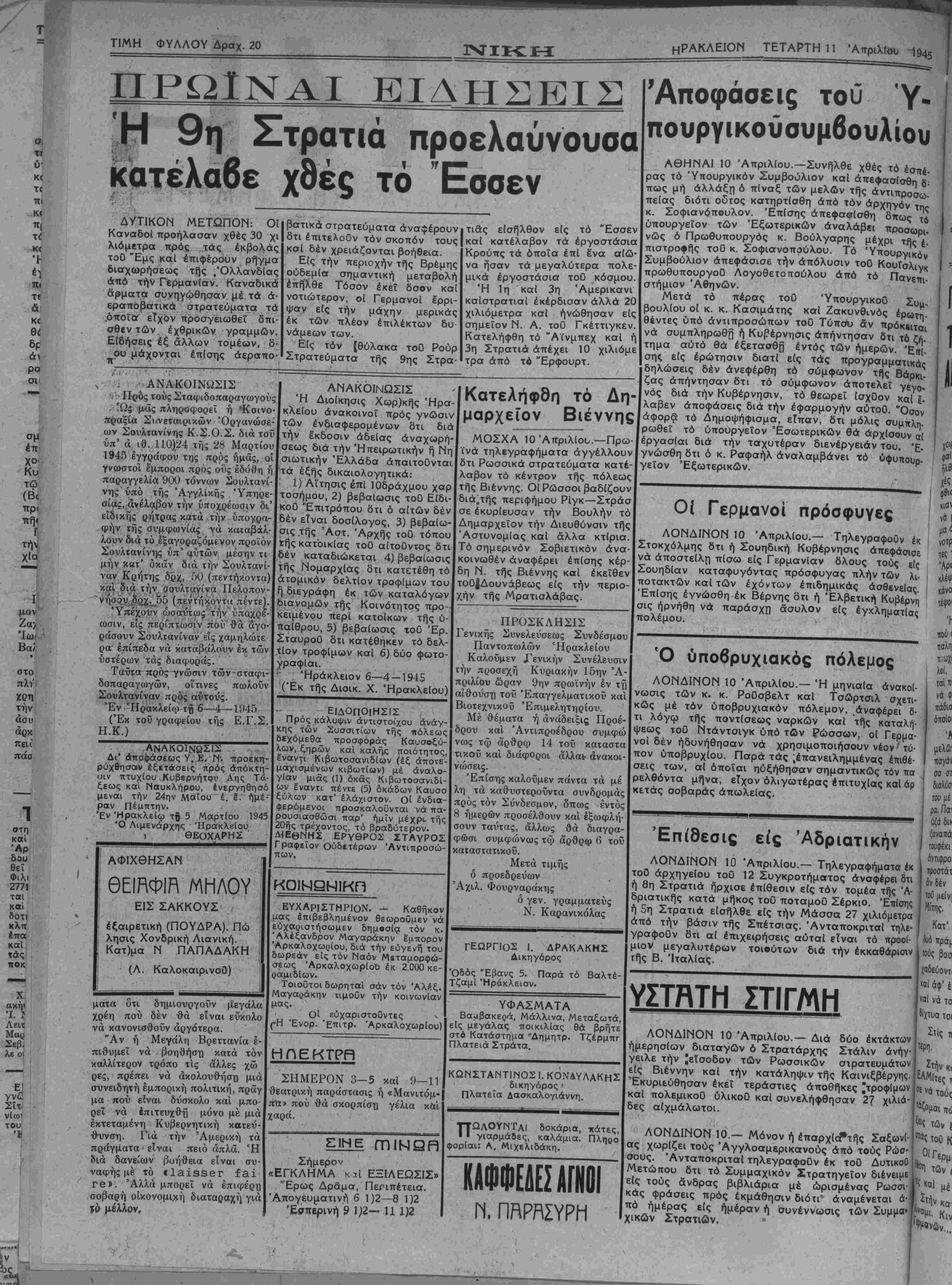 ΤΕΤΑΡΤΗ 11 Απριλίου 1945
