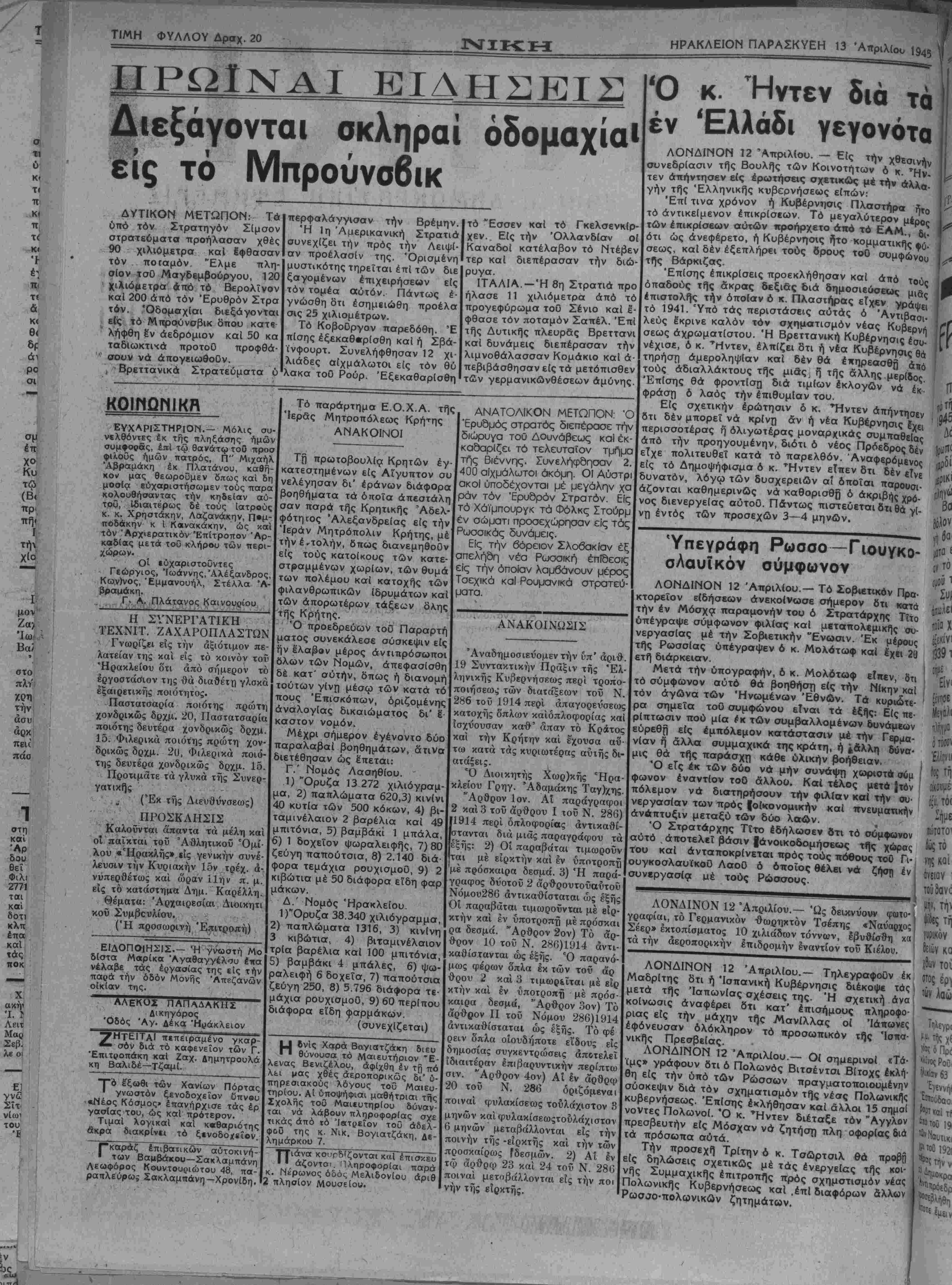 ΗΡΑΚΛΕΙΟΝ ΠΑΡΑΣΚΥΕΗ 13 Απριλίου 1945