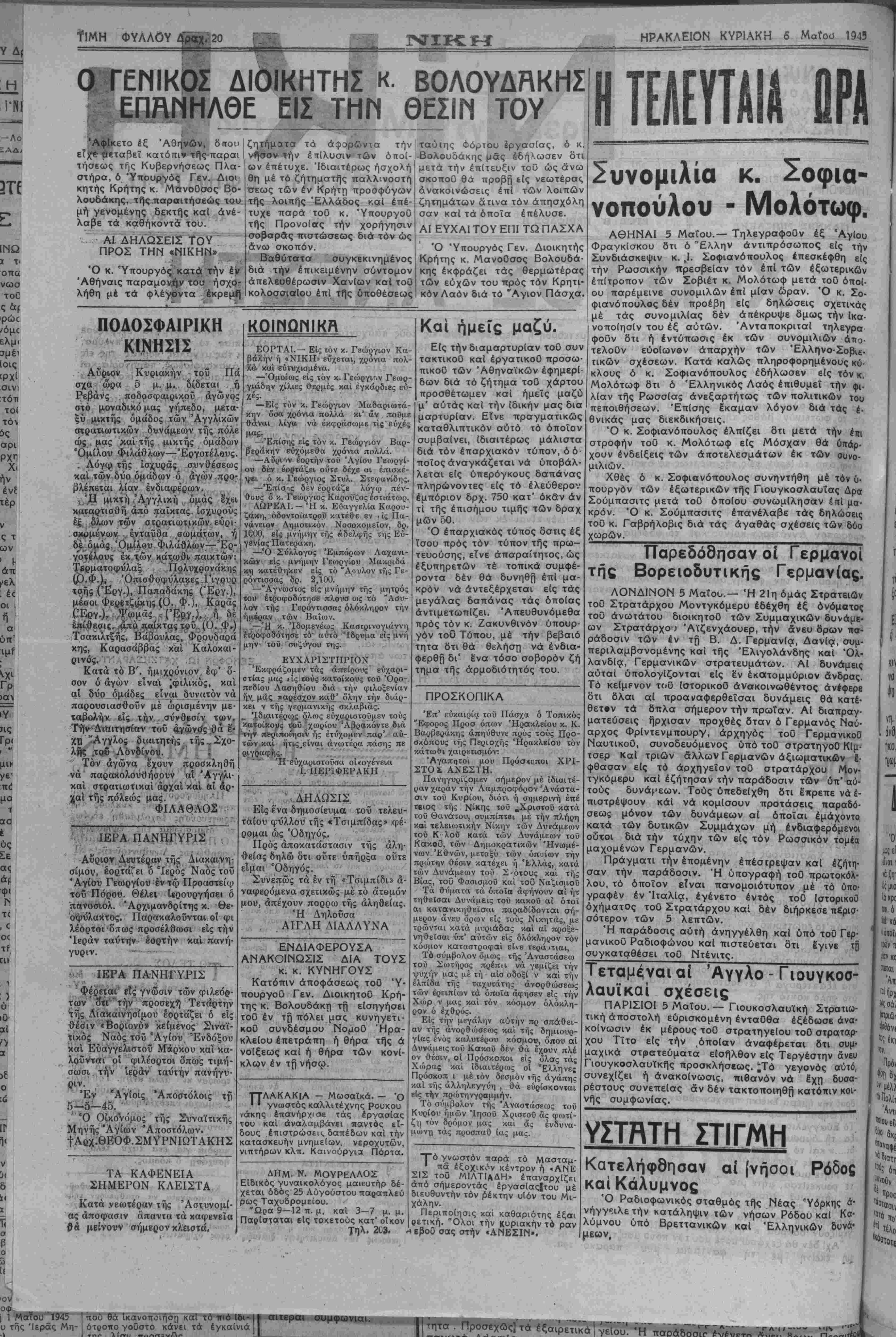 ΚΥΡΙΑΚΗ 6 Μαΐου 1945