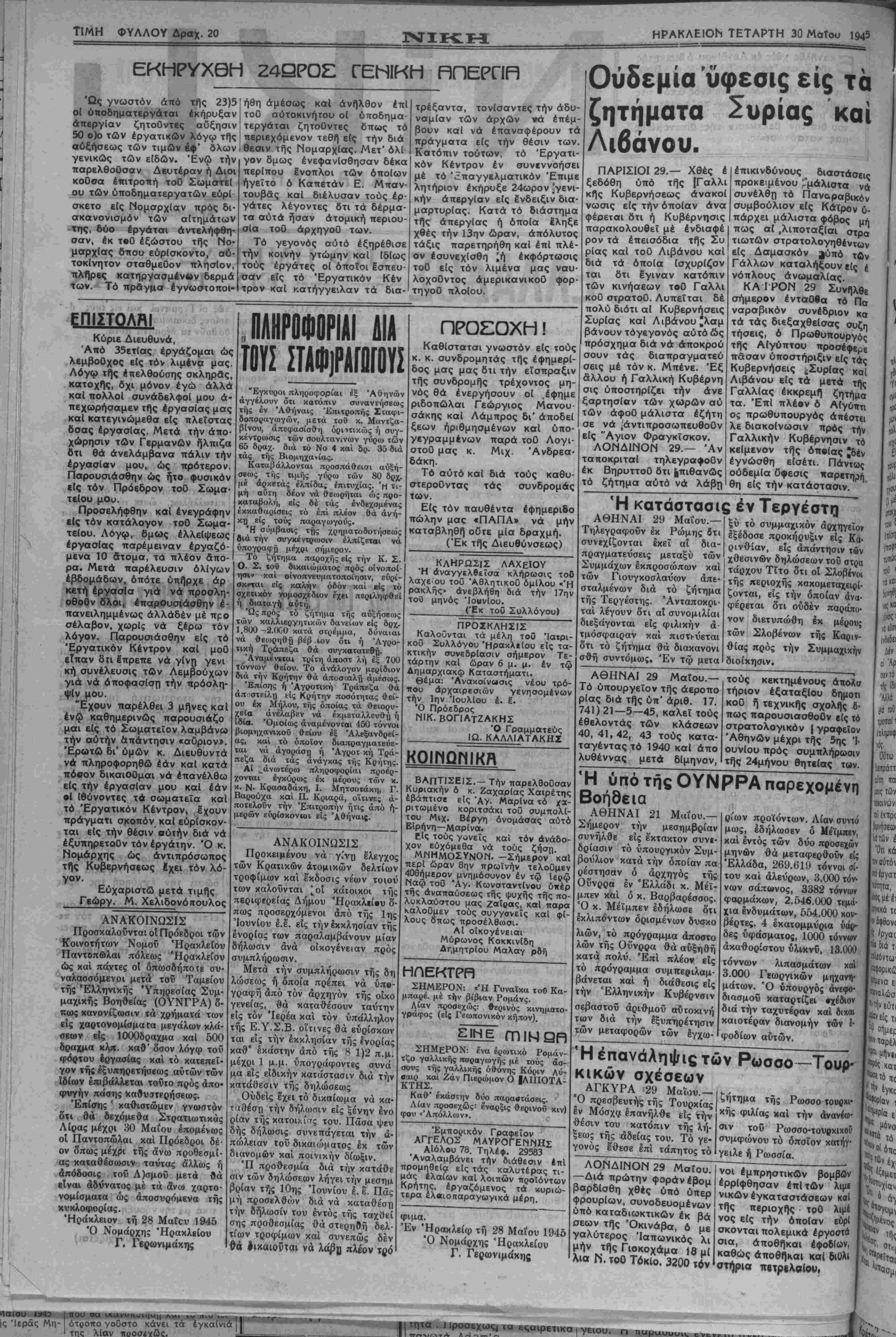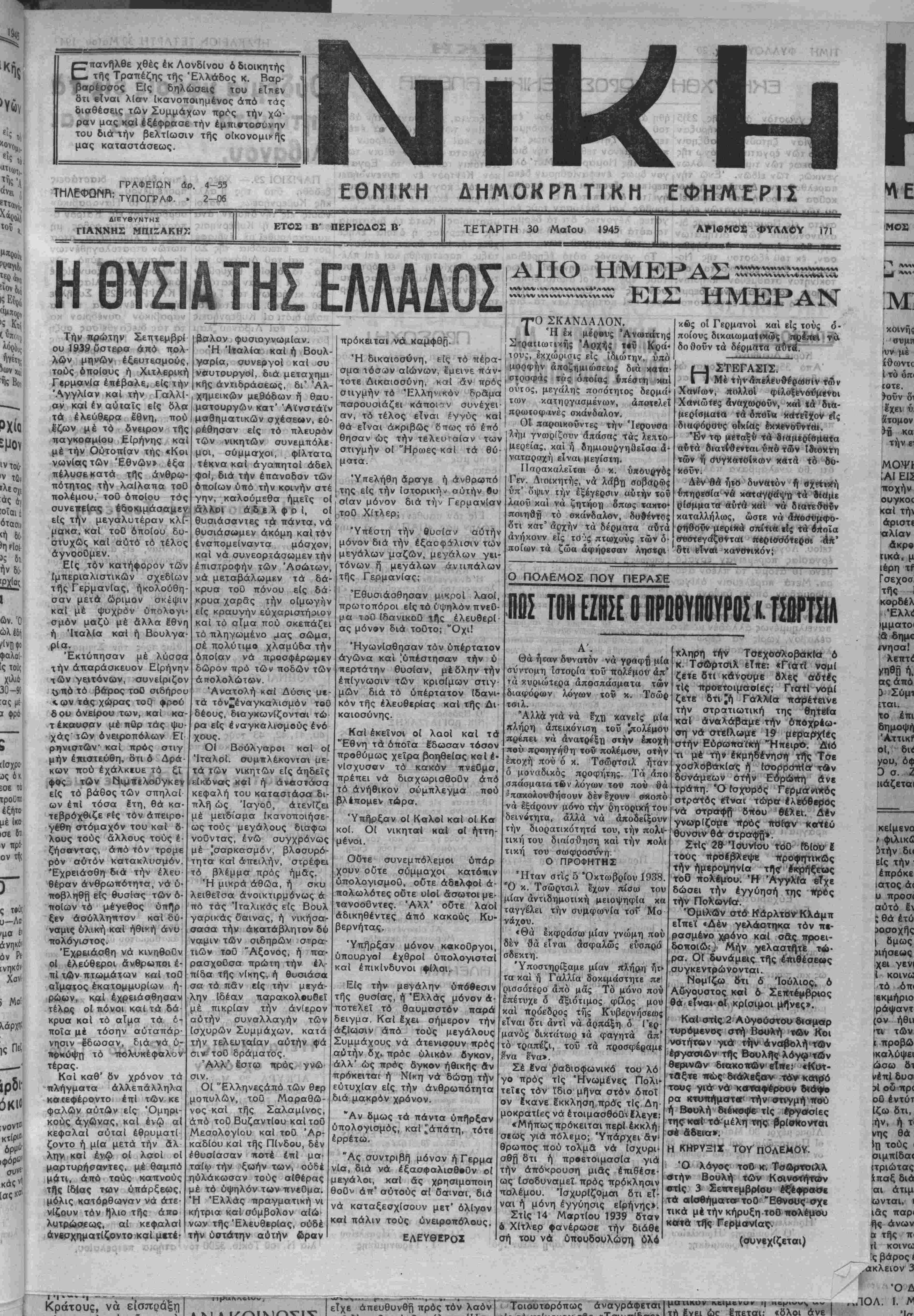 ΤΕΤΑΡΤΗ 30 Μαΐου 1945