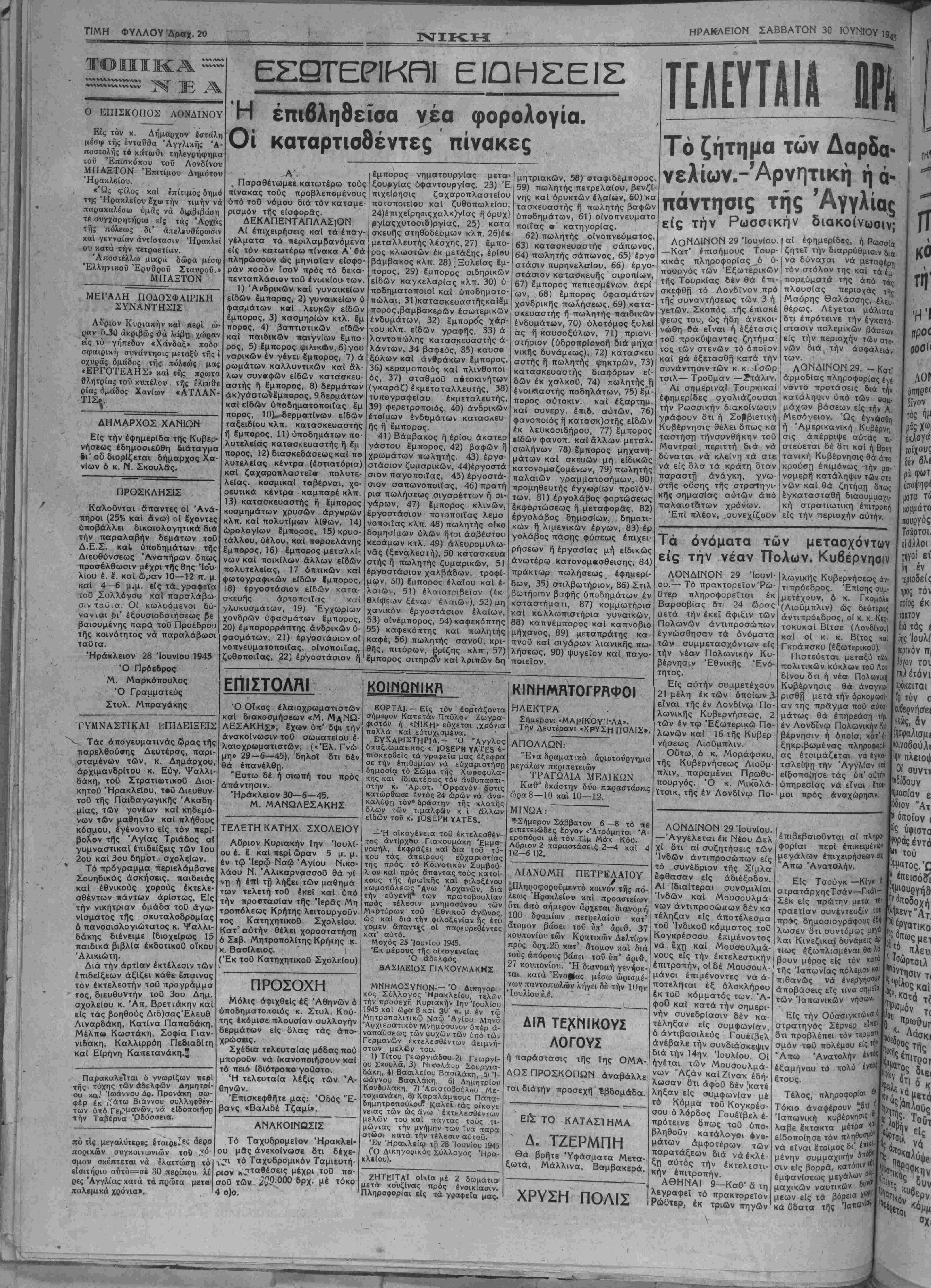 ΣΑΒΒΑΤΟΝ 30 ΙΟΥΝΙΟΥ 1945
