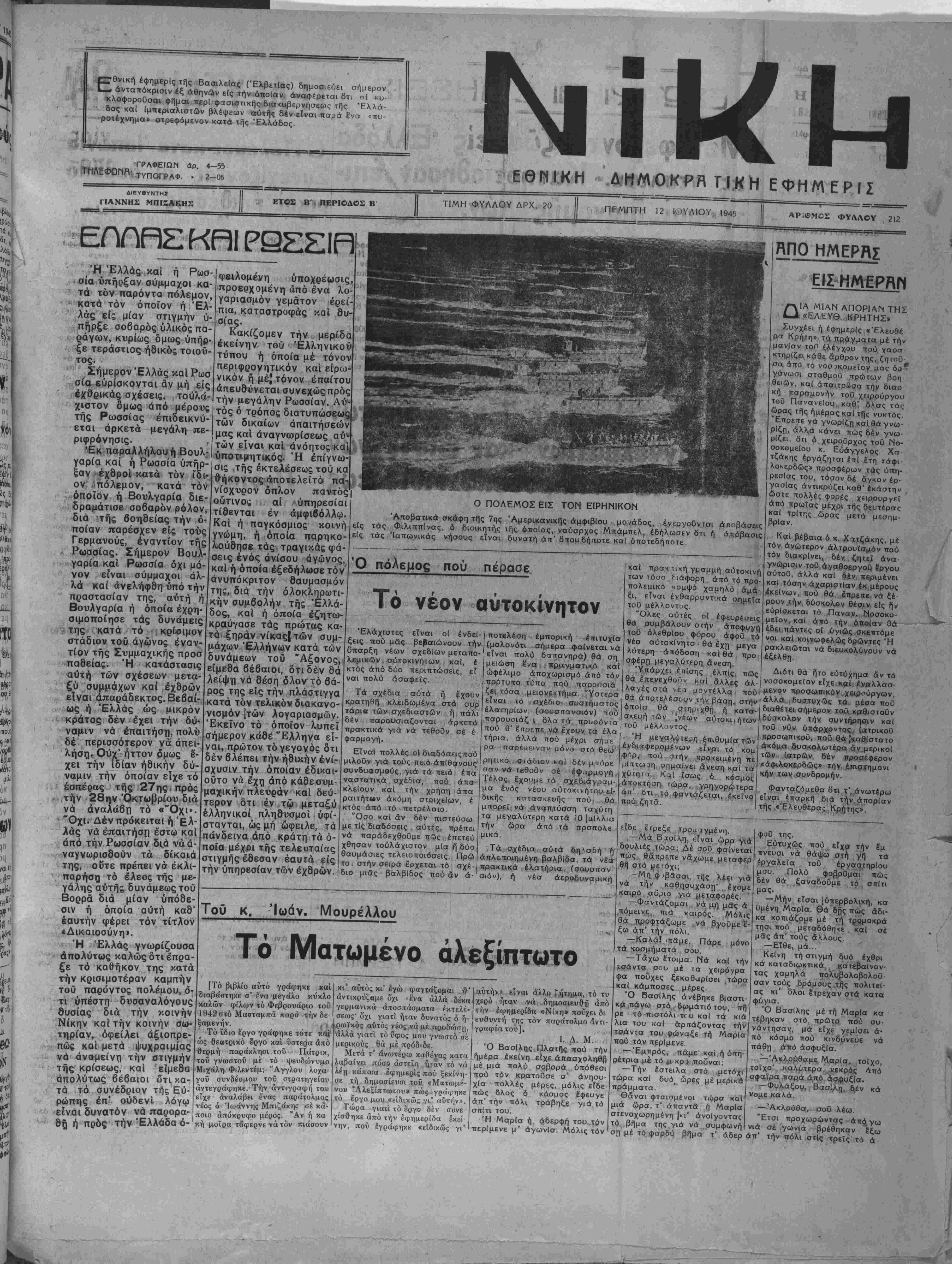 άνταπόκρισιν έξ αθηνών είς την οποίαν άναφέρεται δτι οί κυ¬