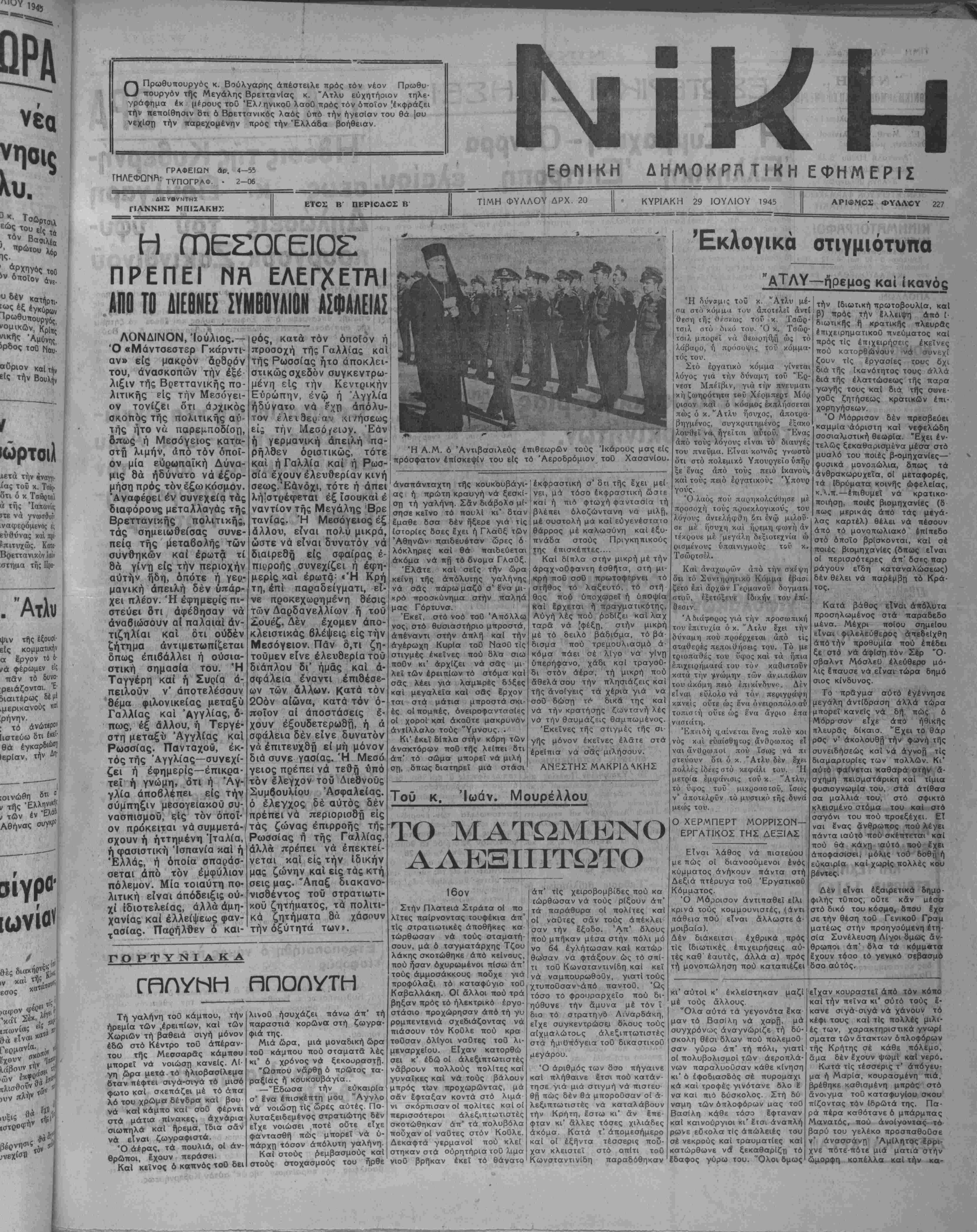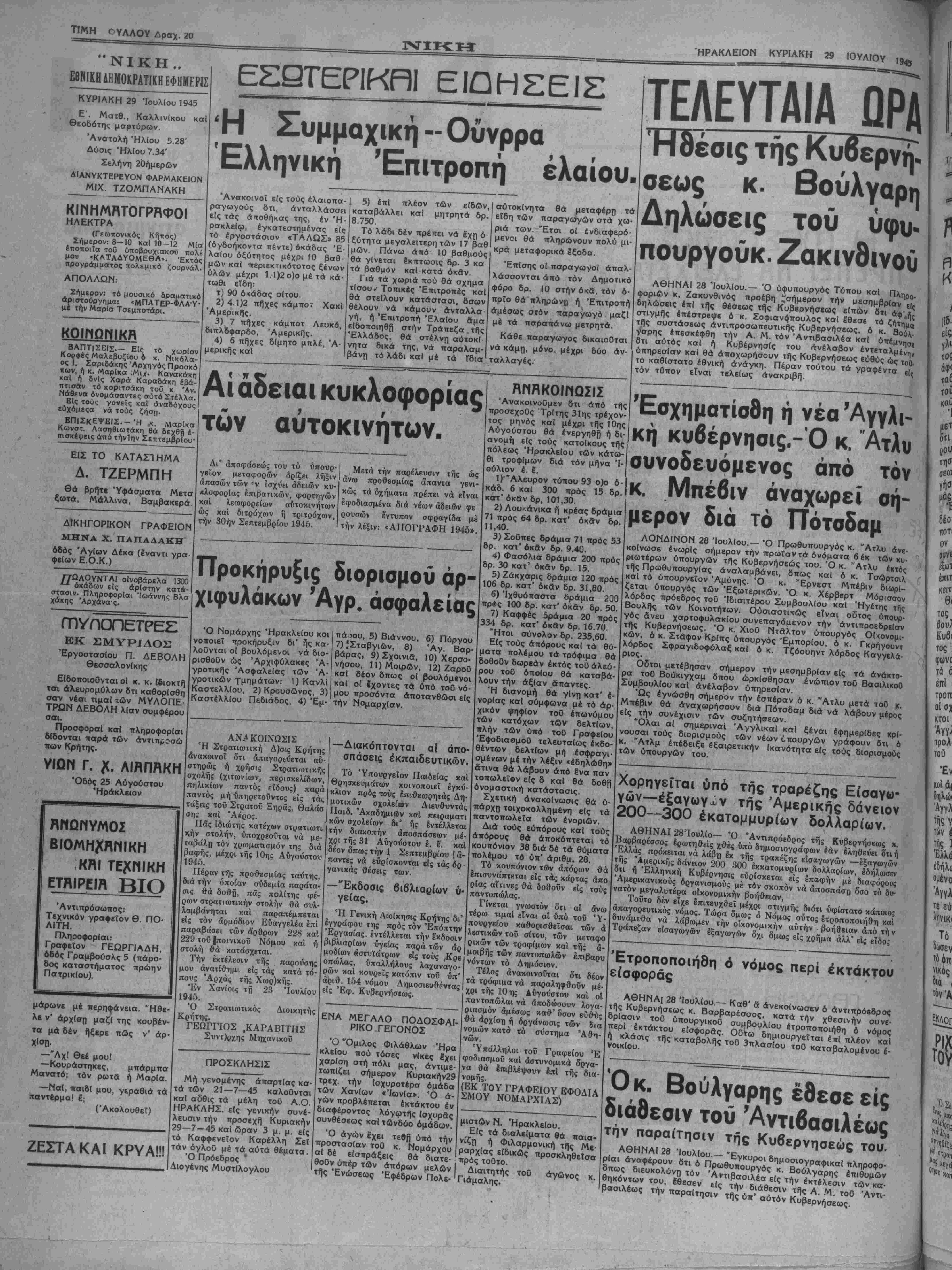 "ΗΡΑΚΛΕΙΟΝ ΚΥΡΙΑΚΗ 29 ΙΟΥΛΙΟΥ 1945