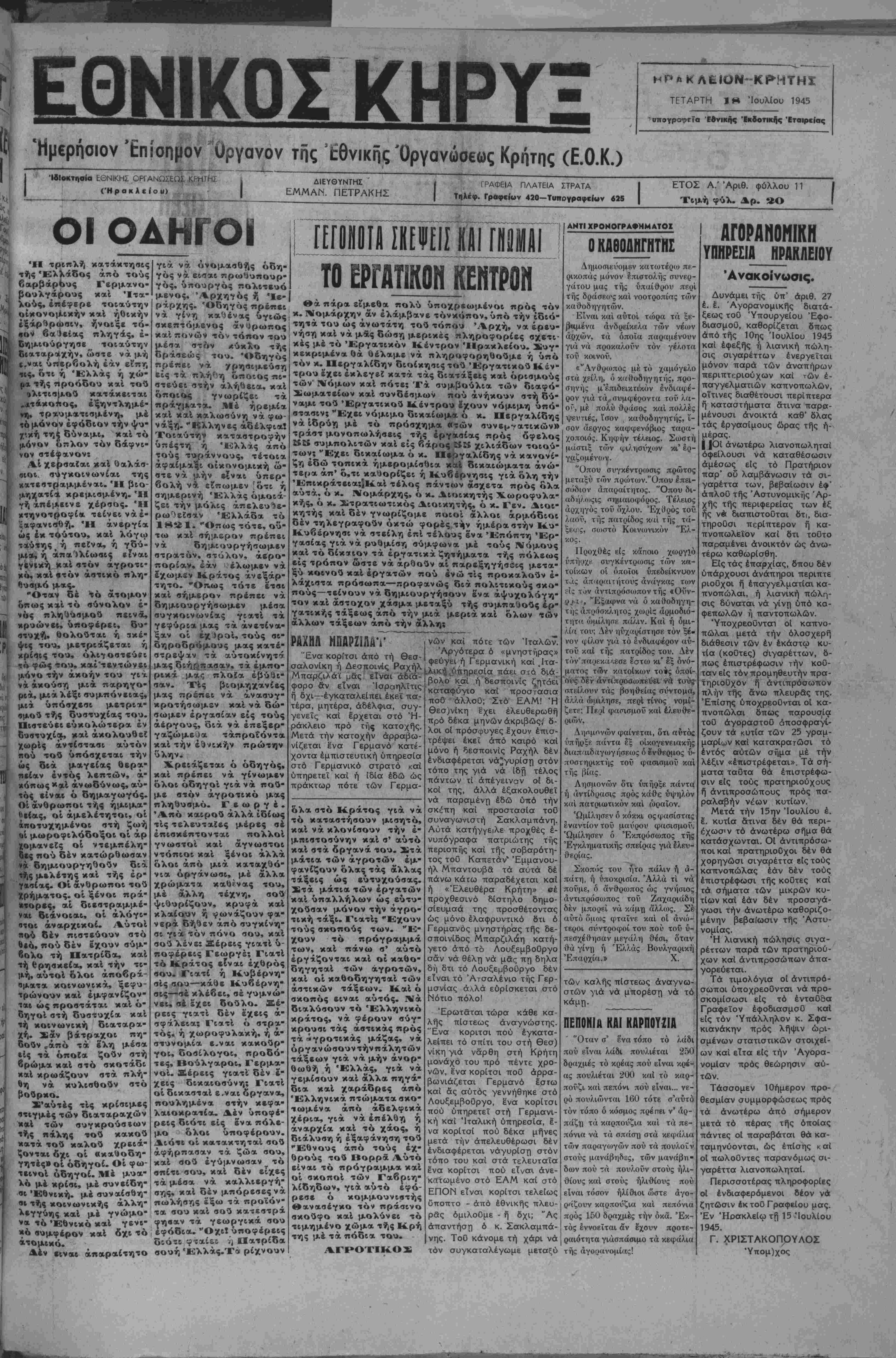 Ήμερησιον Επίσημον Οργανον τής Έθνικης Όργανύσεως Κρήτης (Ε.Ο.Κ.)