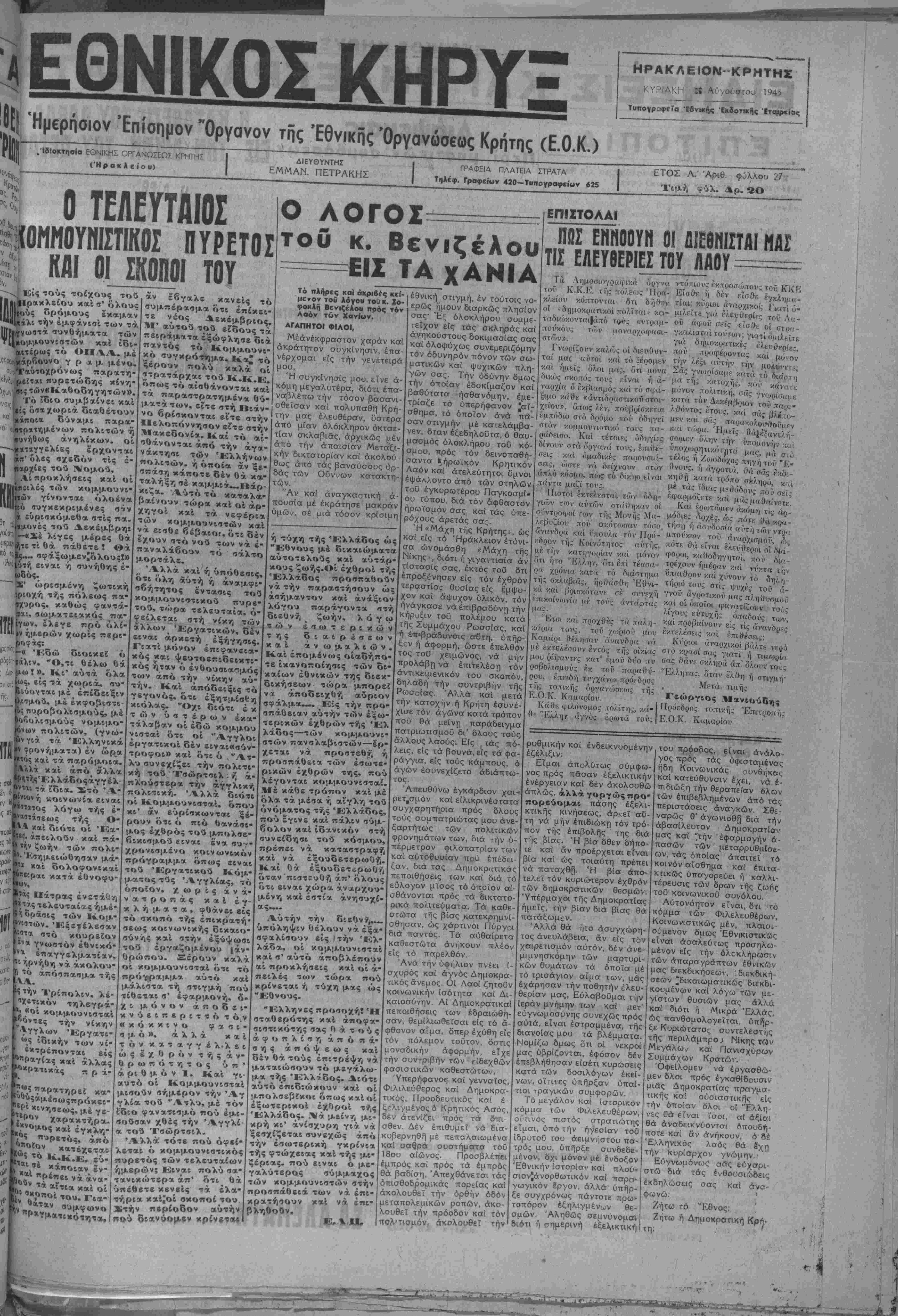 |ίς »*<*■ χωρία διαθέτουν ίποια δύναμι παρα- ίρατημένων πολιτών ή κανείς οί άνηλίκων. -,---.. 6<» έρχονται «π' ολες σχεδόν τίς έ- «ιρχίες τού Νομοΰ, ^ Αιπροκλήσεις καί οί '^πειλές των κομμουνι· των γίνονται όλοένα ΐιό συγκεκριμένες σ-*ν » ευρισκόμεθα στίς συμπέρασμα ότι έπίκει- τε νέος Δεκέμβριος. ΛΙ' αυτού τοΰ εΐδους τα πειράματα έξώφλησε διά παντός τό Κομμουνε- κό συγκρότκ,μα. Κ τό ξέρουν πολύ καλά οί στρατάρχαι τοΰ Κ.Κ.Ε. όπως τό αίσθάνονται καί τα παραστρατημένα Θύ· ματάτων, είτε στή Βιάν-| νο βρίσκονται είτε στήν Ηελοπόννηαον είτε στήν """ ~ αί τό αί- τήν Ο ΛΟΓΟΣ——==== τοθ κ. Βενιζέλου =ΕΙΣ ΤΑ χΑΝΙΑ φοκλή Βενιζέλου κρός τόν Λαόν των Χανίων. ΑΓΑΠΗΤΟΙ ΦΙΑΟΙ, Μέάνέκφραστον χαράν καί ακράτητον συγκίνησιν, έπα- νέρχομαι είς την γενέτειρά |έΘνι«Ί ™Υμή. έν τούτοις νο- ερως 7ΐμ°υν διαρκώς πλησίον σας· Έξ ολοκλήρου συμμε- τεΓχον είς τάς σκληρώς καί ΕΠΙΖΤΟΛΑΙ ΤΙΣ ΠΟΣ ΕΝΝΟΟΥΝ ΟΙ ΔΙΕΘΝΙΣΤΑΙ ΜΑΣ " ΕΛΕΥ8ΕΡΙΕΣΤ0Υ ΛΑΟΥ ===== Τα ρ δέν ίί ?τ#Ους μου, ματικών καί εδον •ϊθανονται Ή συγκίνησις μου. είνε ά- ■■·-■■- - ίρα> διότι έπα-