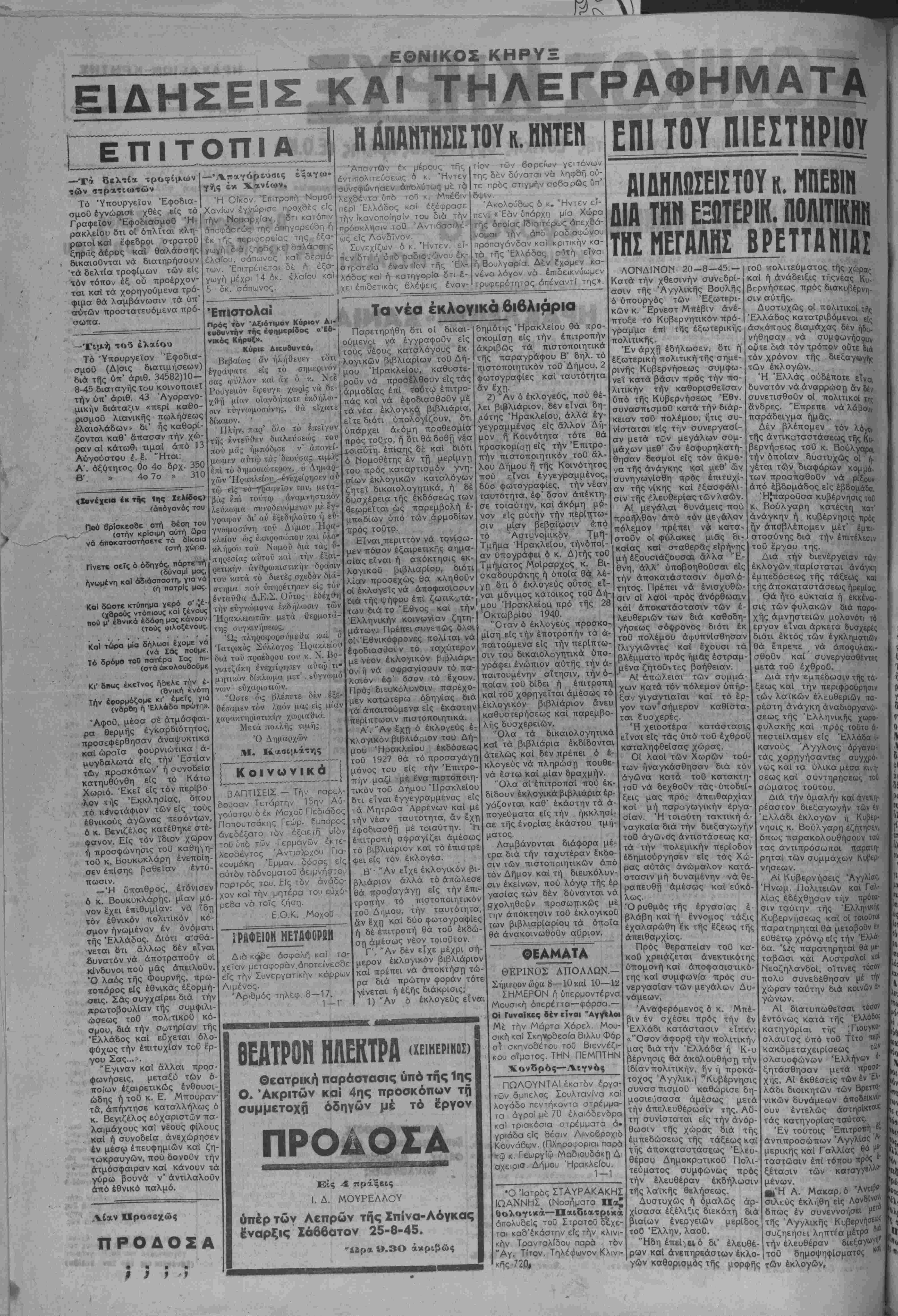 ΠΤΑΡΤΗ »* Αύγούστου 1945