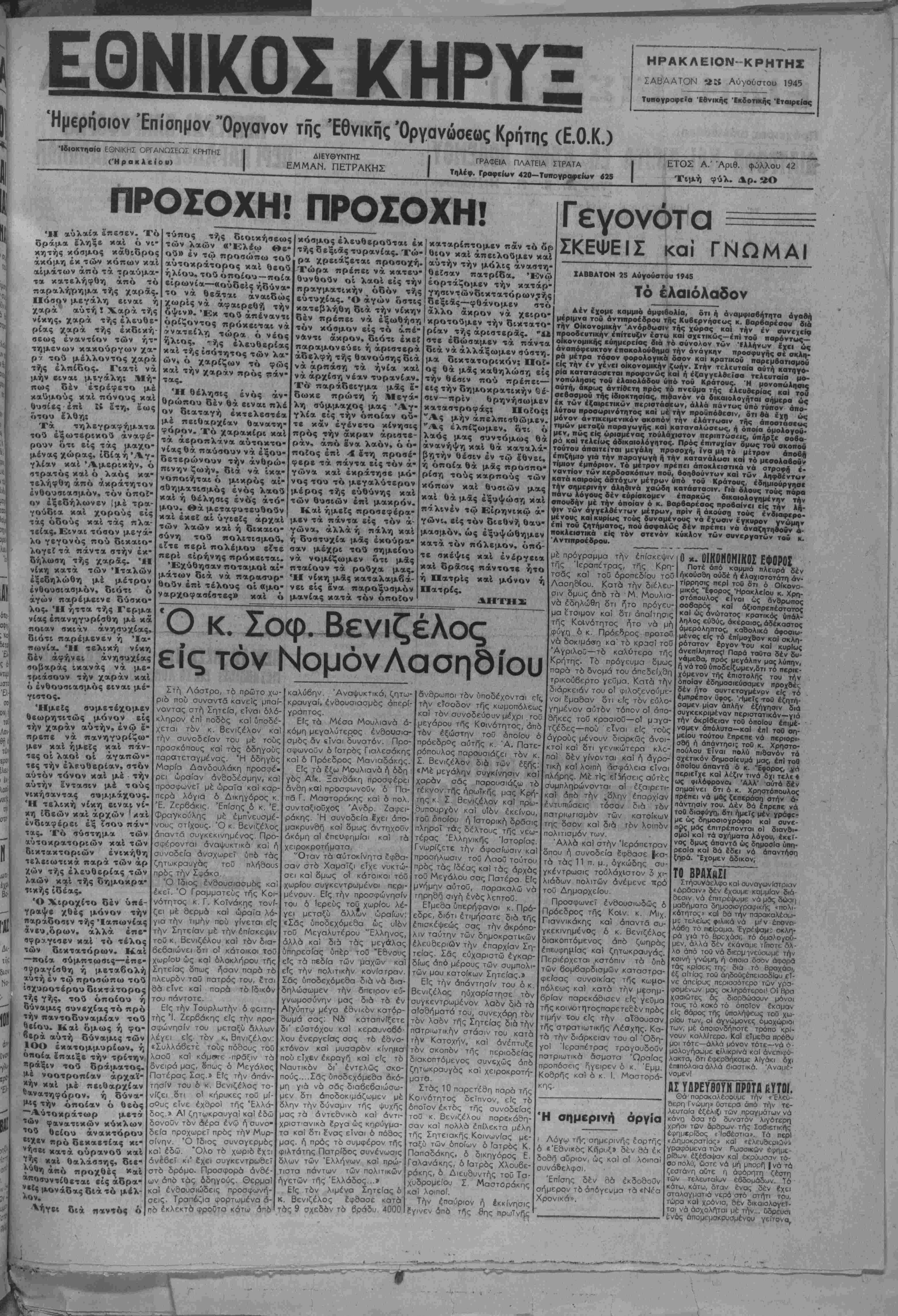Ήμερήσιον Επίσημον "Οργανον της Έθνικης Όργαγόσεως Κρήτης (Ε.Ο.Κ.)