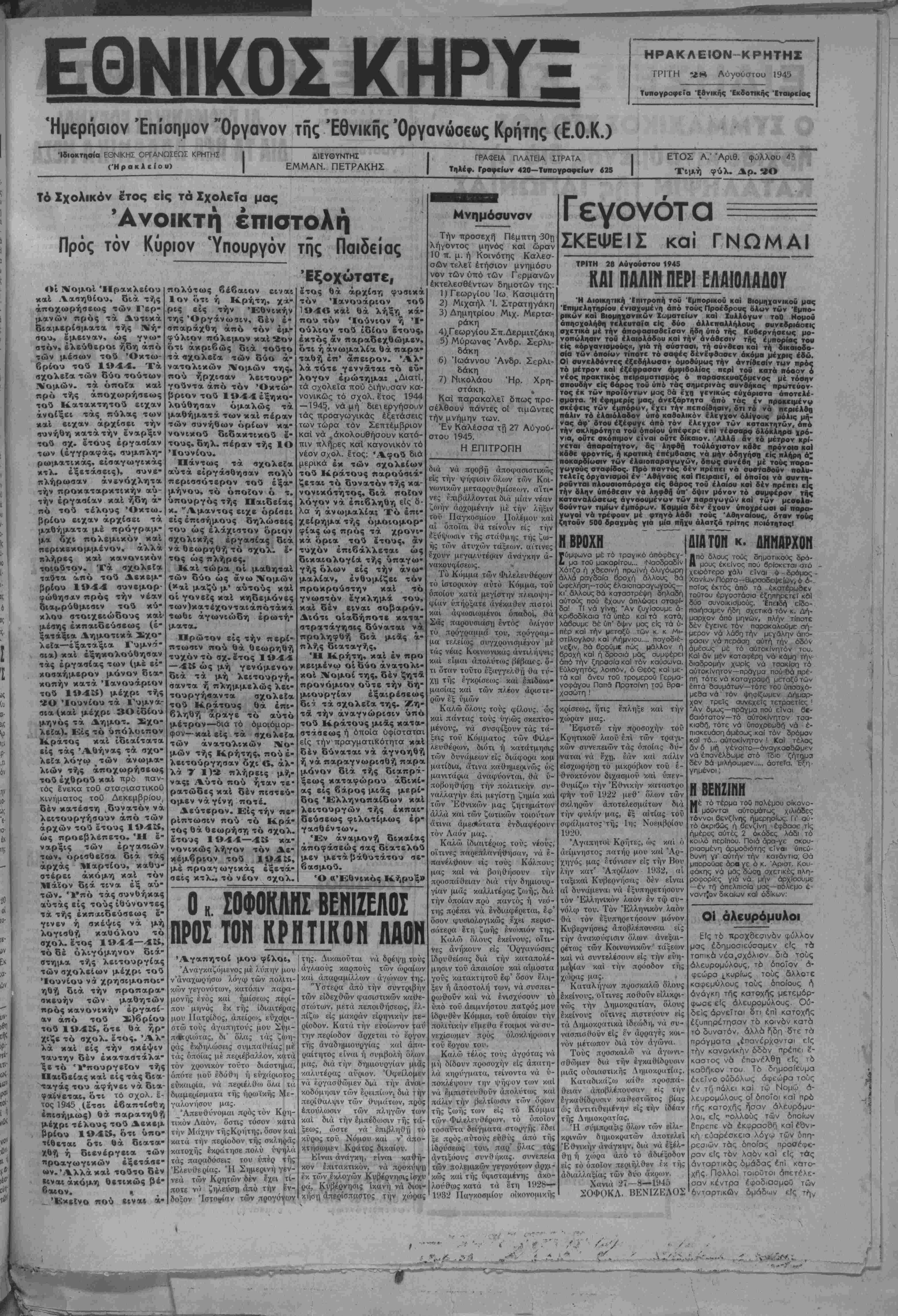 Έμερήσιον Επίσημον "Οργανον της Έθνικης Όργανώσεως Κρήτης (Ε.Ο.Κ.)