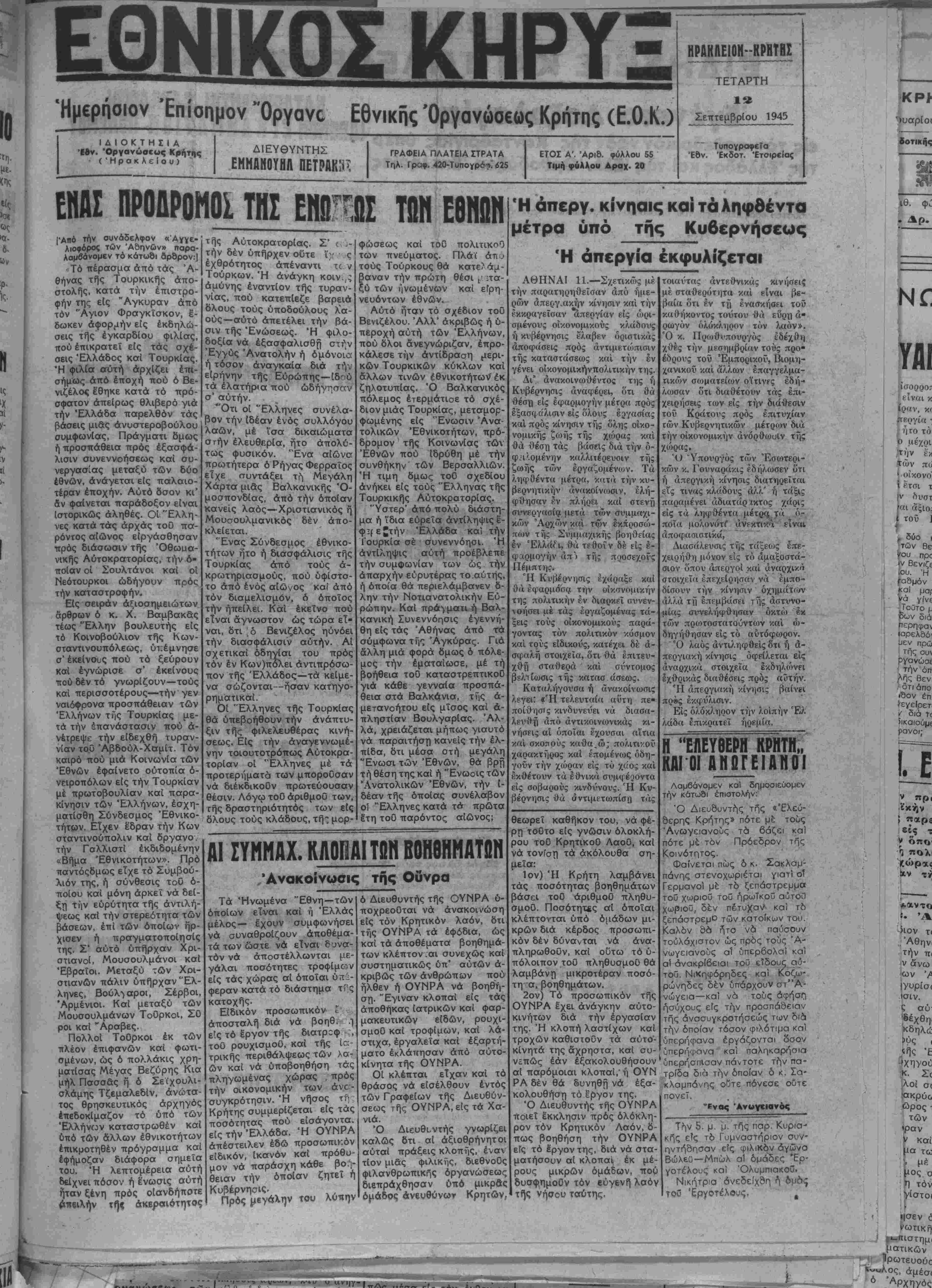 Ήμ€ρήοιον Έηίοημον "Οργανο Εθνικής "Οργανώσεως Κρήτης (Ε.Ο.Κ.)