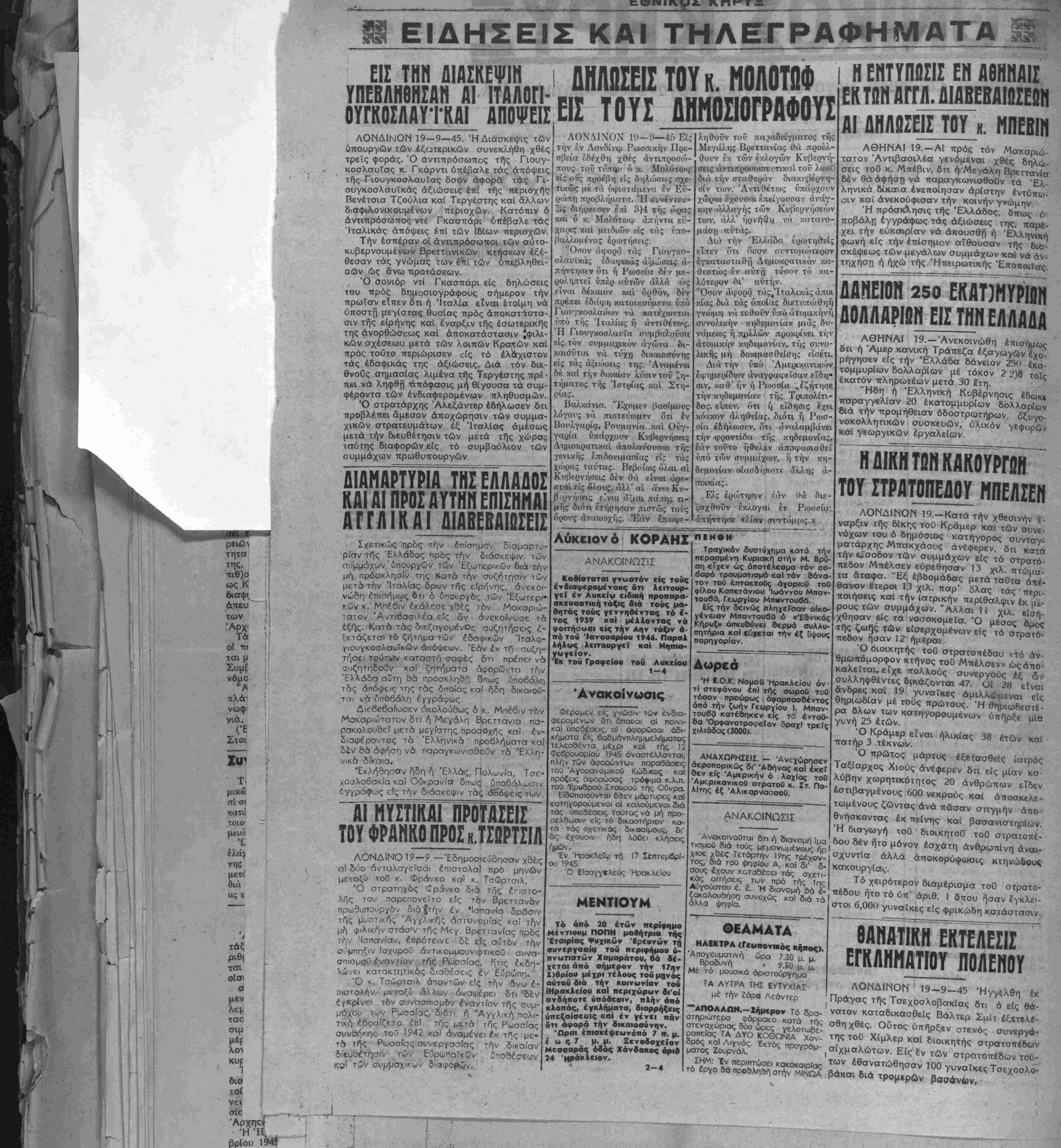 ΛΟΝΔΙΝΟΝ 19—9—45 Ήγγέλθη έκ