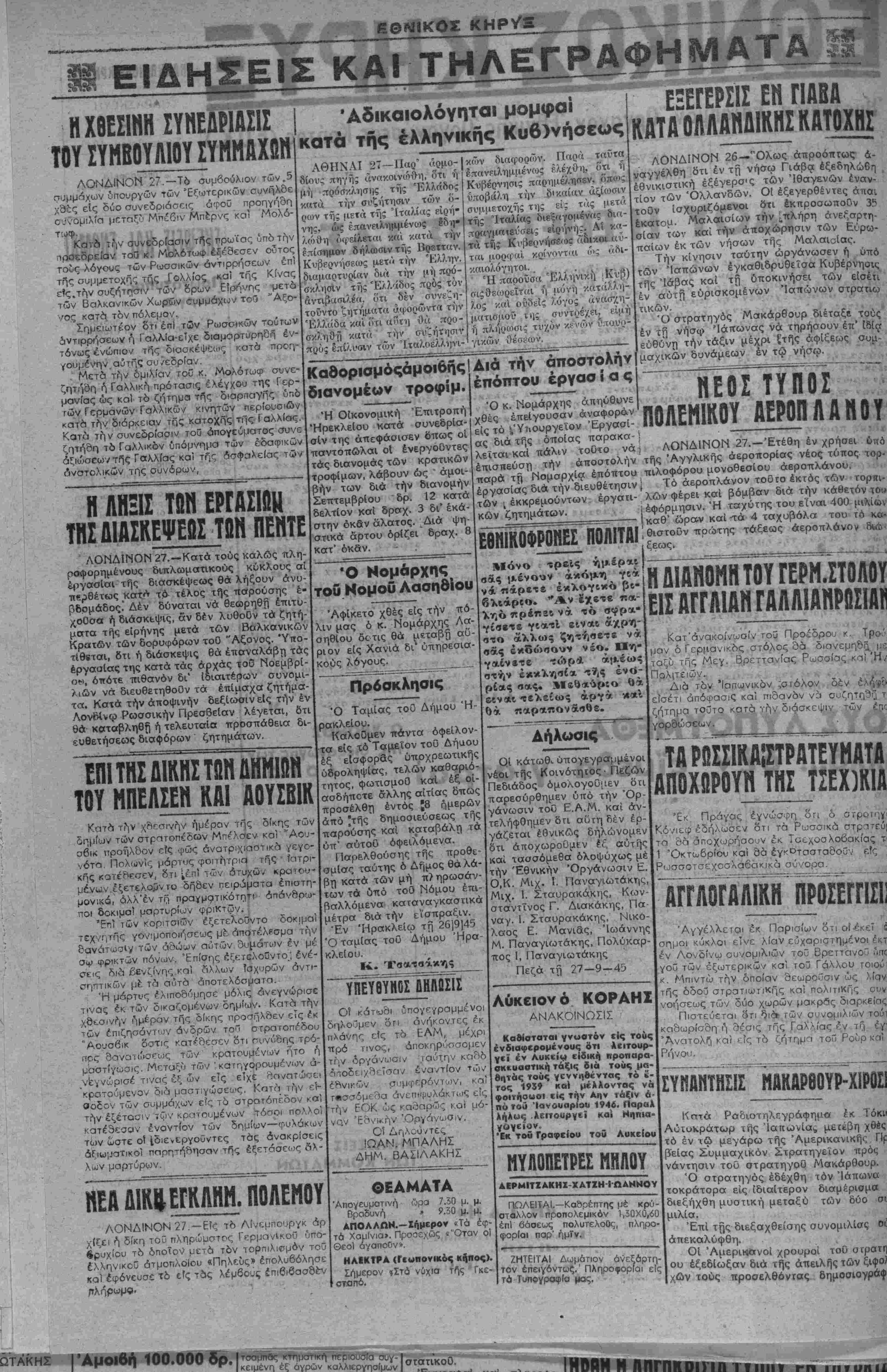 Έν Ηρακλείω τή 26]9]45