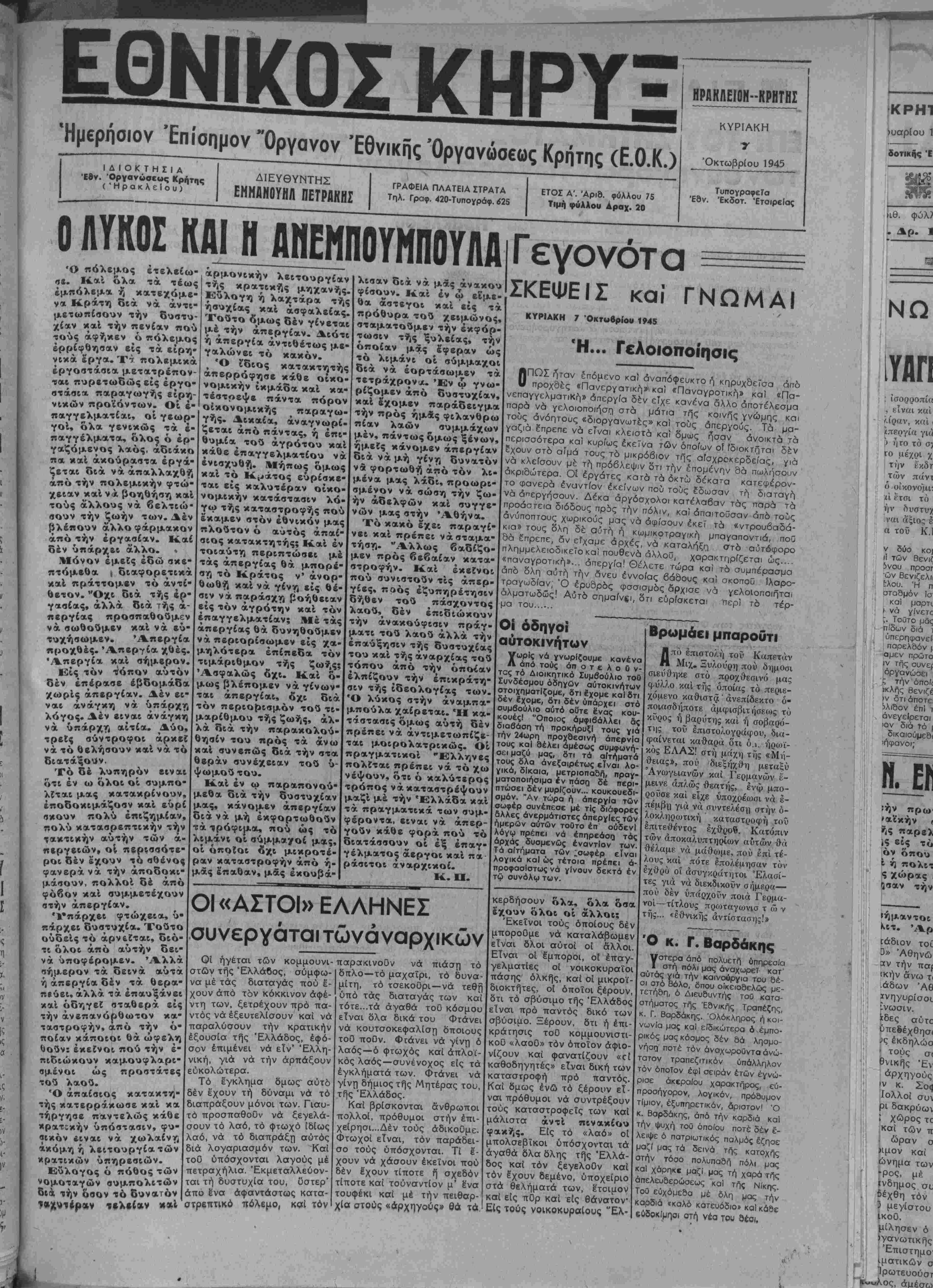 ΚΥΡΙΑΚΗ 7 Όκταβρίου 1945