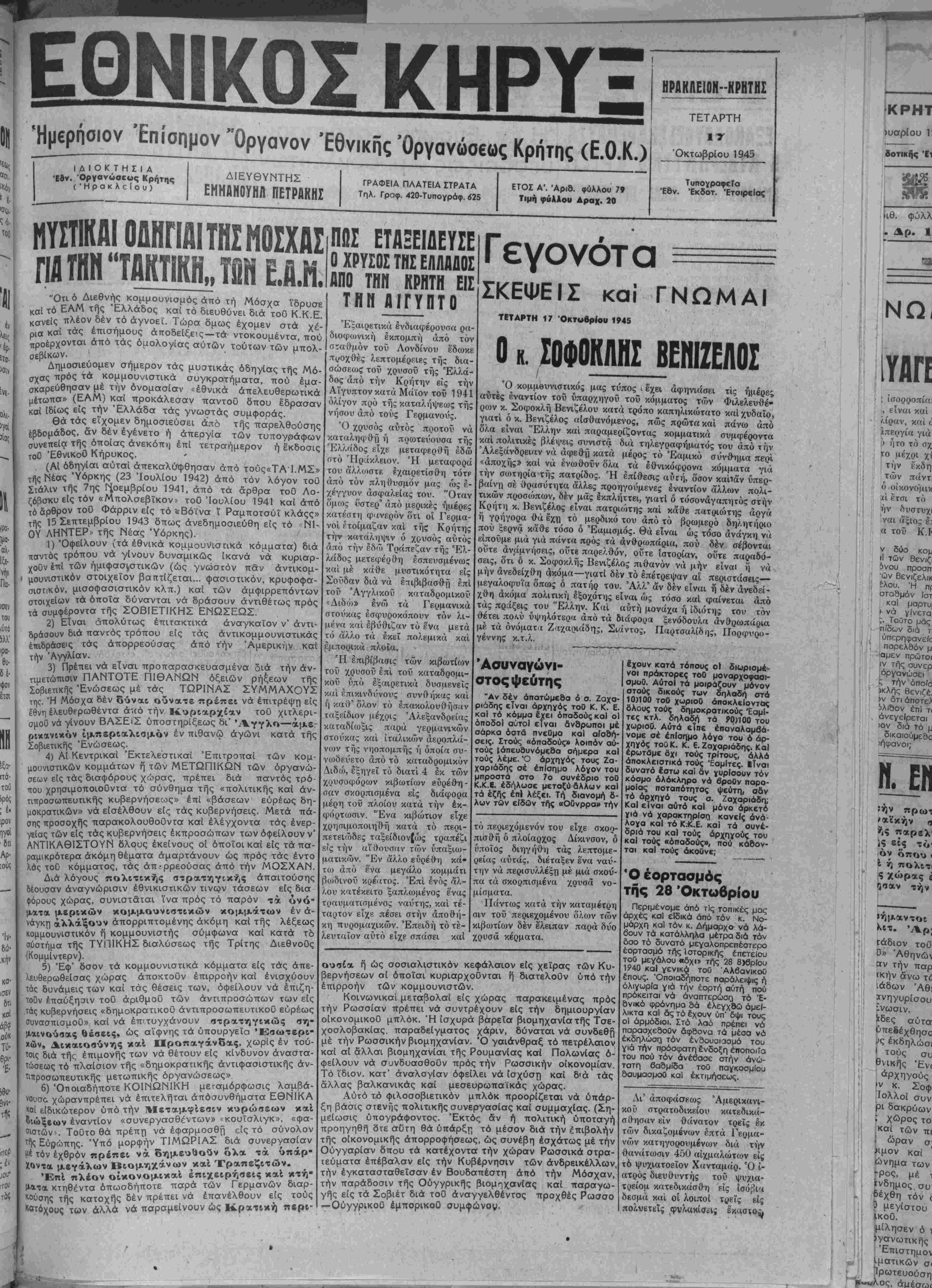 καί τό ΕΑΜ τής Ελλάδος καί τό διευθύνει διά τού Κ.Κ.Ε.
