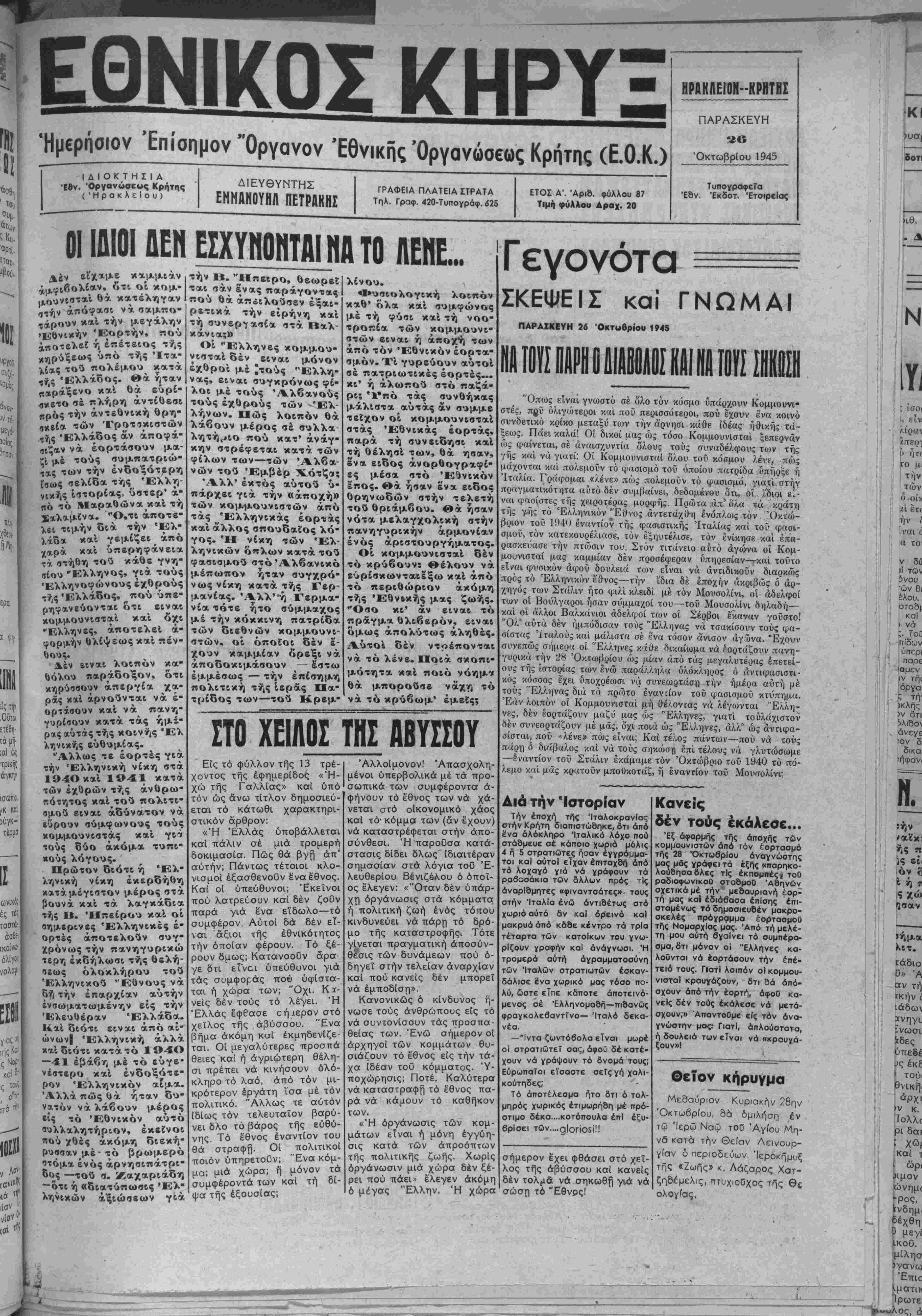 Ήμβρποιον Έπίοημον Όργανον Έθνικής "Οργανώσεως Κρήτης (Ε.Ο.Κ.)