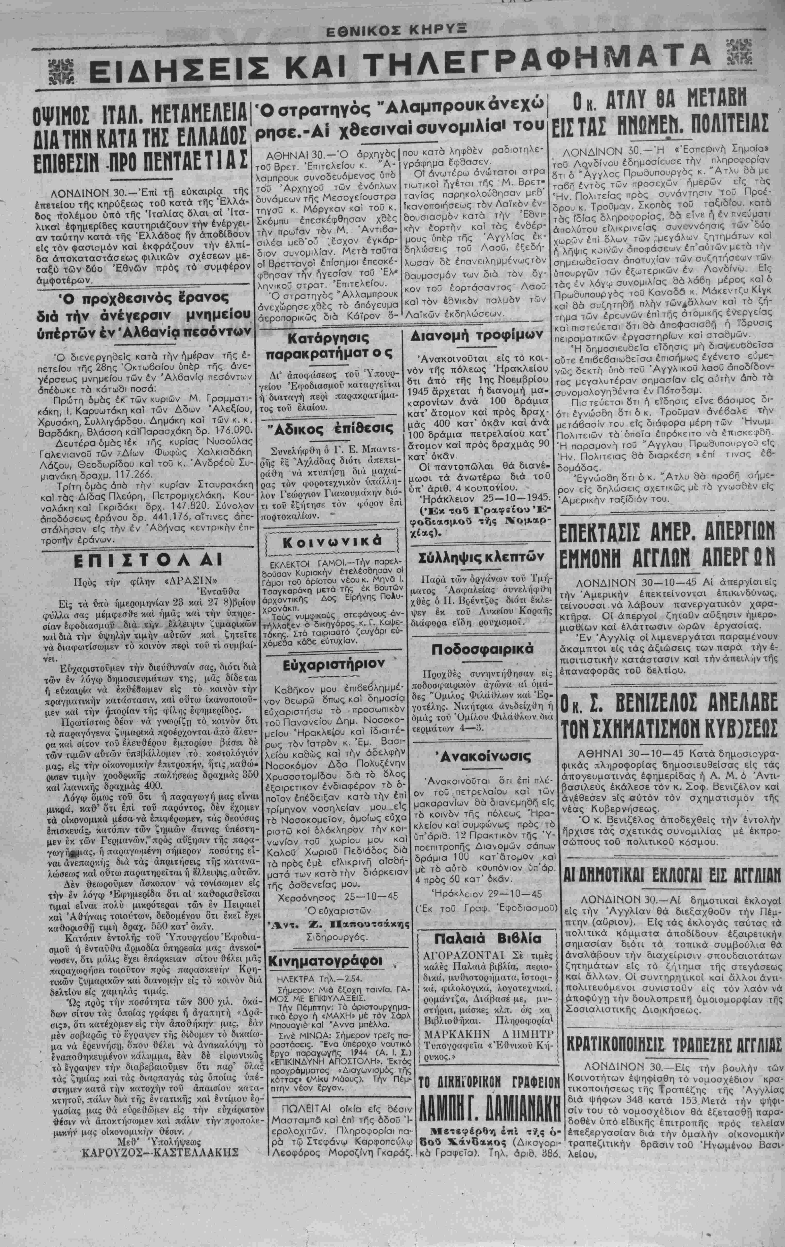 ΑΘΗΝΑΙ 30—10—45 Κατά δημοσιογρα-
