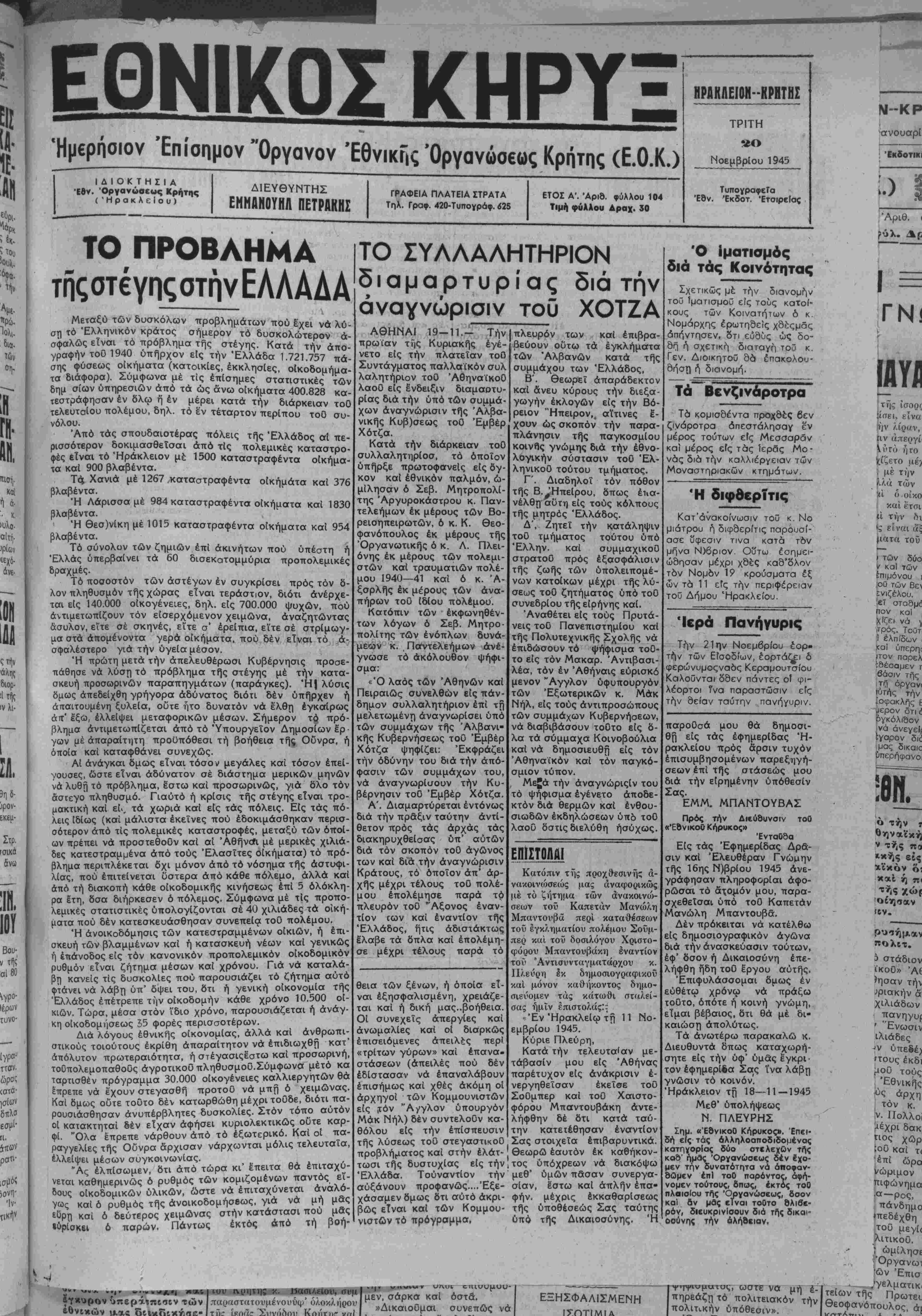 ΉμΕρήοιον Επίσημον Όργανον ΈθνικΓ,ς "Οργανώσεως Κρήτης (Ε.Ο.Κ.