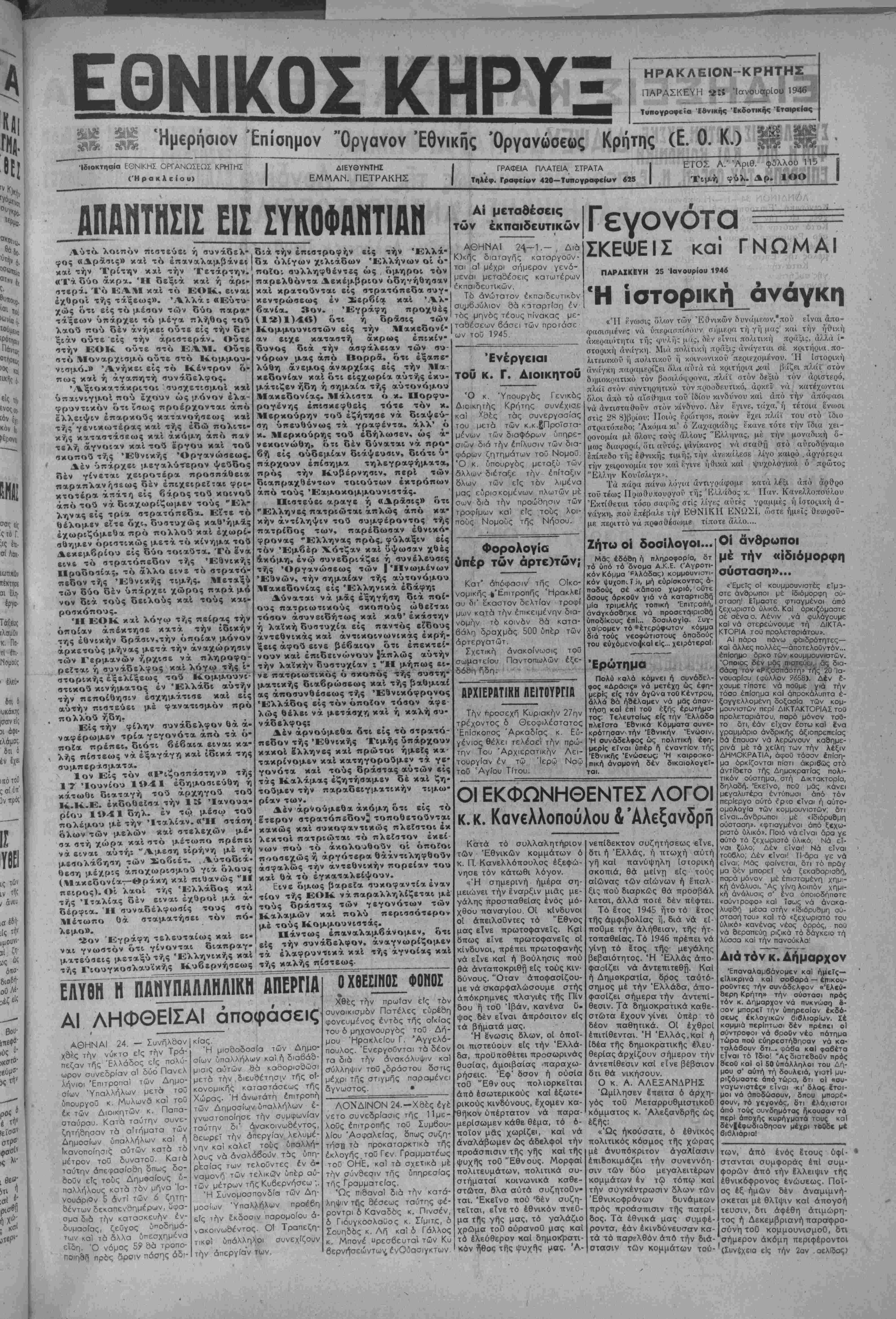 ΠΑΡΑΣΚΕΥΗ 2*5 Ίανουαρίου 1946 !'