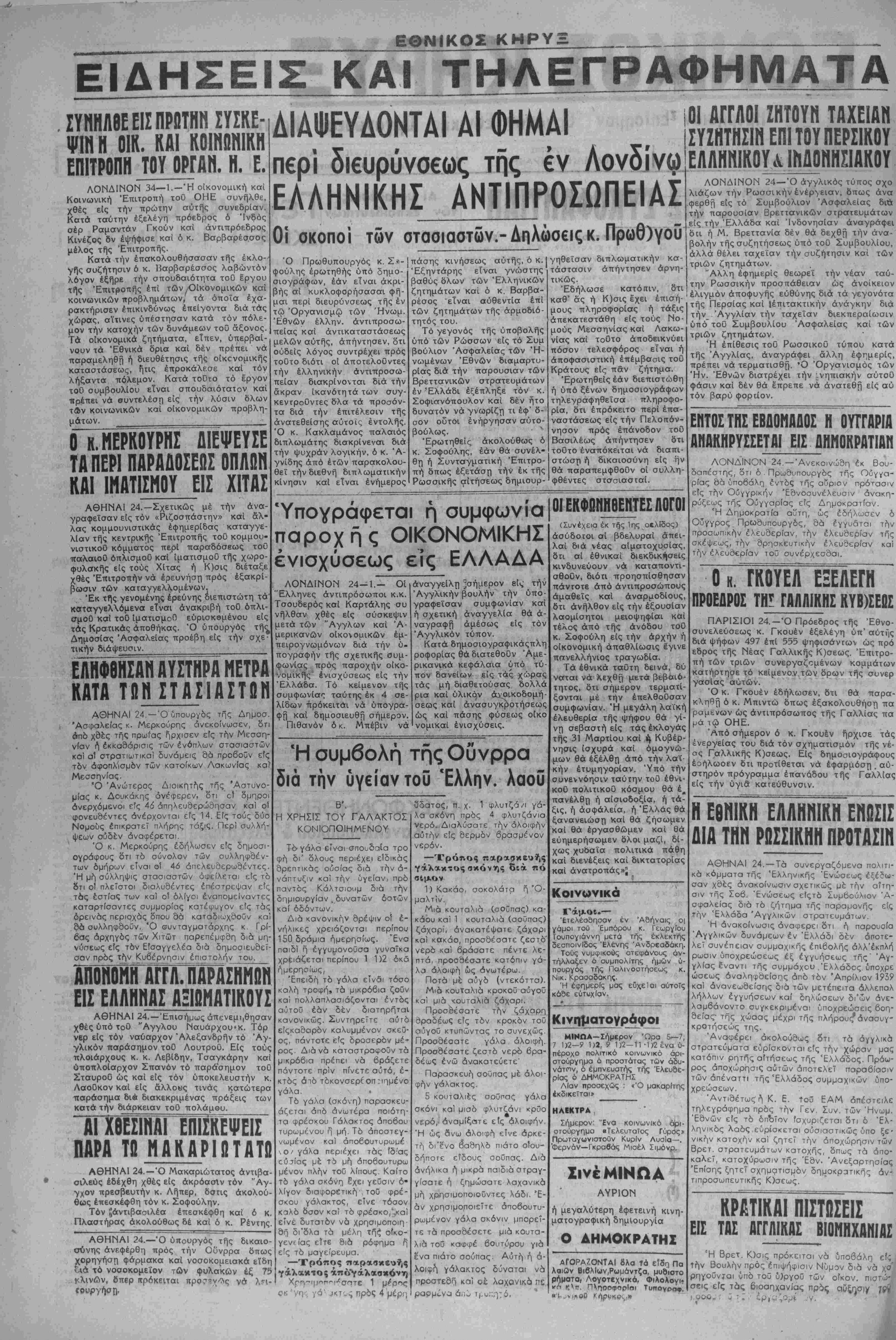 ΑΘΗΝΑΙ 24. — Τα συνεργαζόμενα ποιτι-