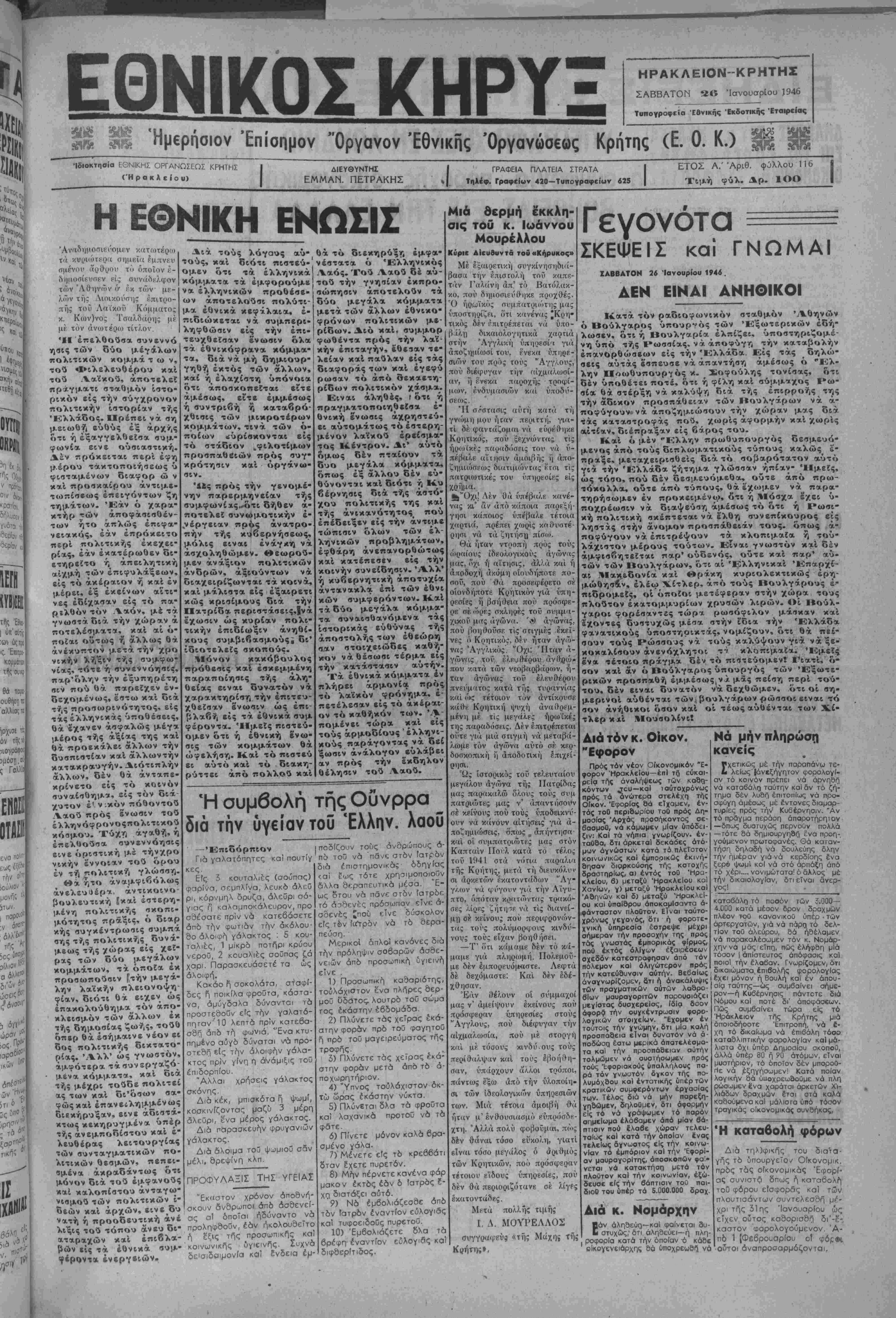 Ημερήσιον Επίσημον "Οργανον Έθνΐκης Όργανώσεως Κριίτης (Ε. 0. Κ.) |1 ϋ