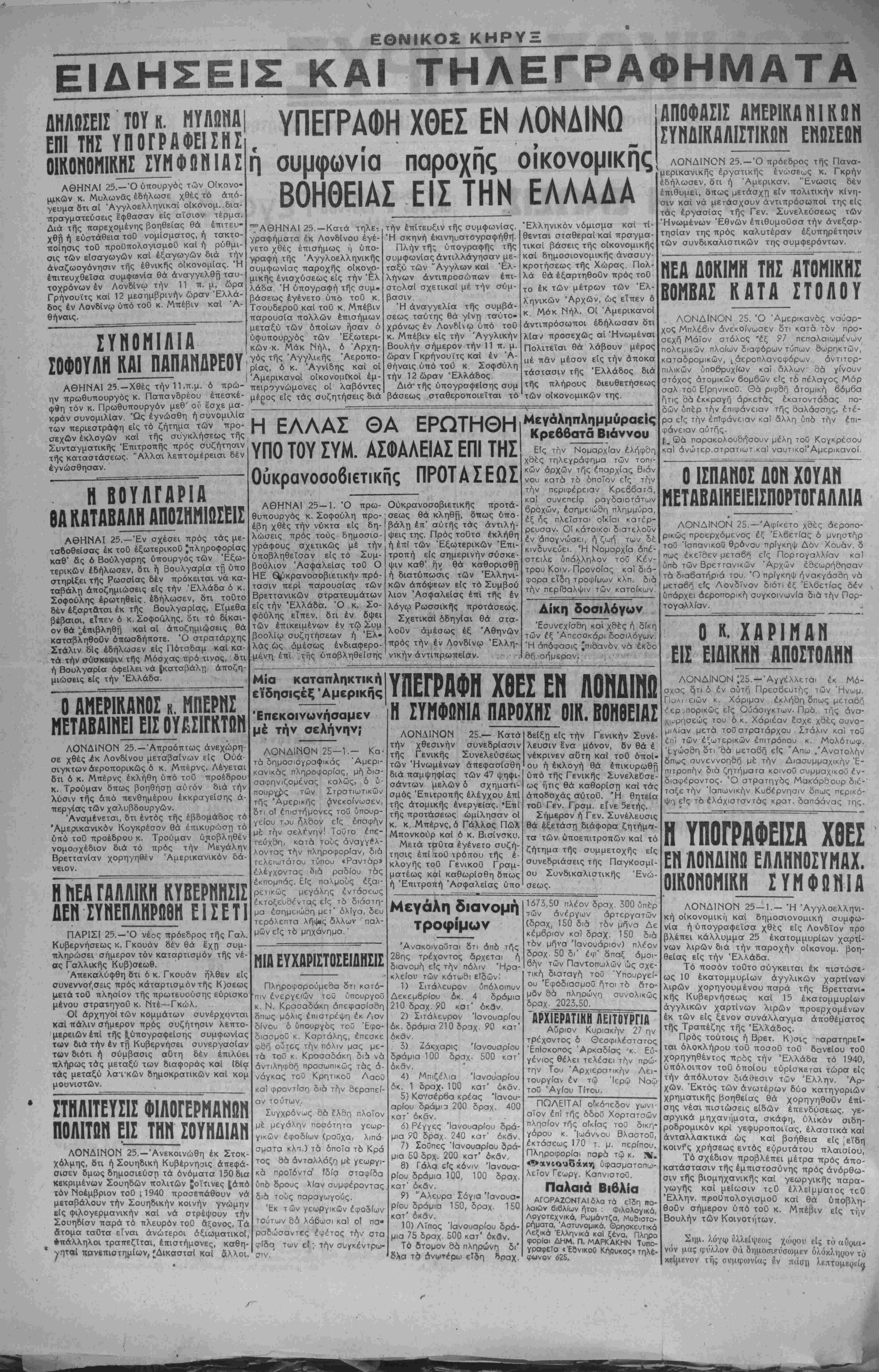 νία ή ύπογραφεΐσα χθές είς Λονδΐον προ