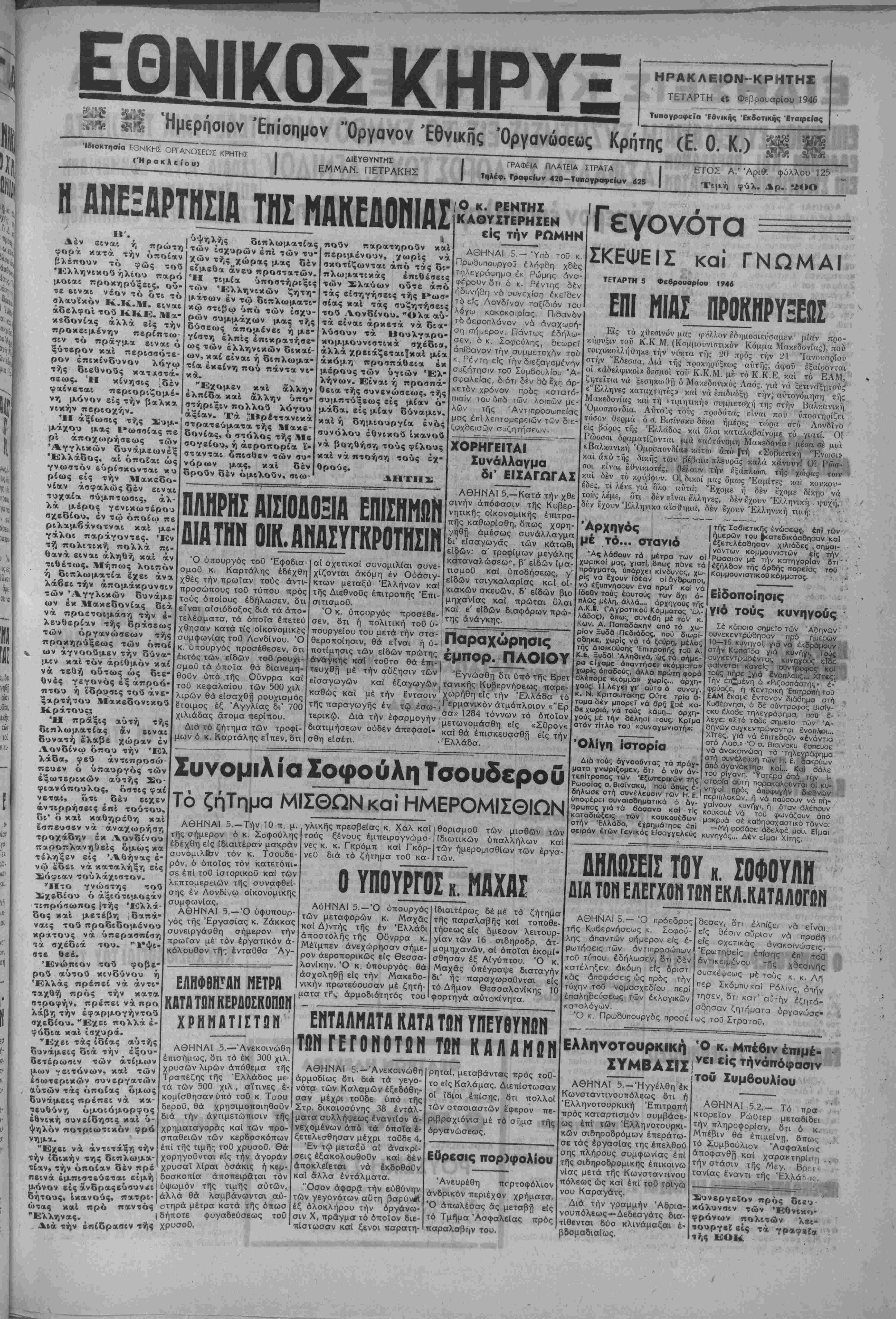 & Μ* Ήμερήσιον Επίσημον Όργανον Έθνικής "Οργανώσεως Κρήτης (Ε. 0. Κ.) ϋ ||