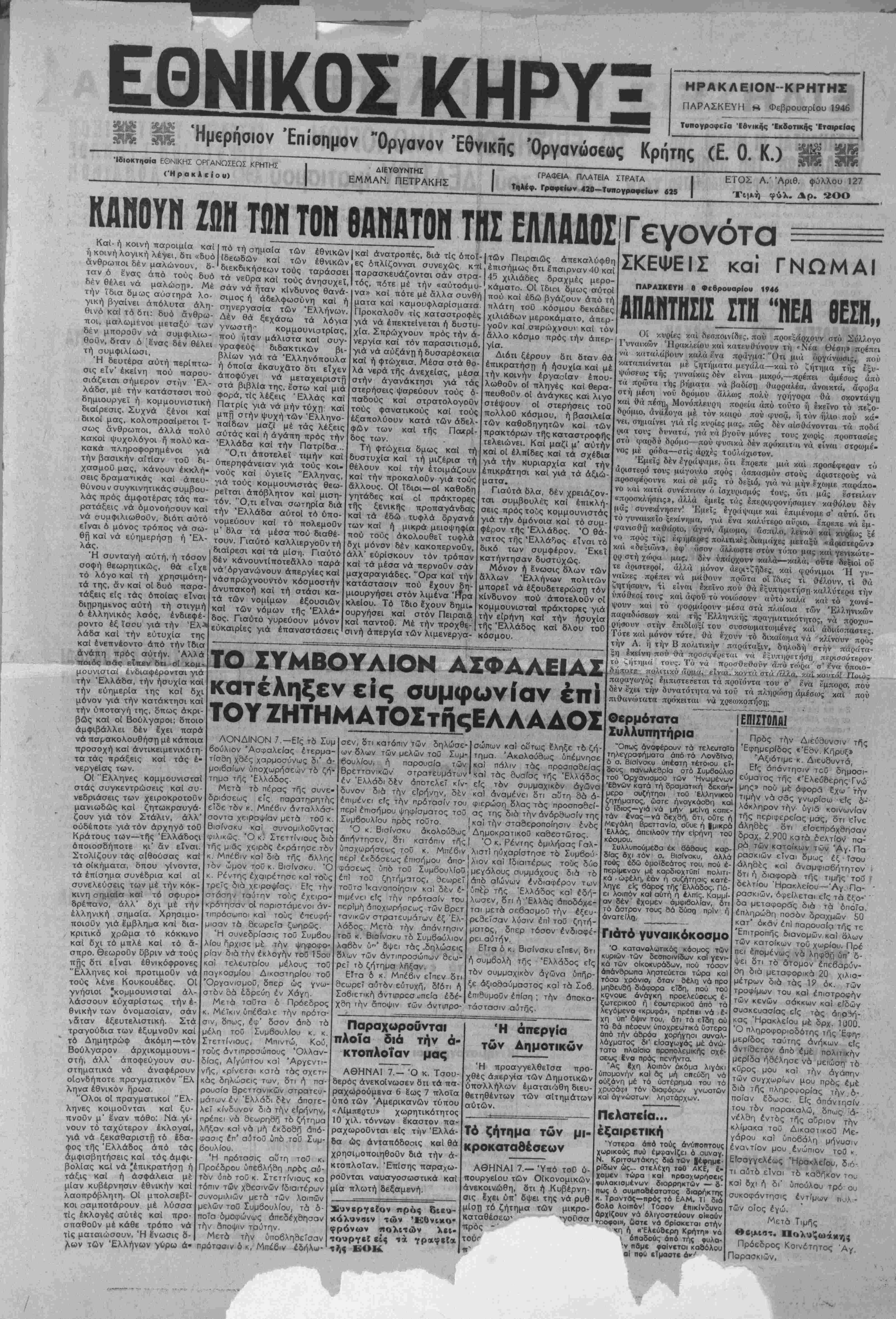 ΠΑΡΑΣΚΕΥΗ 8 Φεβρουαρίου 1946