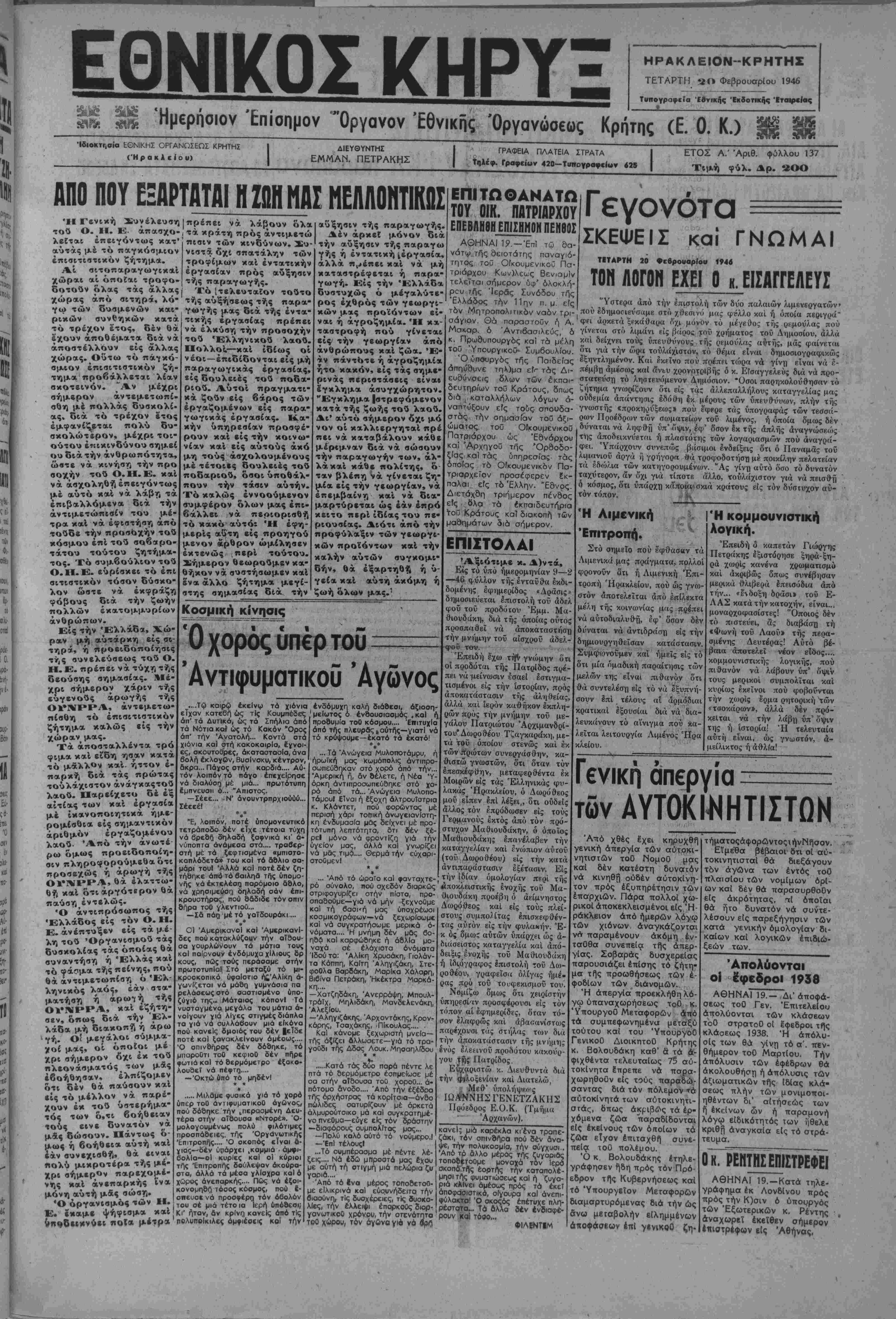 Ήμερήοιον Έπίοημον Όργανον Έθνικής "Οργανώσεως Κρήτης (Ε. 0. Κ.
