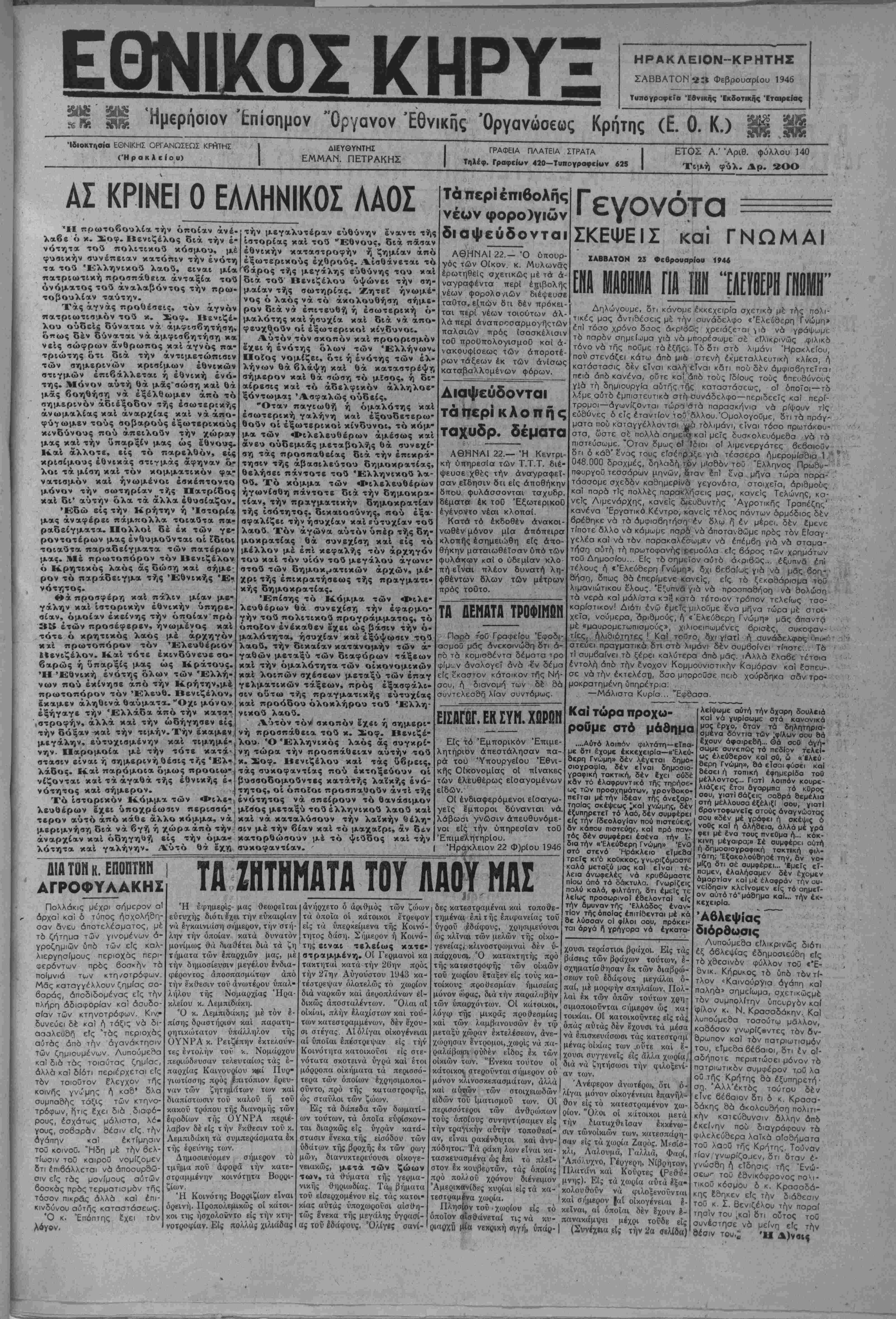 "Ημ€ρήοιον Επίσημον Όργανον Έθνικής "Οργανώσεως Κρήτης (Ε. 0. Κ.)