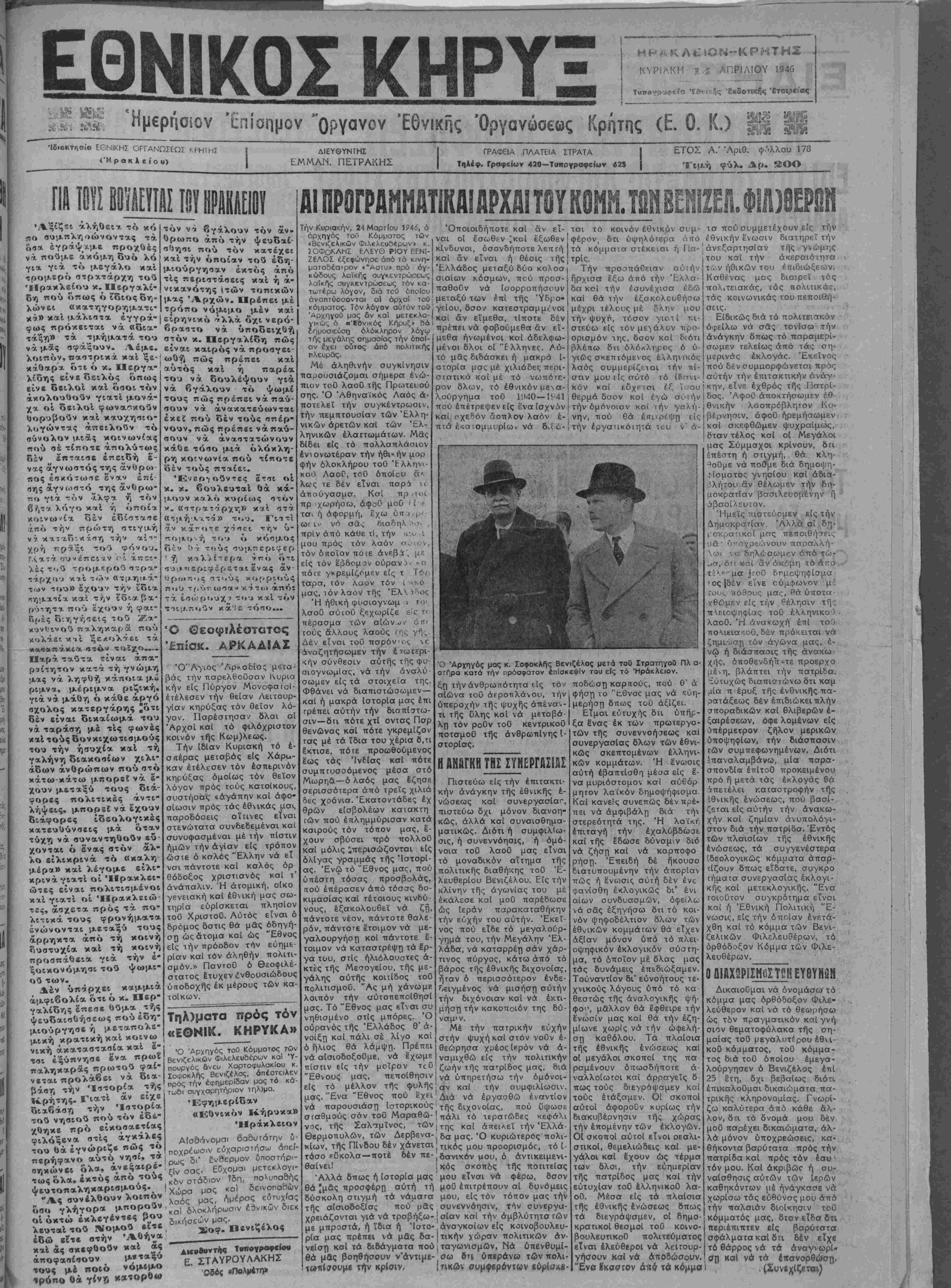 Ημερηοιον Επίσημον "Οργανον Έθνικης Όργανόσεος Κρήτης (-. 0. Κ.)