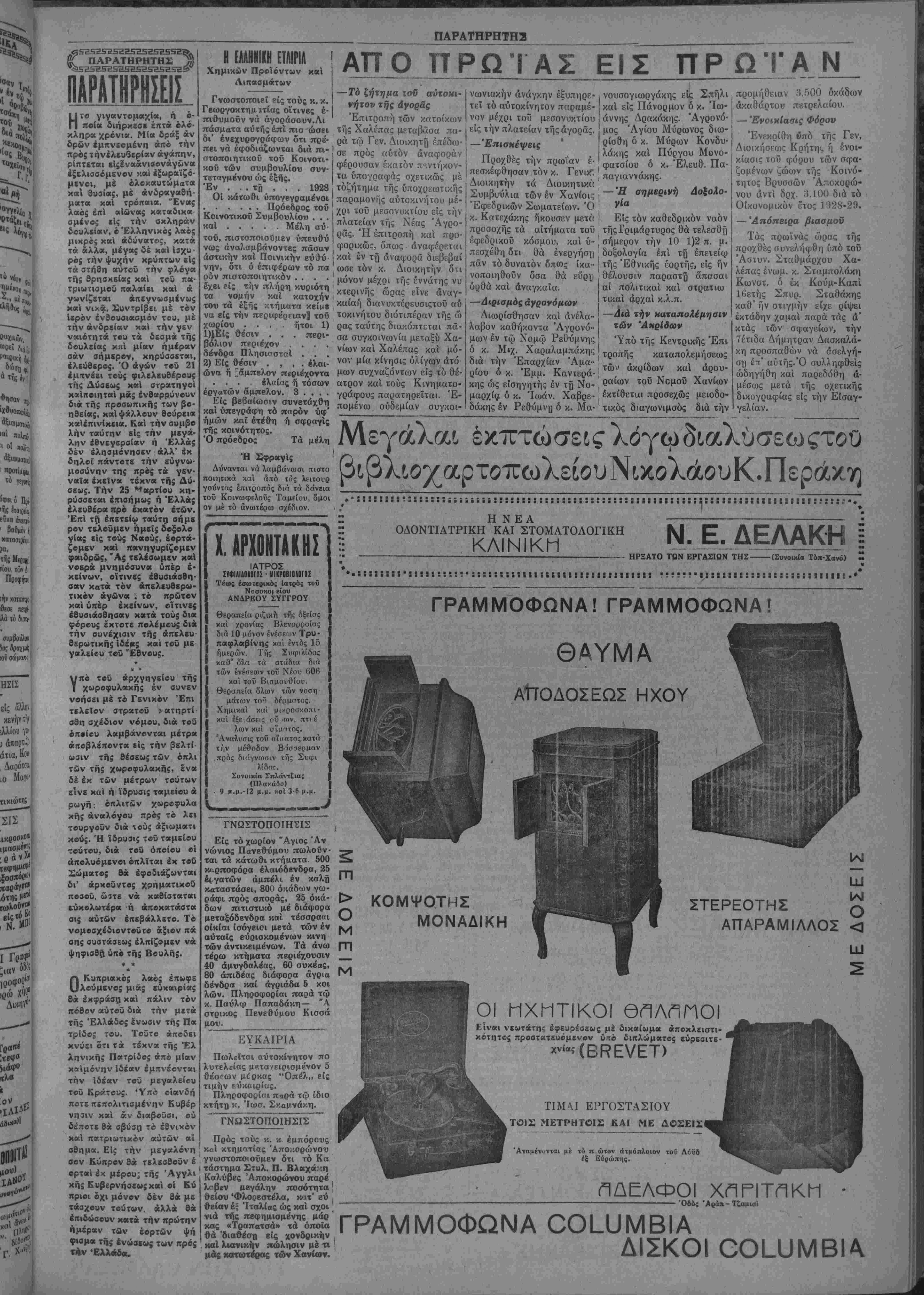 < ι_υ Πρός τούς κ. κ έμπόρους καί κτηματίας Άπο.ιορώνου γνωστοποιοΰμβν ότι τό Κα τάστημα Στυλ. Π. Βλαχά·.η Καλύβες Άποκορώνου παρέ λι-βεν μεγάλην ποσότητα | θείον 'Φλορεστέλα, κατ' εύ , θείαν έξ Ιταλίας ώς καί σχοι' νιά τής πβφημισμένης μάρ ' κάς «Τραπατσά» τα όποΐα Οά 'διαθέση βίς χονδρικήν { καί λιανικήν πώλησιν μέ τι μάς κατωτέρας των Χανίων. ΟΙ ΜΧΜΤΙΚΟΙ ΘΠΛΠΠΟΙ Είναι νεωτάτηι, εφευρέσεως μέ δικαίωμα άποκλειστι· κότητος προστατευόμενον ύτό διπλώματος εύρεσιτε· (ΒΡν ΤΙΜΛΙ ΕΡΓΟΣΤΑΣΙΟΥ ΤΟΙΣ ΜΕΤΡΗΤΟ1Σ ΚΑΙ ΜΕ ΔΟΣΕΙΣ Αναμένονται μέ τό π ώτον ατμόπλοιον τοΰ Λοϋδ έξ Εύρώπης. ΠΑΕΛΦΟΙ Χγ,ΡΙΤιΊΚΜ -------------------------- Όβός Άράπ-Τζαμισί ΓΡΑΜΜΟΦΩΝΑ ΔΙΣΚΟΙ