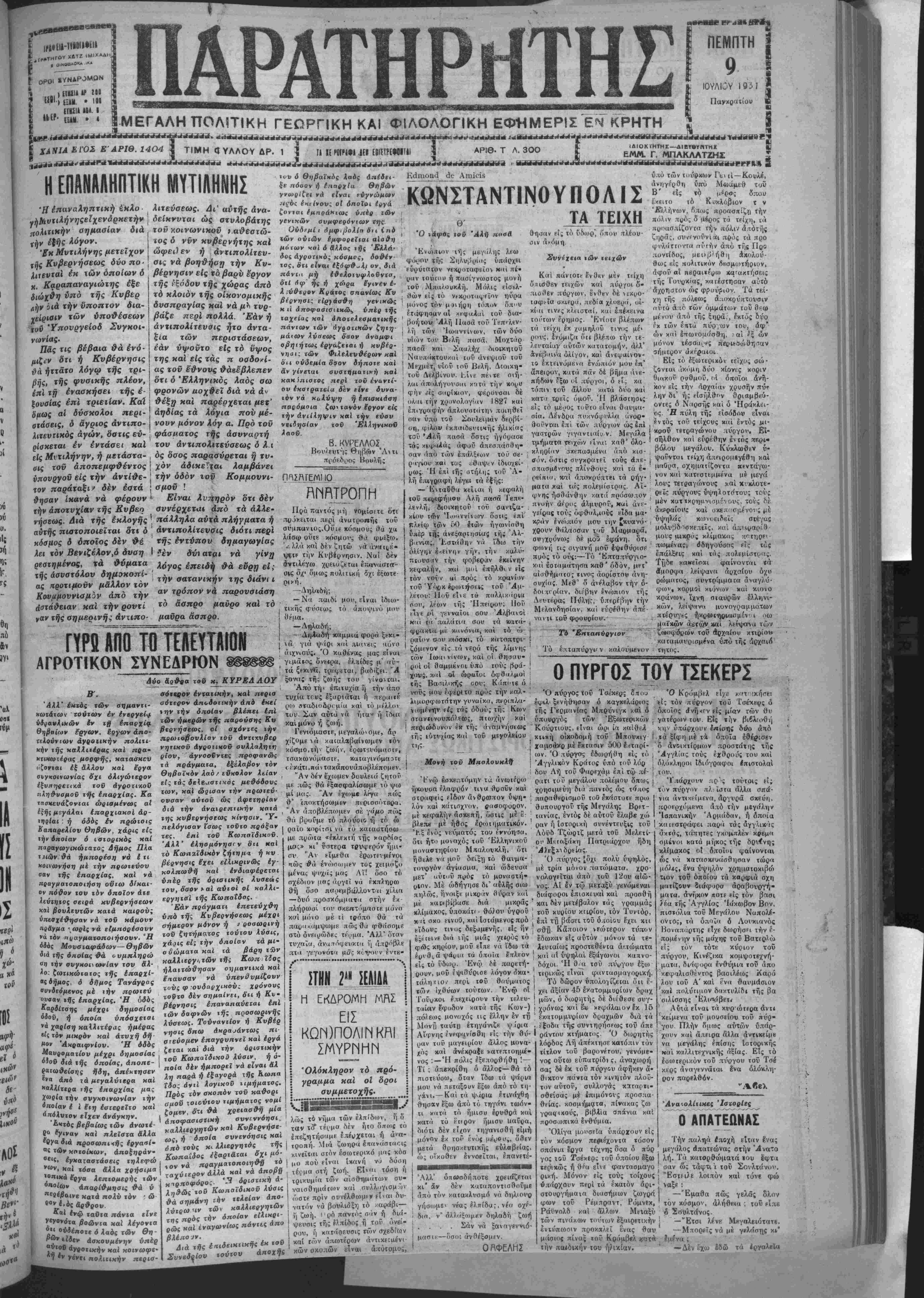 ΜΕΓΑΛΗ ΠΟΛΙΤΙΚΗ ΓΕΟΡΠΚΗ ΚΑΙ ΦΙΛΟΛΟΠΚΗ ΕΦΗΜΕΡΙΣ ΕΝ ΚΡΗΤΗ *