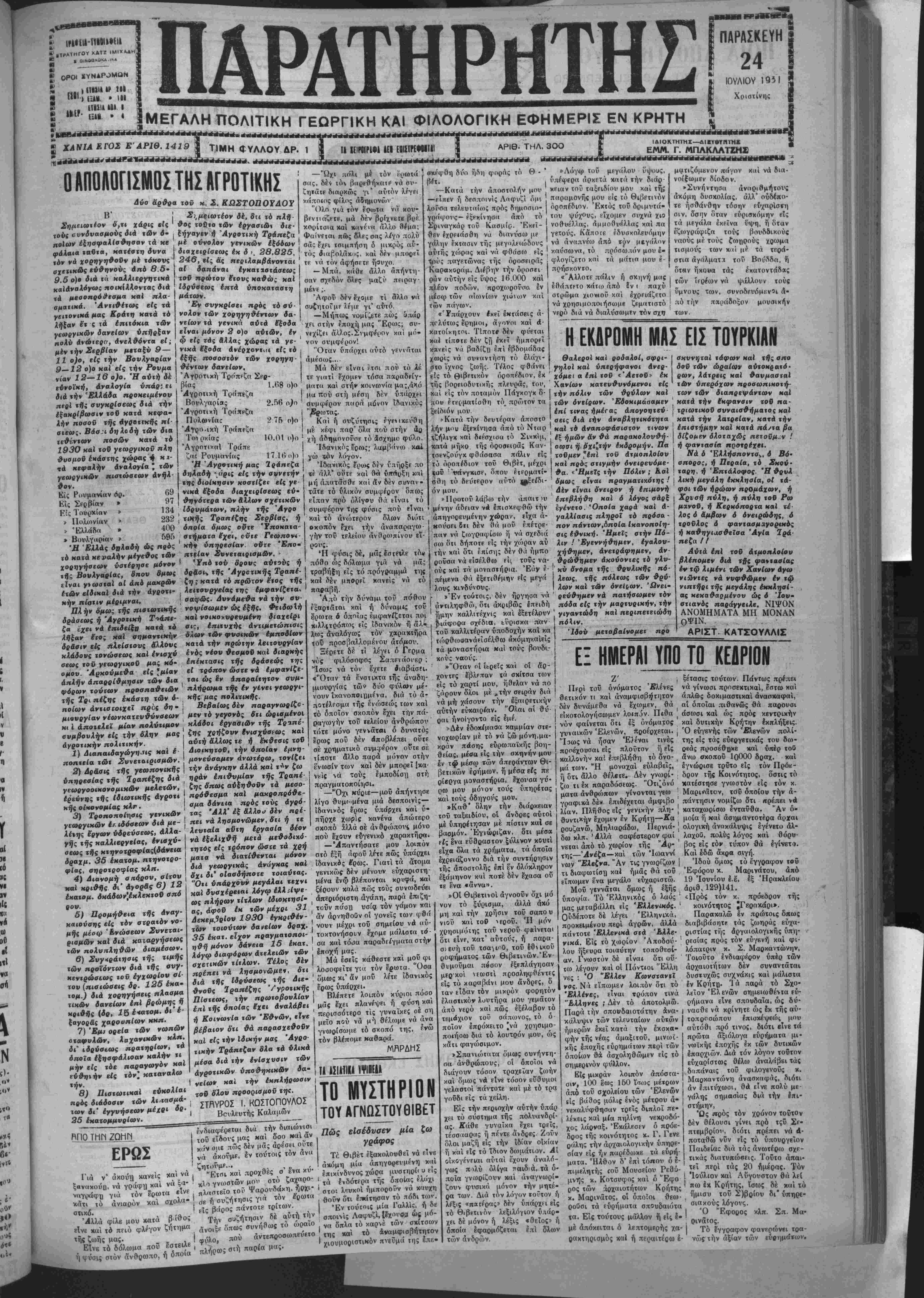 ΜΕΓΑΛΗΠΟΛΙΤΙΚΗ ΓΕΩΡΠΚΗ ΚΑΙ ΦΙΛΟΛΟΠΚΗ ΕΦΗΜΕΡΙΣ ΕΝ ΚΡΗΤΗ