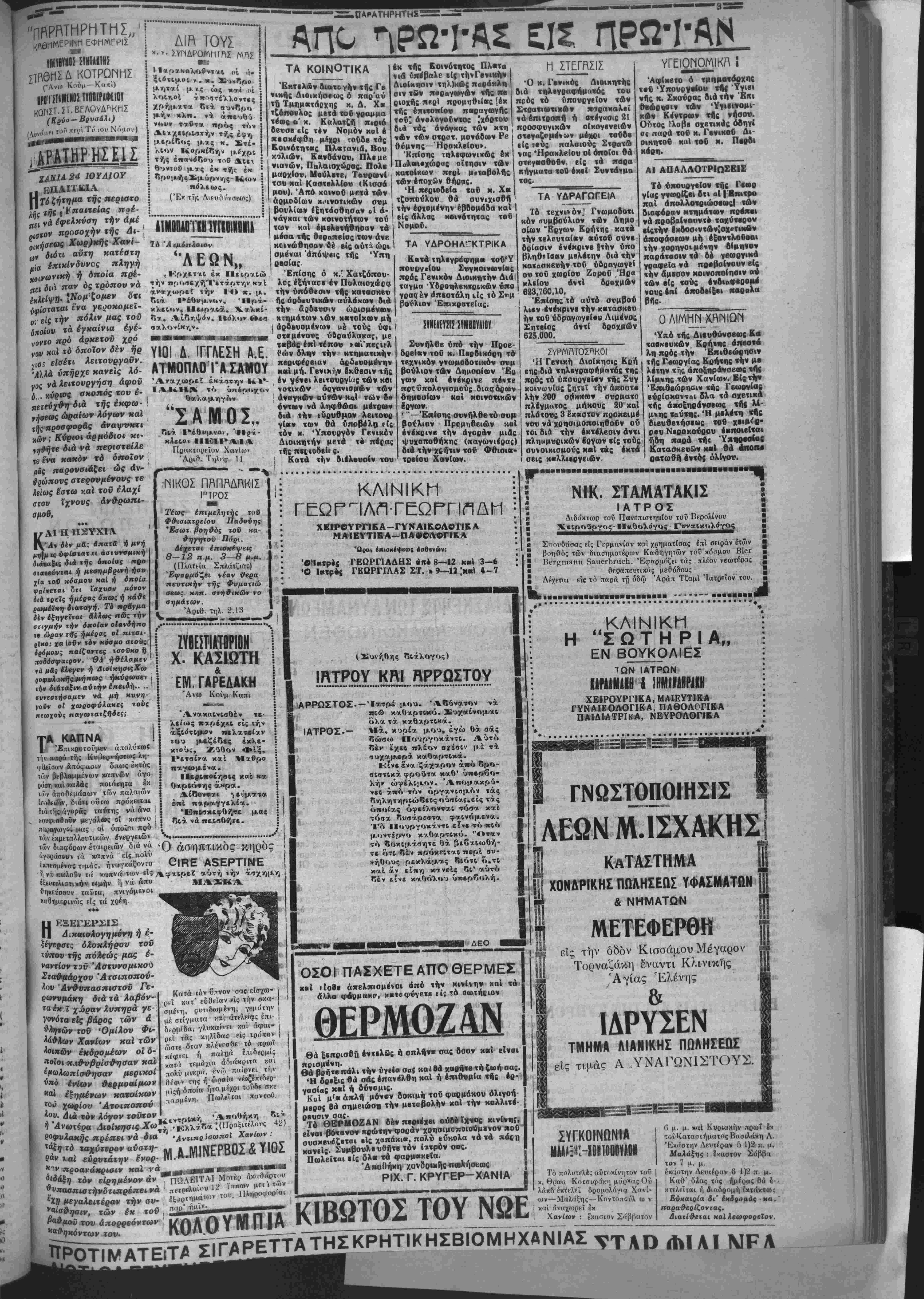 Κοινοτήτων οί μή μ<Χ6ΐ σή μβρον όρκισθέντΐς ώμαιαν των ανωτέρω διατυπωθέντα δρκον. 6)Παρακ«λοΰσ.τάς βίχεΐας Κρητικσς άρχθς δπως άνα γνωρίσωσι τβς κατά χφθ<α συγκροτηθησομένας έπιτροι πάς χαΐ συνεργασθδσι μβτ' ούτω ν διά ττ»ν επιτυχίαν τοΰ έπιδιωχομένου βκοποΰ. Πρός πίστωσιν συνετάγη τό πβρόν παρβκτΐκόν καί ύπογράφβται υπό των κάτω θι αντιπρόσωπον των ένδια φηρομίνων Κοινοτήτων αί τίνες τό πρακτΐΜΟν τουτο παρέδωσαν, είς την παρα- στάντα κ. Διοικητήν τής χω ροφυλοκής Ηρακλείου μέ την παράκλησιν δπως άντ. γραφα τούτου κοινοποιήση είς τάς ένδικφερομένας Κοι νότητνςχαΐ δημοσίας Αρ¬ χάς. , , Οί ουμπρόξαντες άντιπςό σωποι. 1) Διά την Κοινότητα Κρουσώνος Ιωάν. Χουμδς Νικ' Πουλορινάκης. 2) Ανωγείων Χριστ. Σμπώ κος Νικ. Σταυραχάκυς. 3) Διά τόν Κτηνοτροφι- κόν Σύλλογον Ηρακλείου Έμμ. Παντουβάς Νικ. Δε- σποτόπουλος Μύρων £ομα ριτάκης. 4) Διά την κοινότητα Πρι νιά Μύρων Σομαριτάκης 5)"Ανω "Ασιτών Έμμ» νουηλ Μπαντουβάς. 6) Ασιτών Ιωάννης Σταν θάκης. 7)Καμαςών Άντ. Θΐοδω ράκης Έμμ. θβοδωράκης Κων. Α.Φραγάκης 8)Βορριζ(ων Στέφανος Νι Μθλου&άκης Ιωάν. Βιΐσά κης. 9)Ζ«ροΰ Διονύσιος Φρ« γκιαδάκης. 10) Γέργβρης Νι«, Χαιρέ της Έμμαν. Καψάλης Γεώρ Κσστσμάκης. 11)Λοχριάς Έμμ Κρυ·βρυ σανάκη^ Κων. Μανουσάκης, 12) Μπισταγής 'Αστρινός Βουμβουράκης Εύάγγ. Πά τβρος. 13) Πλατανίων Μύρων Αύ τινάς. 14) Ζωνιανών Γεώργιος Παοασύρης Μιχ. Παραού- ρης. ΕΠΕΡδΤΗΣΕΙΣ ΔΙΑ ΤΗΝ ΚΥΠΡΟΝ Είς την Βουλήν των Κοι νοτήτων ύπ'βλήθησαν πολ λαΐ έπβρντήσεις οχιτικαΐ πρός την Κύπρον. Ό έργατικός βουλβυτής κ. Μακ Σαίην ηρώτησε δι ατΐ εγκατελείφθη ή χτημα τατογράφησις τής νήσου ώς καί <άν θ' αρχίση νέα κτη ματογρόφησις. Ό βουλευτάς κ. Χώδσον ήςώτησε πώς ουνίβη νά έ νεογηθουν εφέτος έν Κύπςω 210 μιτιθέσεις διδασκάλων ένώό έχποιδευτιχος νόμος τοΰ 1929 άπβστέρησε τάς χοΐνότηζας χοΰ έλένχου έηί τδν διδασκάλων 4πί τφ λό γωδήθενδτι ένήργουν ςύ ται μίταθέσβις διά λόγους κομμειτικούς. Ό ύπουργός των 'Αποιχι ών ηναγκάσθη νά ομολογή¬ ση, ότι ό νόμος είχβ τεθή είς εφαρμογήν πρός άπστρο πήν τβν συχνών μβιαθέ- σβων, Ό φιλβλεύθερος βουλβυ τής κ. Μάντερ ηρώτησε κα τόπιν πώς δικαιολογείται ή παρι βίασις τοΰ άπορρήτου των έπιστολών έν Κύπςψ, ( δίως δέ έπιστολβν άπβνθυνο μ<«ων πβός τόν έν Λσ»ίΙνω αντιπρόσωπον τής Κνπρια κης έθνικής οργανώσεως. Ό ύφϋπονργός των 'Αποι κιών έπανέλαββ τάς γνω στάς δικαιολογίας καθ* α; αί έν λόγω επιστολαί προήρ χοντο, δήθιν, άπό κομμουνι στά}, Την πρωΐαν ?α %$1ϊ μβ· τ,ήχθη ΐνταΰθα δ πα«ρθΜ(ό· νος «ών Χωοαφακίων, Ού τος είναι ήλιχίας 24 δΐων ξανθίς μβ μύστακα ψαλλι· δισμίνον Μοί έκ ποώχης όψβ ως δεν προδίδει άνθρωπον μέ οίμοβόρα δνστικτα «ά δ- ποΐα δυσιυχώς ούΐος βΐχα χ αί μάλισΐα είς πολύ άνβ πιυγμίνον βαθμόν Λφοΰ ε- βαψβ τάς χείρας «ου βΐς ιό αΓμα ιοΰ γβννήτοοός «ου. ΤυΟ.ον βΐδομβν είς τό κρα· «ηιήριον «ου Β' Άσιυνομι μοΟ τμήμα«ος μόλις δβ Ιπλη σιάσαμβν ούιος δπισθοχώ ρησε φοβηθβίς διόΐι Ναθώ; μας εΐπβ άργόχβρον δταν «όν [έοωΐούσαμβν νά μας είπη ·ά αίτια ώ; ΜαΙ «ήν σκηνήν «ής αίμαιηςας «ρα γωοίας, εΐμβθα δνθςωποι «ού θά «ου κάμωμεν κακό. Καί ένώ βϊχβ 2 καχ' αρχάς «όν νοΰ νάν έχφίρη «οιαύ- «άς κρίσβις κατόπιν ηρνείτο Ιπιμόνως νά μας ομιλήση διά «ά αϊτια «ής «ραγικής πα«ροκ«ον(ας της οποίας ου νος υπήρξεν ήοως θέλων νά παρουσιάση «όν εαυτόν «ου ώς πάσχοντα έκ βλσκίας διό «ι νομίζβι φαίνβΐαι διι ού¬ τω προσποιούμενος ή θά ά ποφύγη «ήν «ιμωρίαν διά την απαισίαν πράξιν «ου ή θά τιμωρηθή συντρβχόνιαιν έλαφρυνιικών.Κατόπιν πολ