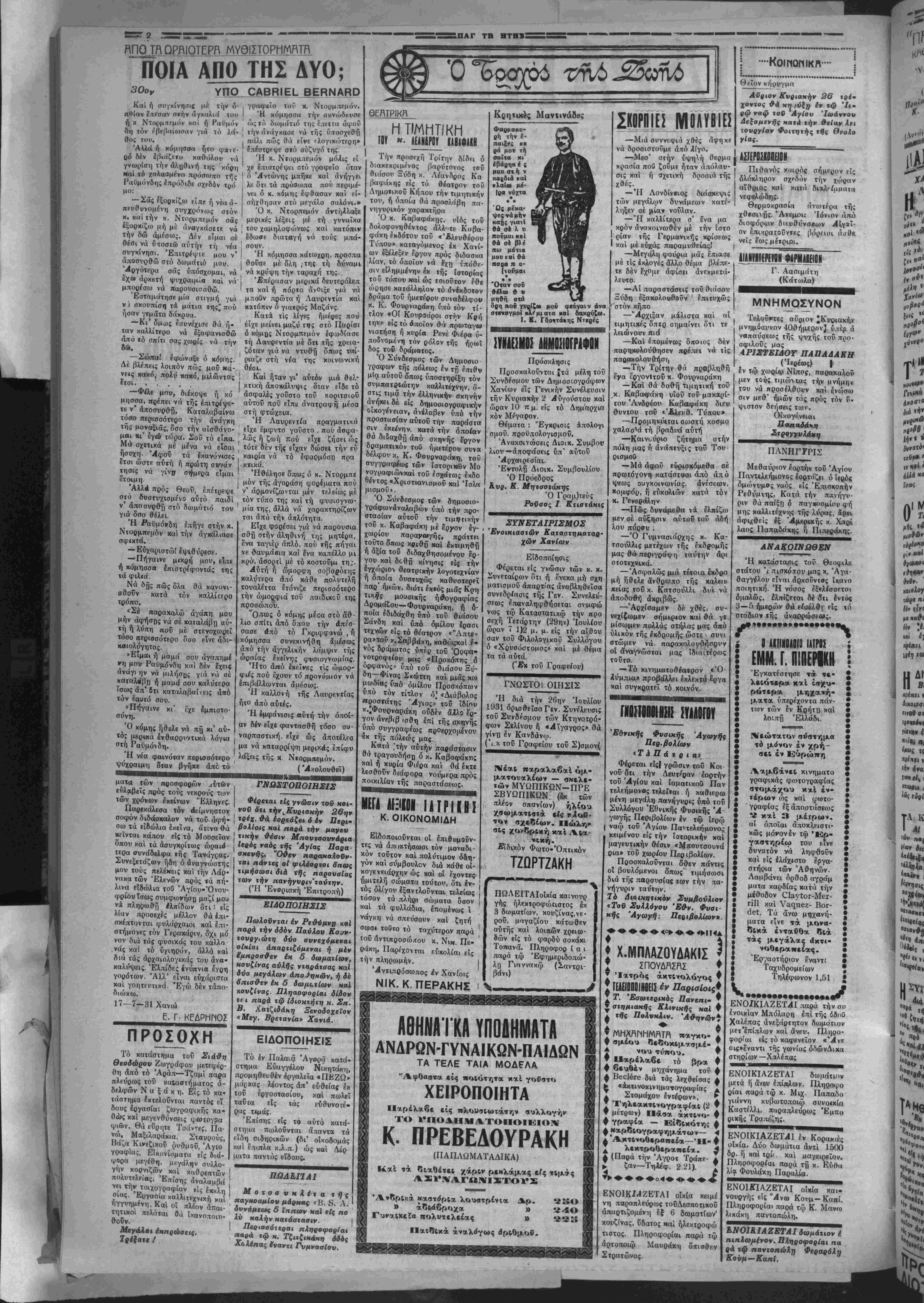 χ<χ1 είς τό Δημόσιον, δεν εμι/φ ήσαν τό ώραι· ^«ράττοντο κύ. έγκλή- όν Λτό παράδειγμ. των ««τα κατά της ζωης .ϊ« ! αυναδέλφων των των «λ- &ν κτηνοτρόφων εϊτε λων νομων, παραδειγμα ίών εωοκλεπτών. | τό οποίον είνε ύπεραξιον Καϊ δέν περιωρίζοντο μψηαεως. Είς τό Σέλινον Εύέλττιδων οϋτε οί νοικοραΐοι οί πρόκριτοι κλπ. άλλ' οΰτε ναί οί ν.απετίΐνιιΐοι τοΰ Αγώνος εδένοντο ν ά στείλυυν σ* αύτη τα παιδία τονς νά τα κάνουν άξιω ματικούς τοΰ ΤΓκτικοΰ Στρα¬ τόν! Διοικηΐής τής Σχολής ήταν ό Γάλλος άντΐθυνΐαγματπρχης ΙΙοζιέ, ό οποίος ύ.ιέβαλε στήν Και οεν περι»»!/»»»"^·1" γ··—ν------» — -» ιιΐ'ΐ,ιε, ο οποίος υ.ιεραΑε στην , ινΗΜματα ταυτα μό υφίσταται νομίζομεν ενας Κυβέρνησι την ϊδέα νά προσελ- ΧΛ ,ανοισ έδώ άλλά έ- σύλλογος κτηνοτ όφων κύσονν μάθητε; άπύ τα ύπόδου Χάμβανον μεγάλας δια- ατάαεις, πολλάκις δέ έξολοθρεύθησαν ΗαΙ δλό- χΐηροι οικογένειαι έκ των λόγων τούτων. ΟΙ κτηνο- τρόφοι ιιας ήτο καιρός πλέον νά άντιληφθοΰν, ότι επρεπε διά παντός τρόπον νά χάμονν τό πρώτον βημα διά την κα¬ έ ζωοχλο πρώτον βημ η ταπολέμησιν της ζωοχλο* πής διά νά προατατεύ- οΰιω τόσον την ζωήν η πρώτον βημα εγένετο. "Εμπλεοι χαράς τούτο χαιρετίζομεν κτηνοτ δ οποίος πρέπει αύτός νά άναλάβτ) την διοργά- νωσιν τοιούτων δρκωμο σιών των κτηνοτρόφων όχι μόνον της περιφερεί¬ ας τού αλλά και των λοι- πών περιφερειών. Άπευθυ όμεθα πρός τόν Πρόεδρον και τό Δι¬ οικητικόν σννβούλιον τού Σύλλογον τούτον και τούς καλούμεν νά κινηθοΰν διότι ο·ίτω μόνον θά άν ταποκριθοΰν είς την πρώ την καί κυριώτερον χρέωσίν ι ών έναντι χύσονν μαθητές άπύ τα ύπόδου λα μέρη. "Κτσι οί πρώτοι άπό- φοιτοι τής Σχολής των Εύέλπι δι»ν ή ΐαν νέαι άπό την Σμι'ρ νη, τή Χίο κλπ. παιδία 'Ελ- λήνων πατριωτών πού ρρχόν- ταν μ' ένθουσιασμό νά υπηρε τήσουν το Έλ,εύθερο Κράτος. Στό μεταξύ οί Βαυαροί—άξιω ματικοί καί στρατιώτες—ιΐρρωσ τοΓσαν άπό επιδημίες καί πέ θαιναν. Έδημιουργήθησαν με γιίλα κενά στό στρατό, οί μοσ- χομάγκες δέν εφαίνοντο πρόθυ- μοι ν ά ύπηρετήσουν καί ή Βαυα ρική Άνΐιβασιλεία άναγκάστη χε νά έφαρμόσει την στρατογογία. πιίντοτε μαζύ μου ιον λητα κ«ί τόν ι,έφόνενσα. Προ- τού τραπδ είς ρνγήν άφήκα τί) περίστροφον πλησίον τοΰ πτώ ματος είς την κλίμακα τοΰ σ<δη ροδρομικον σταθμοΰ τ«ιΰ Σατώ Ρούζ. Κατά τόν παρελθόντα Απρί¬ λιον πράγματι δ άβτυνόμος τής συνοικίας Κλινκινκούρ ιΐχε δια- ΐαχθή νά διβξαγάγη άνακρίσεις διά τύν μυστηριώδη θάνατον τοΰ Σούσλωφ 6 όχ οΐος είχεν ά- πασχο?ήσει άρχετά τότε την δή ιοσίαν γνώμην. Ειχον γίνει ερευναι είς τή ν Λίλλην, εί την κατοικίαν τοΰ | Ρώσσου πρόσφυγος, ό οποίος ε- ζημοναχικον χαΐ περίεργον βίον, εΐχε γίνιι δέ πολύς λόγος καί διά μίαν βόμβαν, ή όποΐα ανεκαλύ¬ φθη ιί; την κατοικίαν τού. Άλλ' ή άνάκρισι; δέν απέδωκε «(«νέν θετικόν άποτέλ.εσμο Ή Όλγα Στεφανία Γχορσα κώφ Γιρνήθη νά παράσχη οίονδή ποτε αλλο στοιχείον περί των συνθηκών, υπό τος οποίας διε- πριίχθη τό εγκλημα. Έπ' αυτής δέν ευρέθη κανέ- να οημεί.υμα άπό τΰ οποίον θά ήτο δυνατή ή ανεύρεσις τής κα- τοικίας της. Άδυνατών νά έξα· κριβώστι άν πρόκειται περί εγ- κληματίου ή περί παράφρονος 6 Οστυνόμος την παρέπεμψεν ρίς την Εισαγγελίαν, ή όποία θά συνϊχίσιι τάς άνακρίσεις· ιά ς μ τί.οα νά εκτελέση δλας τάς σν στάσπς των «νοτίτων ύγειονολό γων της έποχήςθά έπρεπε νά ρ- χη τουλάχιστον δίπλωμα ϊατρι- κής ή φαρμακευτικής άπό τό Πανρπιστήμιον. Ή άλήβεια δ- μως είναι ότι πολύ ολίγοι δι- πλωματοΰχοι τοΰ Πανεπιστημί¬ ου έχουν παιδία καΐ εισί αί συμ βουλαί τ