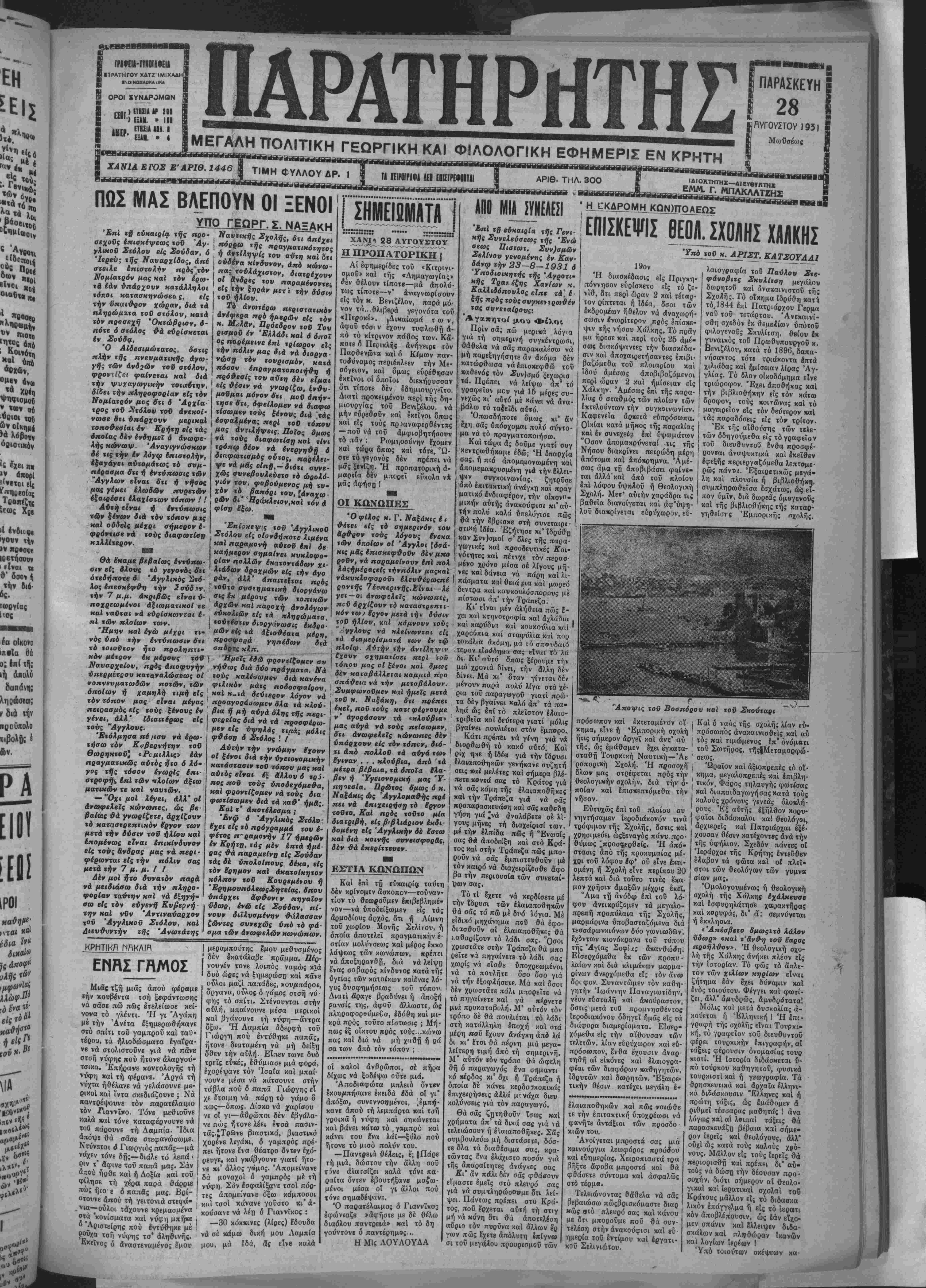 | ΧΑΝΙΑ ΕΓΟΣΕ'ΑΡΙΘ. 1446% ΤΙΜΗ ΦΥΛΛΟΥ ΔΡ. 1 |
