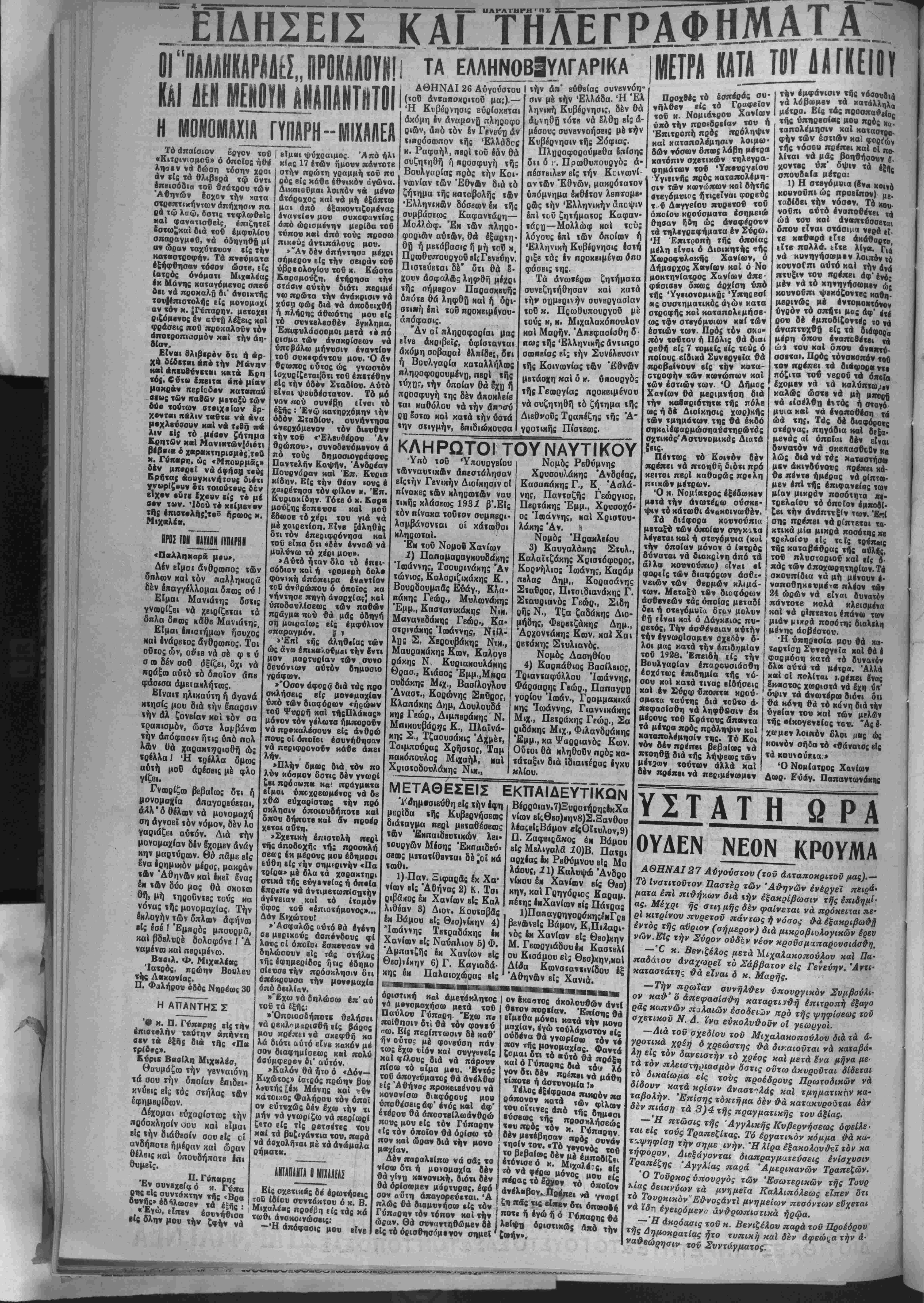 ΑΘΗΝΑΙ27 Αύγουστον (τοΰ άΛταποκριτοϋ μας).—