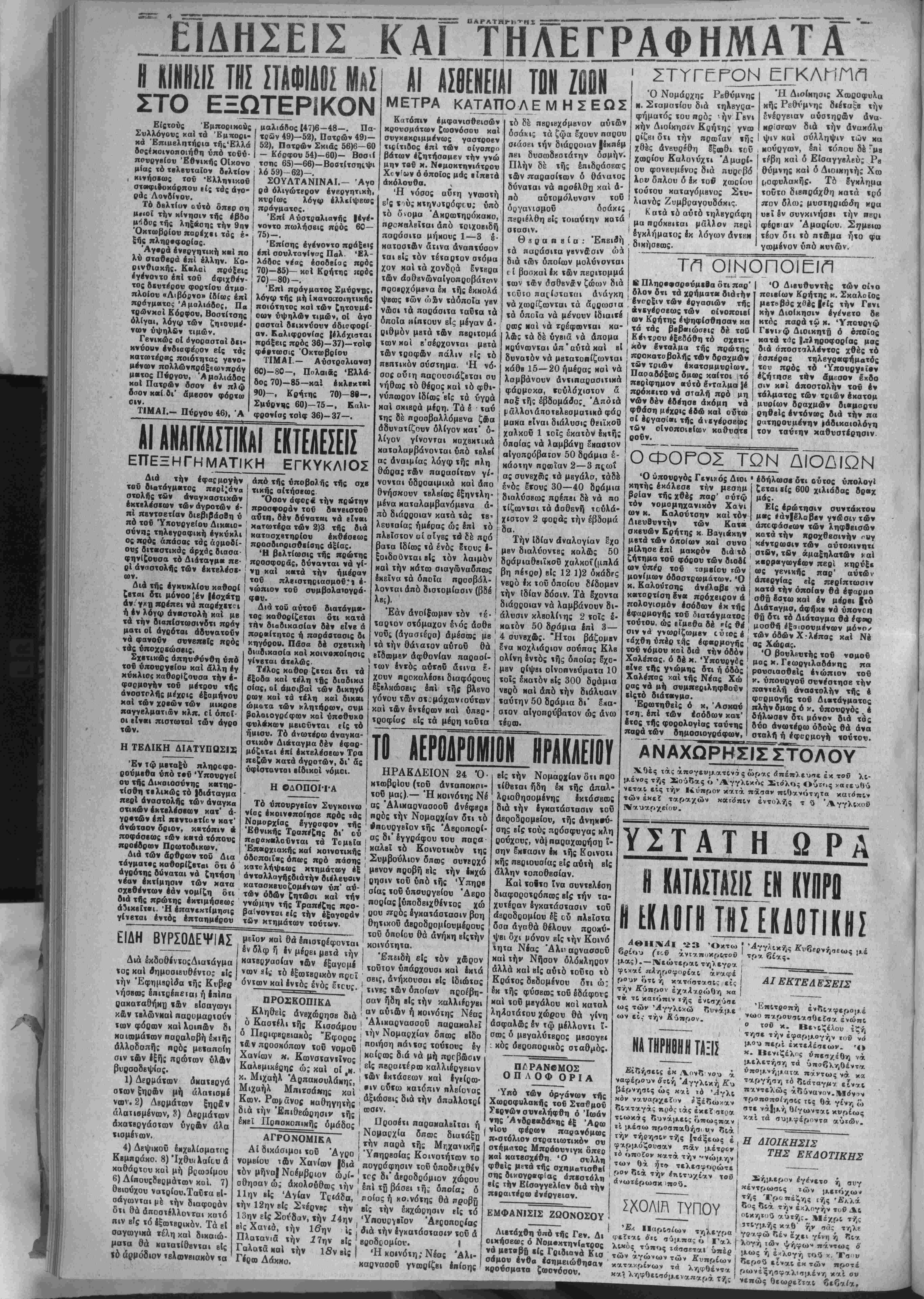 τροποποίησις τις θά γίνη <ο ατε νά|μή Ο/γωνται κυρίως καί τα συμφέροντα αυτών. Η ΔΙΟΙΚΗΣΙΣ ΤΗΣ ΕΚΔΟΤΙΚΗΣ ΤΥΠΟΥ | '-λ Παρισίων τηλεγρα φεΐται ότι σύιι.πας ό Γαλ λΐκός^ τύπος χάσσβταΐ υπέρ των αγώνων των Κυπρίων κατακρίνων τα ληφθέντα ί λθό Σήμερον εγένετο ή «έντρωοις των μετόχω« τής Τρο—έζης [ής '£λλά δος διά την εκλογήν τού Δι οΐκητοΰ αυτής. Μέχρΐ τής ϊτΐγμήςκγθ ην σας τηλε γί'αφώ δέν έχει γίνη ή δι-α λογή των ψήφω* πάντως ό' μως η εχλογή τού κ. Τσοί» δεροΰ είναι έκ των ημοχέ ρωνέξηβφαλ«σμένη καί αν νεπώς Ο ^^Ι