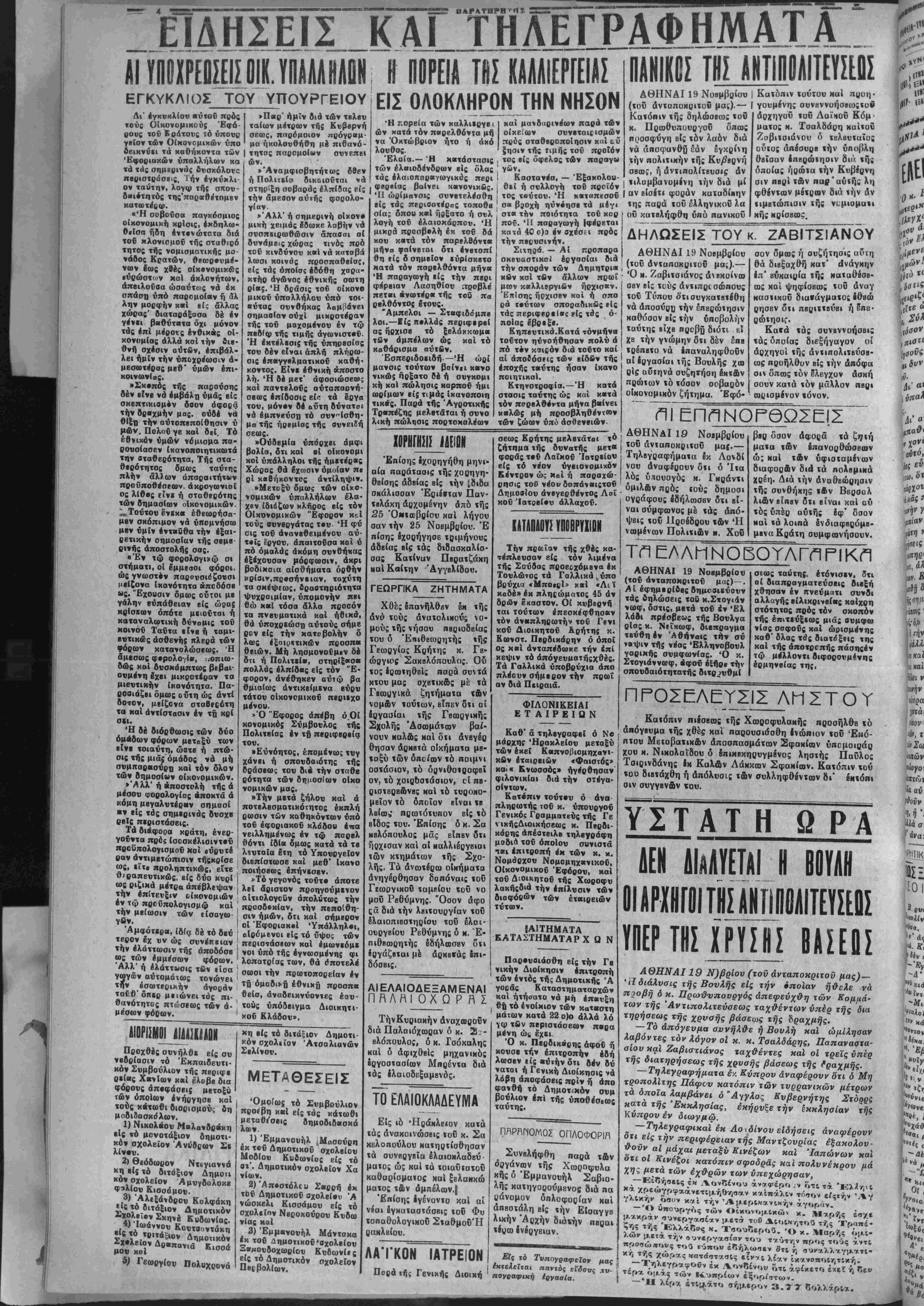 ΑΘΗΝΑΙ 19 Ν)βρίου (τοΰ άνταποκριτοΰ μας)—