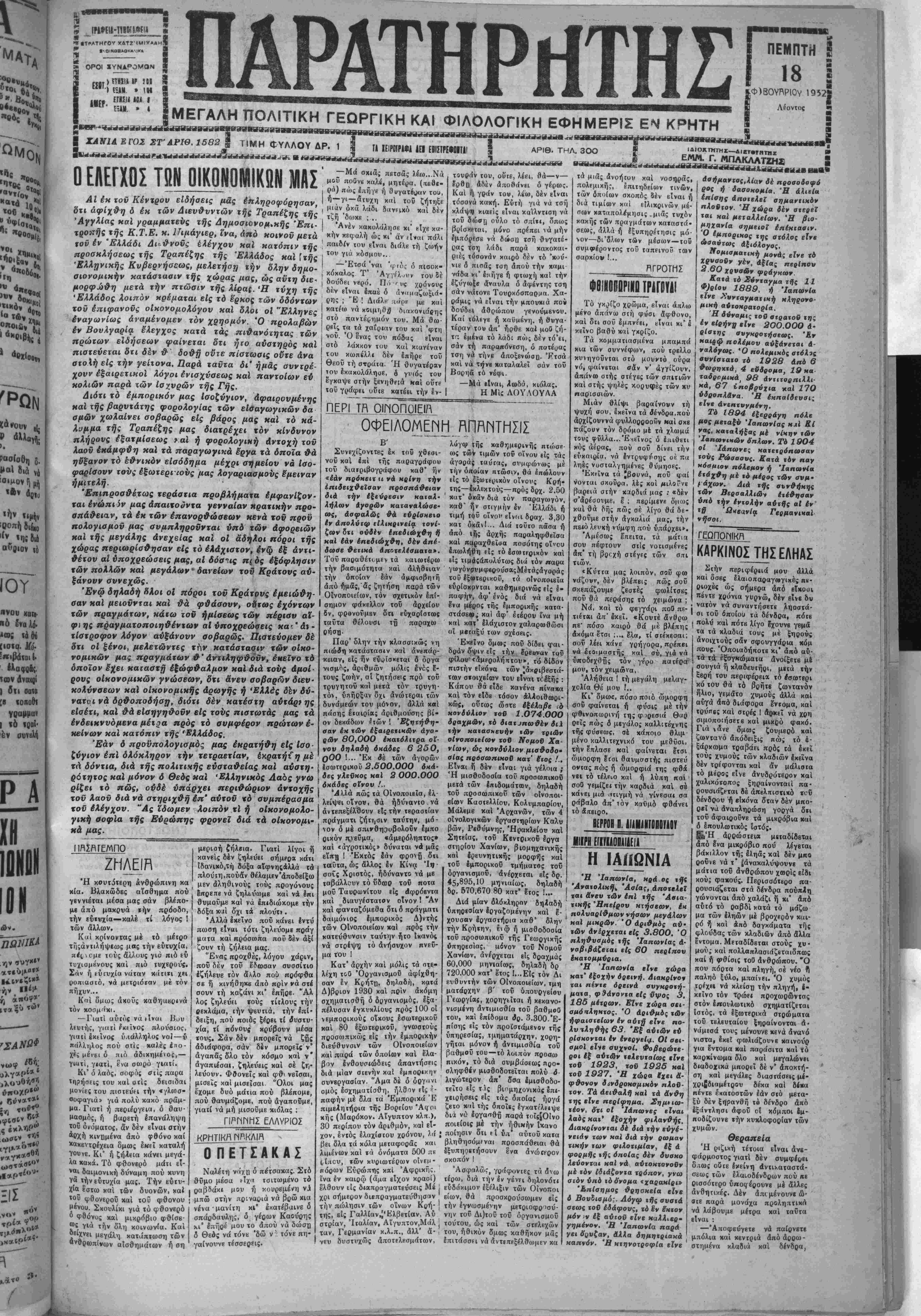 Ι ΧΑΝΙΑ ΕΓ02 ΣΤ ΑΡΙΘ. 1582 | Τ|ΜΗ ΦΥΛΛΟΥ ΔΡ. 1