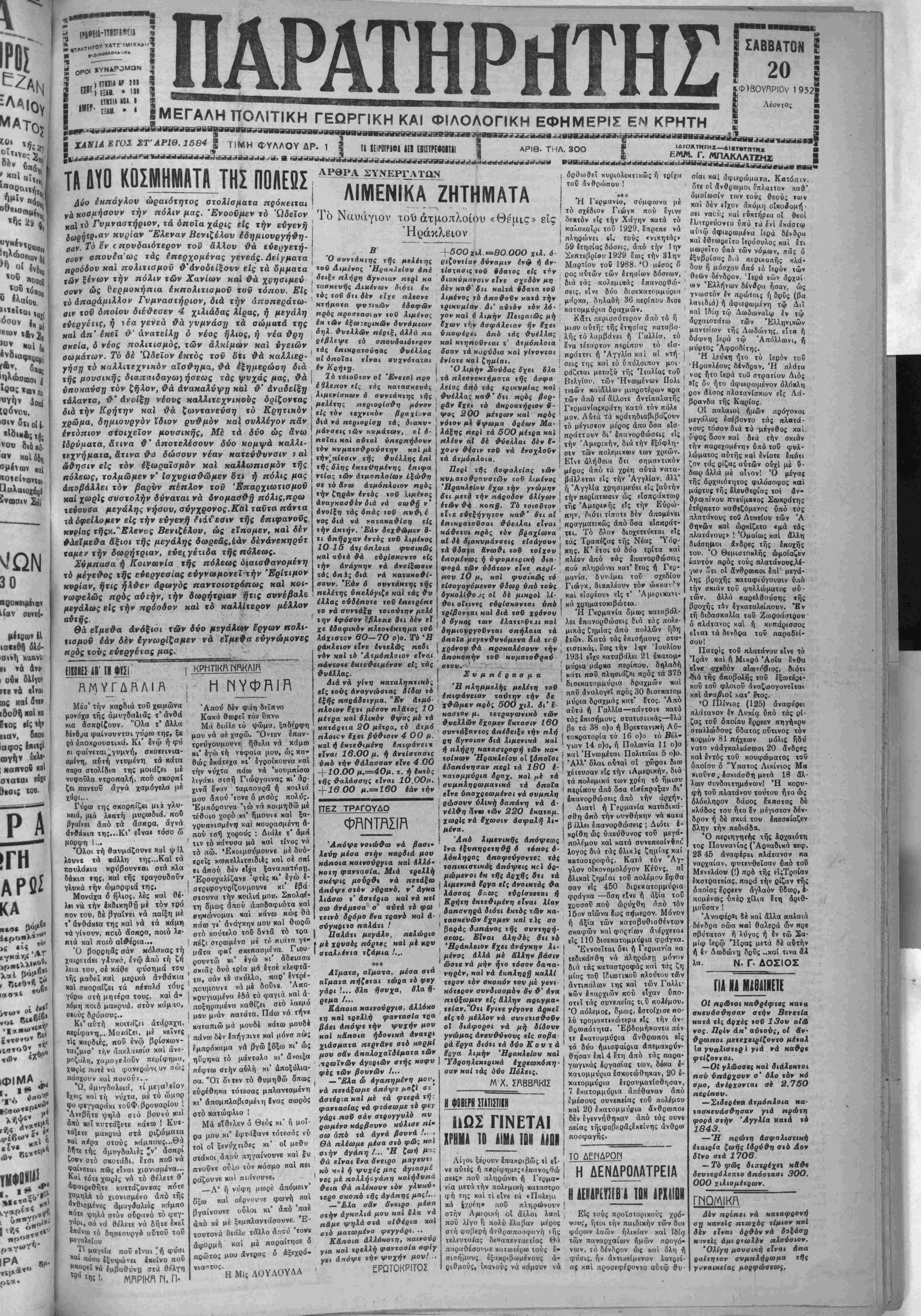 ϊ ™ · ΙΜΕΓΑΛΗ ΠΟΛΙΤΙΚΗ ΓΕΩΡΓΙΚΗ ΚΑΙ ΦΙΛΟΛΟΠΚΗ ΕΦΗΜΕΡΙΣ ΕΝ ΚΡΗΤΗ
