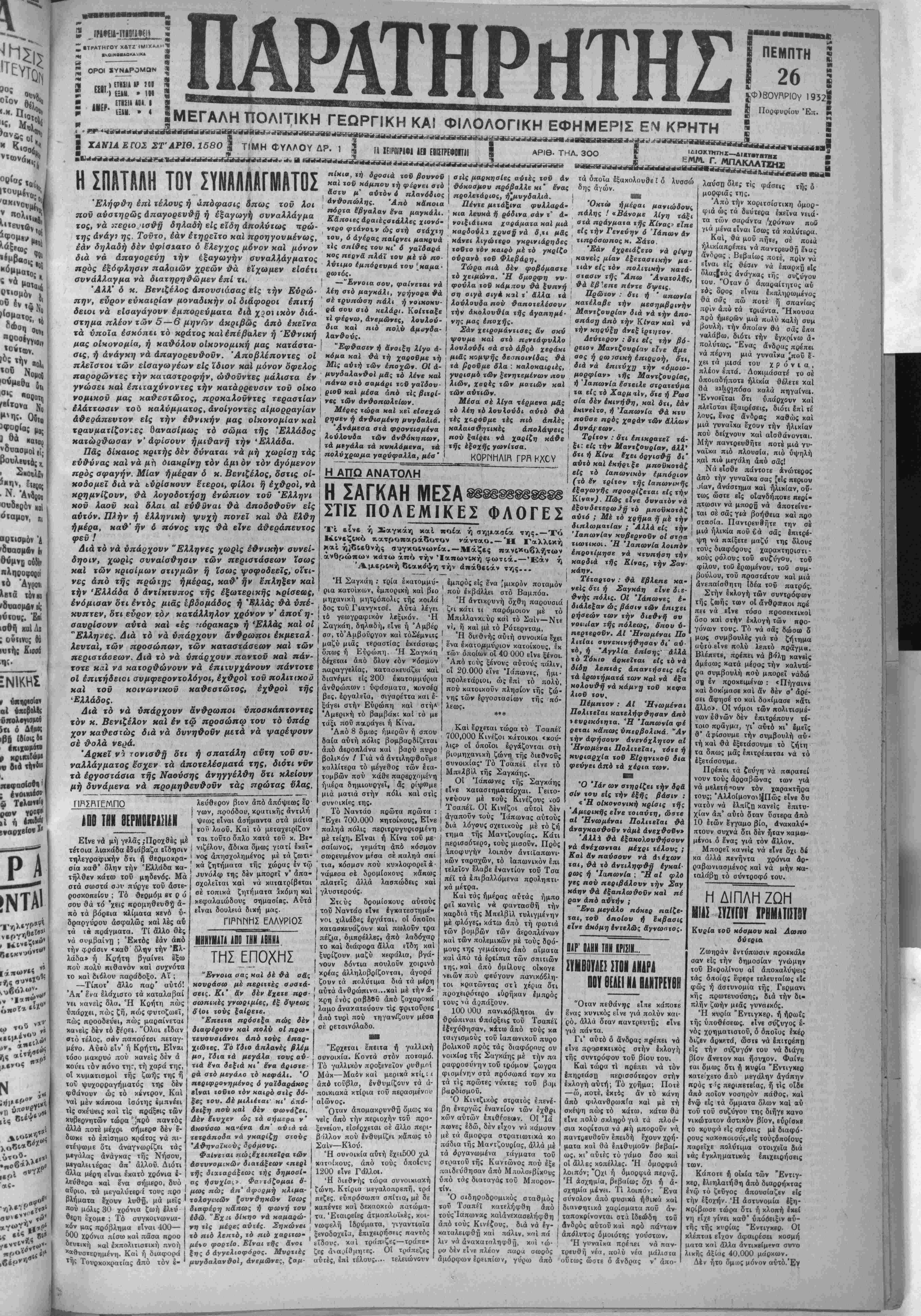Ή εφημερίς μας δέν εξεδόθη χθές διότι λόγω