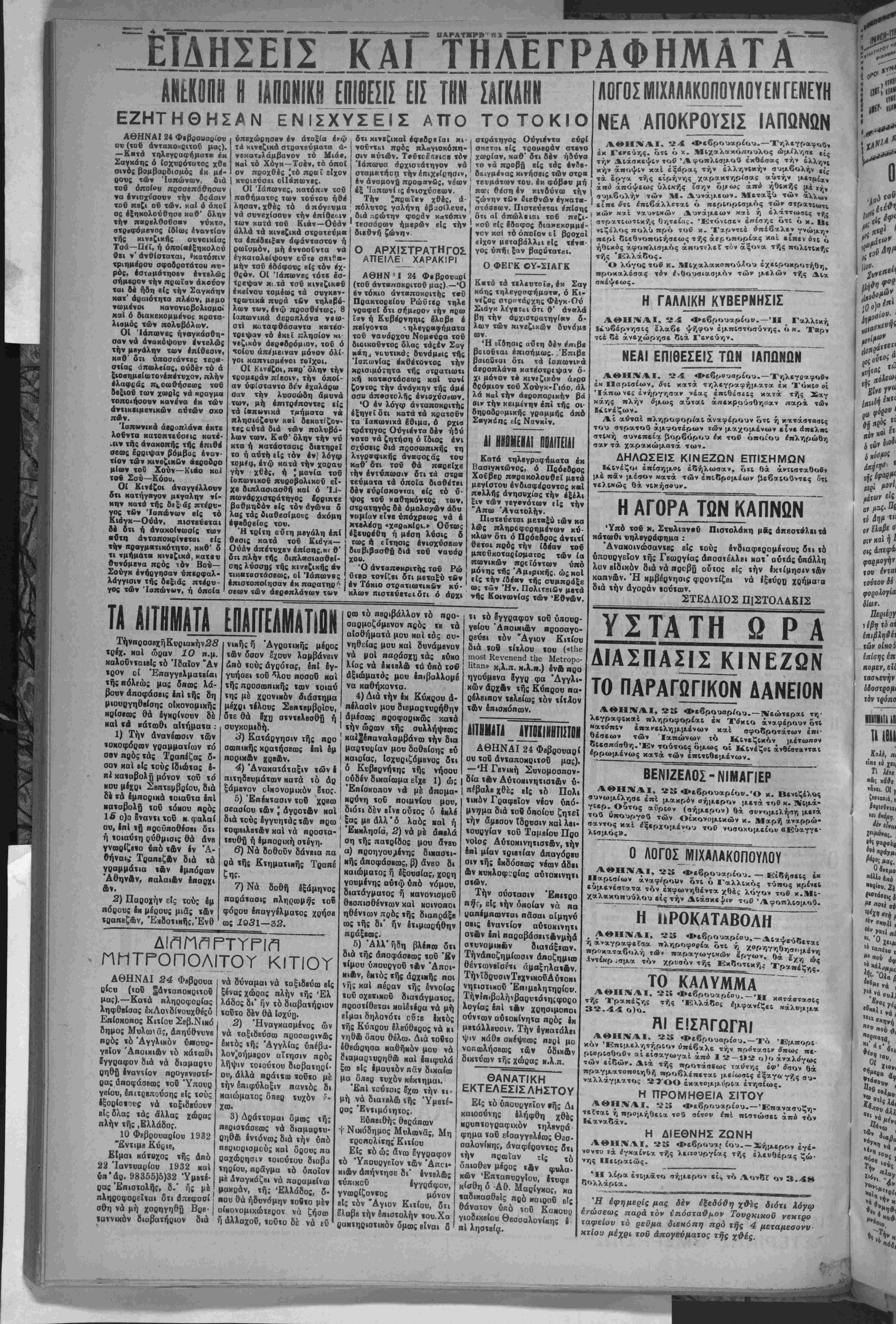 ΑΘΗΝΑΙ, 25 Φεβρουαρίου.—Νεώτεραι τη¬
