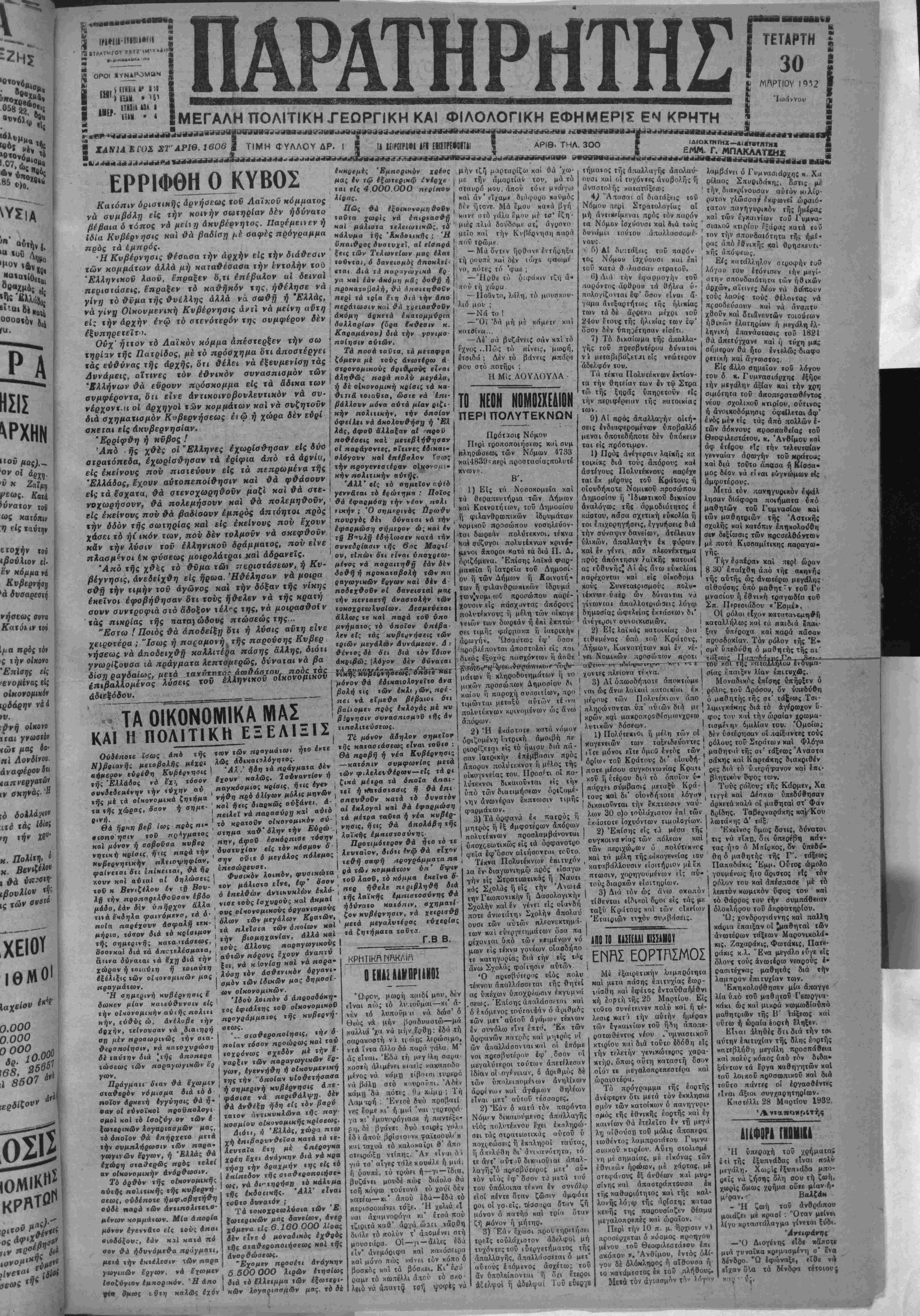 <ώ*· μαί δα· ηϊ Λονδίνον άναφερον ί»< ιν Γχειοϊ Ιαχεί·» 0.000 0.000 °°ΟΟ1 ΤΕΤΑΡΤΗ | ΑΛΗΡΤΙΟΥ ΙΟΛ2 Ιωάννου Ι 5 ΙμΕΓΑΛΗΠΟΛΙΤΙΚΗΓΕΩΡΠΚΗ ΚΑΙ ΦΙΛΟΛΟΓΙΚΗ ΕΦΗΜΕΡΙΣ ΕΝ ΚΡΗΤΗ ΧΑΝΙΑ ΚΡΟΣ ΣΤ ΑΡΙΘ. 1606 Ι ΤΙΜΗ (Τ ΥΛΛΟΥ ΔΡ. 1 1 Μ ΙΕ.Κη>ΙΜ ΛΡΙ ίΜΗΚΙΗιΐΊ ϊ ΑΡΙΘ. ΤΗΛ. 3ΟΟ