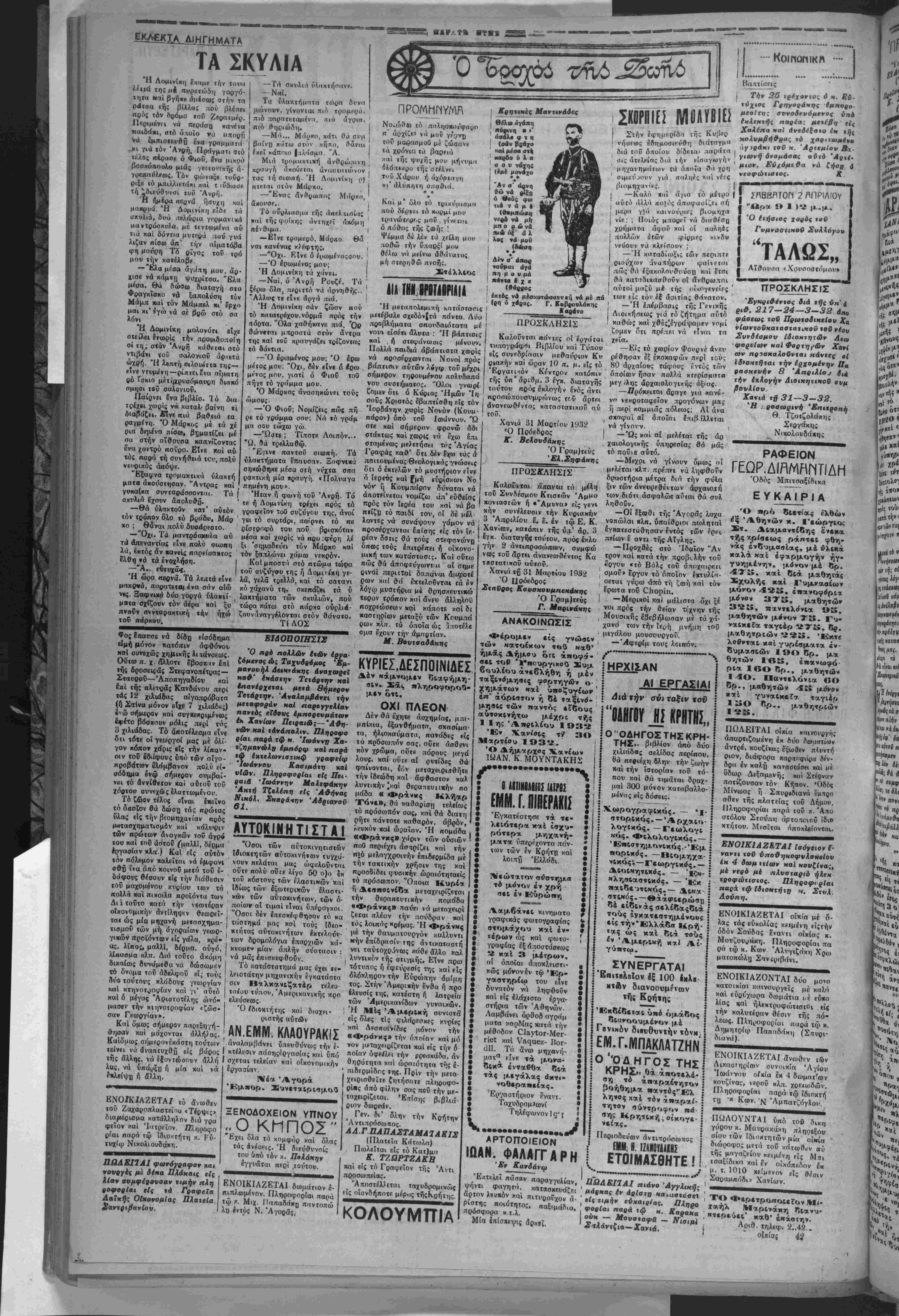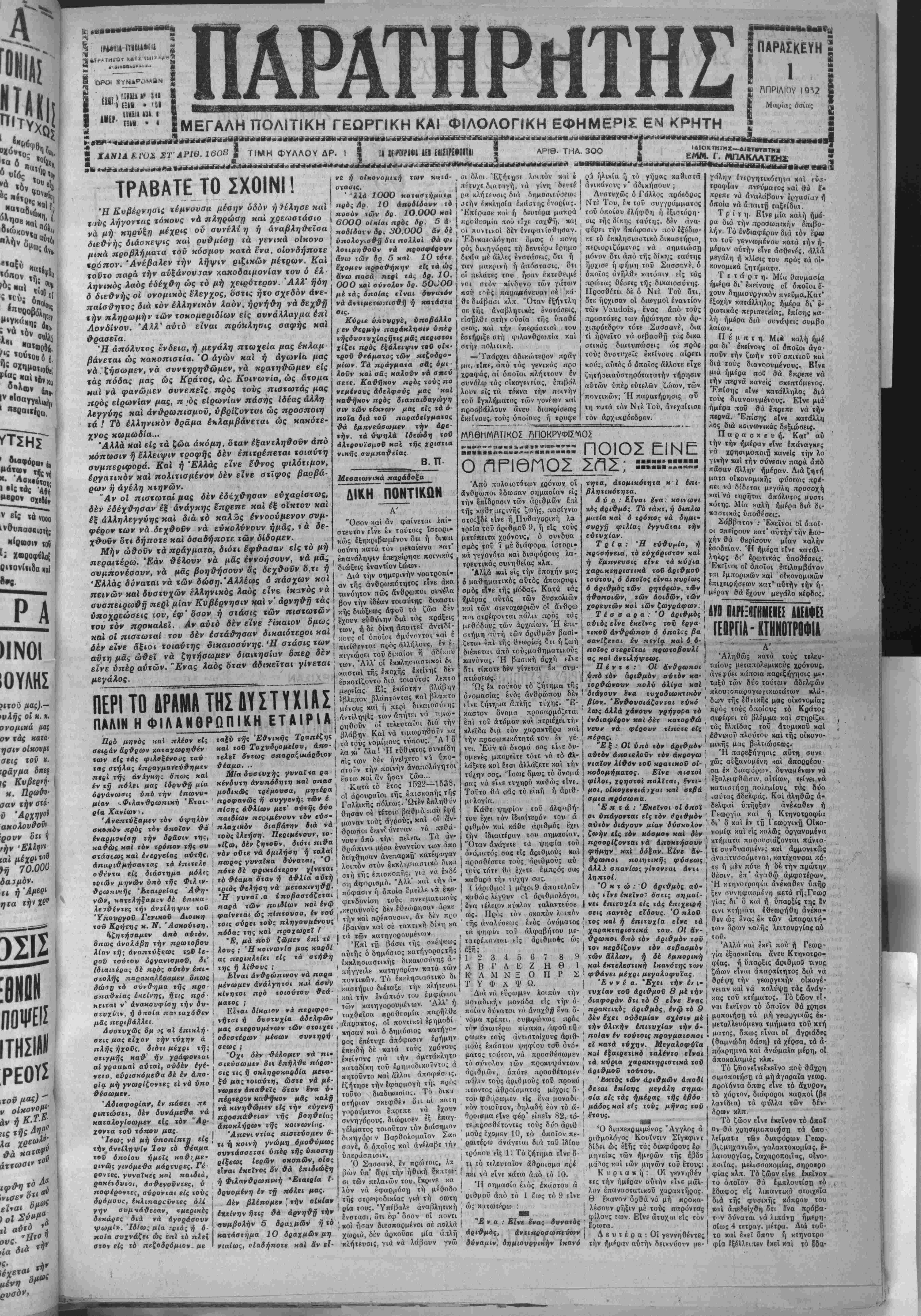 1 'λλά 1ΟΟΟ *αχαβτήμ<χτα πρός Δρ 10 αποδίδον* τό ποσόν των δρ 10.000 καί 6000 οικίαι πρός δρ. 5 ά ποδΐδοχ ν δρ. 3Ο.ΟΟΟ &ν δέ ύπολογισθ^ ό'τι πολλοί θά φι λοτιμηθούν νά προσφέρονν άνω των δρ 5 κπί 10 τότε έχομεν ηρρα&ήκην είς τα ώ; άνω πασά ηερΐ τάς δρ. 10. ΟΟΟ χαί σύνολον δρ. 50000 με τάς οποίας είναι δυνατόν νά άντιμετωπισθή ή κατάστα βις. Κύριε ύπονργέ, ϋαοβάλλο ( εν θερμήν παράκλησιν ύπέβ τήςδνσιυχίαςήτιςμάς περιστοι χίζει πρός έξάλειψιν τοΰ οίκ- χρού θεάματος των πεζοδοο- μίων Τα πράγματα σάς δμι- λοΰν καί σας καλονν νά βπεύ σετε. Καθήκον πρός τούς πό νεμένονς άδελφονς μας ααΐ καθήκον πρός διαπαιόαγώγη σιν των τέκνων μας είς τα ό- ποία διά τοΰ παραδείγματος θά έμπνεύσωμεν την άρβ- την, τα νψηλά ίδεώδη τού άλτοονϊσμού κοΐ τής χριβτια νίκης σνμτταθείΌς ___________ Β. Π· ϋΐεσαιωνικά παράδοξα ΠΟΝΤΙΚΩΝ ΑΙΚΗ Α' απί¬ είνε υπέρ αυτών. μεγάλος. λαός δταν άδικεϊται γίνεται ΠΕΡΙ ΤΟ &ΡΑΜλ ΤΗΣ ΑΥ Σ Τ Υ ΧΙΑ Σ ΠΑΛΙΝ Η ΦΙΛΑΝΘΡΩΠΙΝΗ ΕΤΑΙΡΙΑ "Οσον καί άν φαίνεΐαι στευτον εΐνι εν τούτοις ί( «ώς εξηκριβωμένον διι ή διχια οσύνη κατα τόν μεταίωνα κατ' επανάληψιν επεχείρησε ποινικάς διώξεις εναντίον ζώων. Διά την σημερινήν ■νοοτροπί¬ αν τής ανθρωπότητος είνε ακα τανόητον πώς άνθρωποι συνελα βον την ιδέαν τοιαύτης δικαστι κης διώξεως άφοϋ τα ζώα δέν έ'χονν ευθύνην διά τάς πράξεις των, ή δέ δίκη άπαιτεΐ άντιδί- κους οί δποΐοι αμύνονται «αί ε πιτίθενται πρός δλλήλυνς, έν Ι- πιγνώσει τοϋ δικαίοι ή αδίχυυ των. Άλλ' οί εκχλησιαστικοί δι καστοί τής έποχής Ιχείνης δέν εσκοτΐζοντυ διά τοιαύτας λεπτο Είς έκαστην βλάβην II ύδ μηνός καί πλέον είς σειράν &ο&ΐΐ(ον χαταχωρηθέν των είς τάς φιλοξένοος ταν τας στήλας έπραγμανεύθημεν πεβί τής άν1γκ;;ς όπως καί έν 17/ πόλει μας ίδρυθ^ μία οργάνωσις υπό την έπωνν- μίαν < Φιλανθοωπική Έ»αι- ρία Χανίων >.