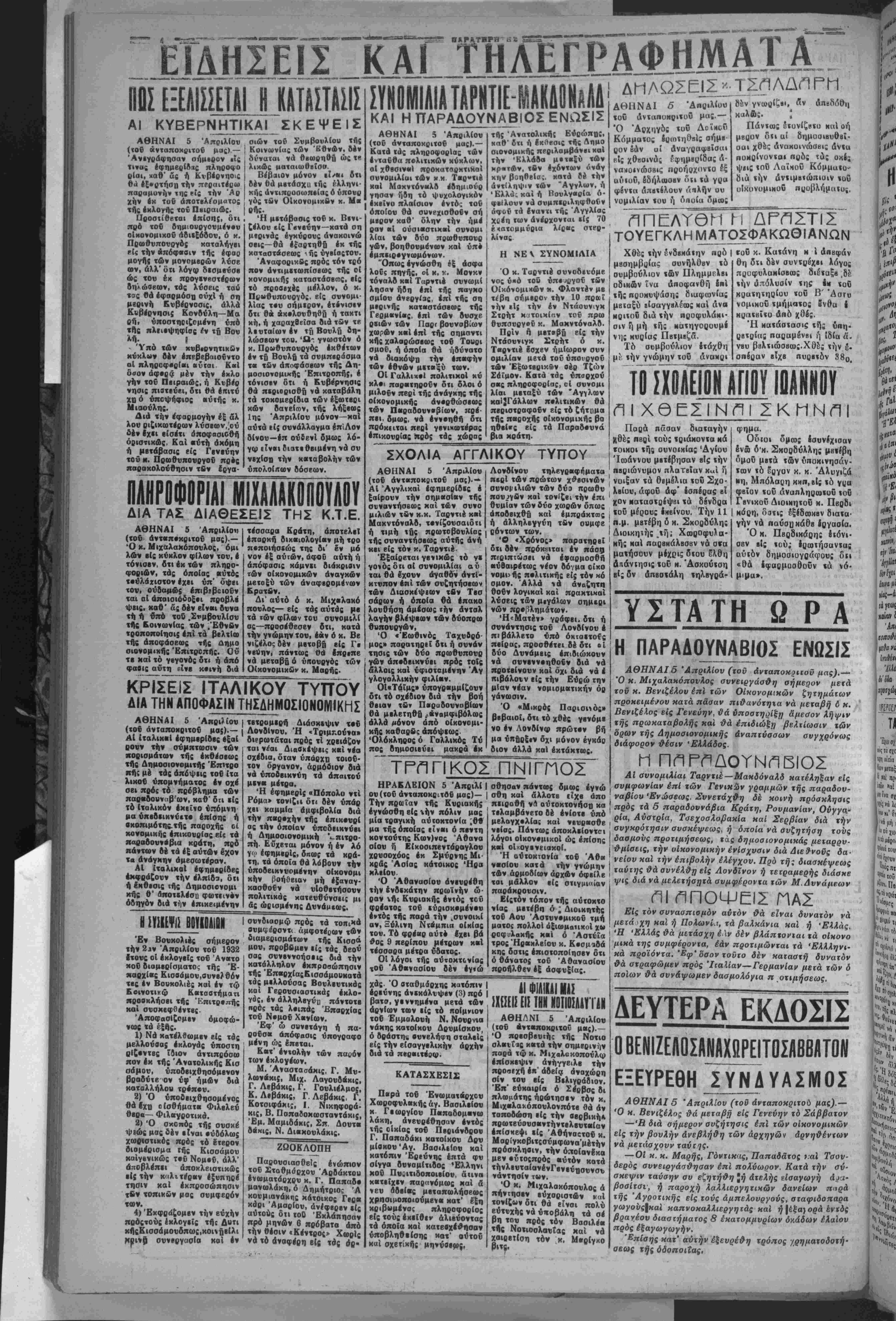 ΑΘΗΝΑΙ 5 Απριλίου (τοΰ άνταποκριτού μας).—