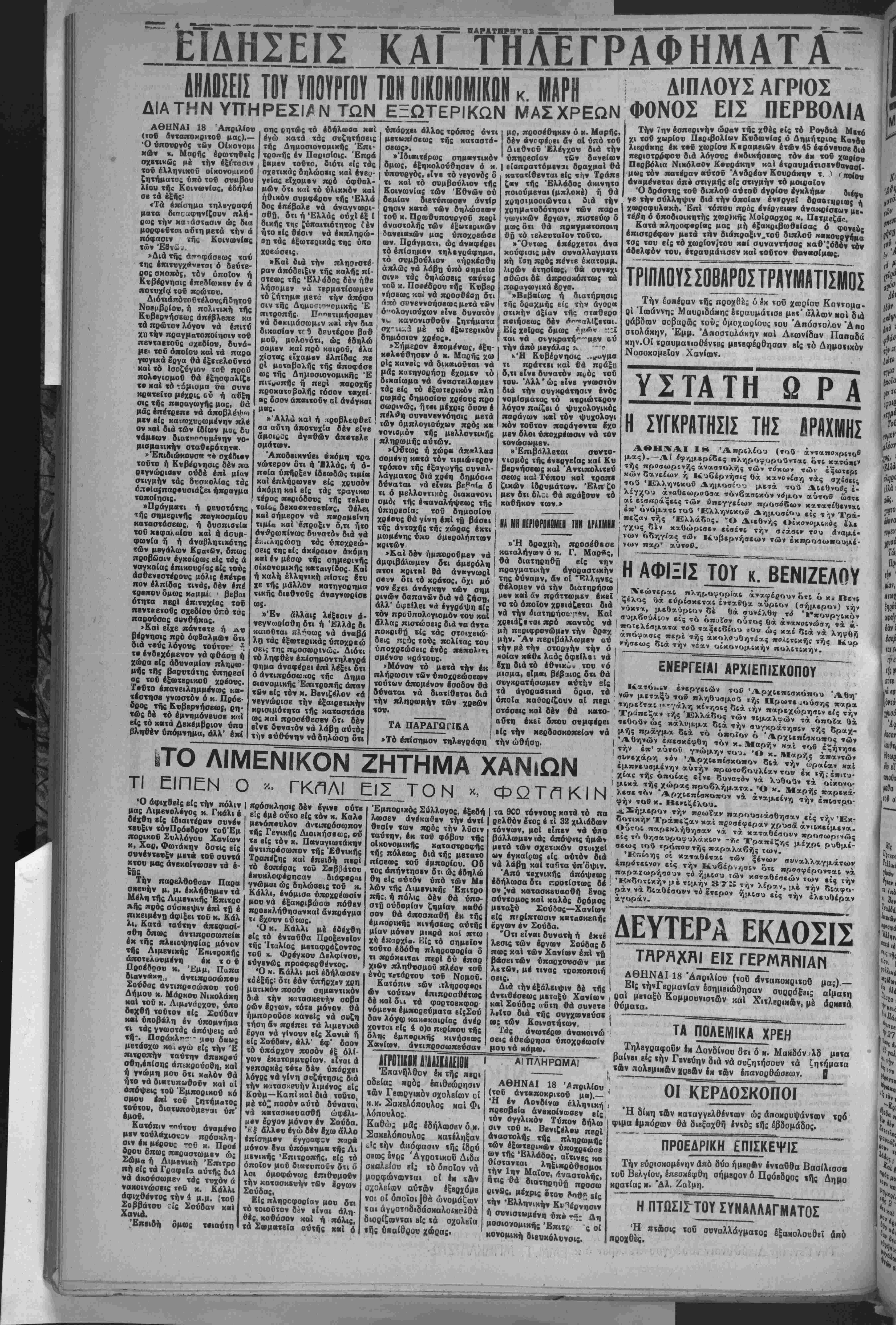 ΑΘΗΝΑΙ 18 Απριλίου («ού άνταπσκριτο<>
