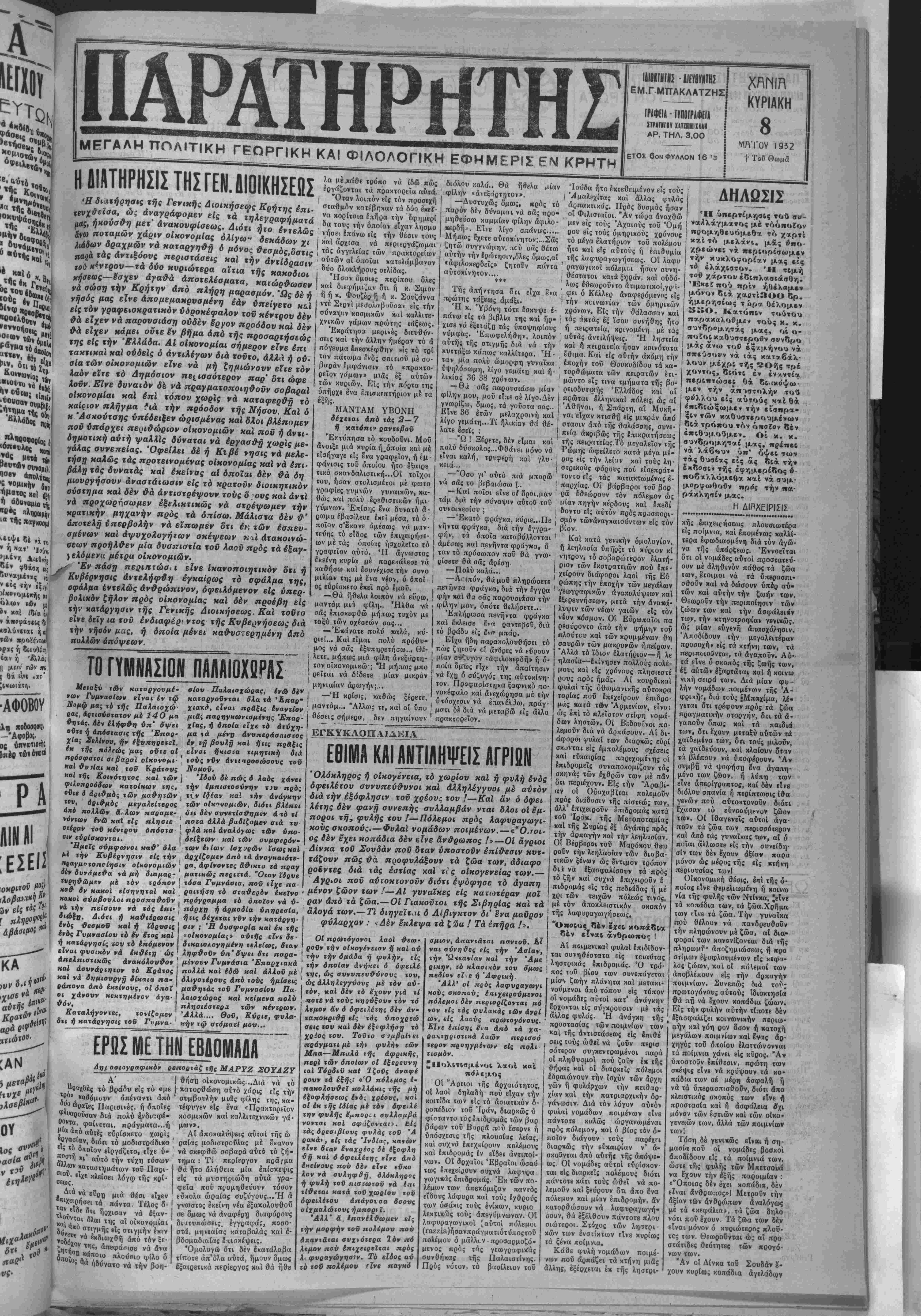 Έν πάση περιπτώσ< ι είνε Ικανοποιητικόν δτι ή Κυβέρνησις αντελήφθη εγκαίρως τό οφάλμα της, οφάλμα εντελώς ανθρώπινον, όφειλόμενον είς υπερ¬ βολικόν ζήλον πρός οίκονομίας καϊ δέν προέβη είς χήν κατάργησιν τής Γενικής Διοικήσεως. Καϊ τουτο είνε δεϊγ ια τοϋ ένδιαφέρ: ντος τής Κυβερνήσεως διά την νήαόν μας, ή δποία μέν εί καθνατερημένη άπό πυλλων άπόψεων. ΤΟ ΓΥΜίτΙΛΣΙΟΙτϊ ΠΑΛΑΙΡΧΰΡΛΣ Μεταξν των πατσργονμέ· νω» Γνμνασίων είναι έν τφ Νομφ μας τό τής Παλαιοχώ ρας, άβτισύστατον με 140 μα Φητάς. Δέν ελήφθη ύπ' δψει οϋτβ ή απόστασις τής Επαρ¬ χίας Σελίνου, ήν έξνπηρετεϊ, έκ τής πόλεώς μας οϋιε αί πρόσφατοι αι βαραΐ οΐκονομι καΐ Φυιίαι καί τού Κράτονς καΐ τής Κοινότητος «αί των φιλοπροόδων χατοΐκων της, 00(8 ό άρι&μόζ των μαθητών τού, άριθμός μεγαλείιερος άηό ηολλ&ν &> λων ηαραμε-